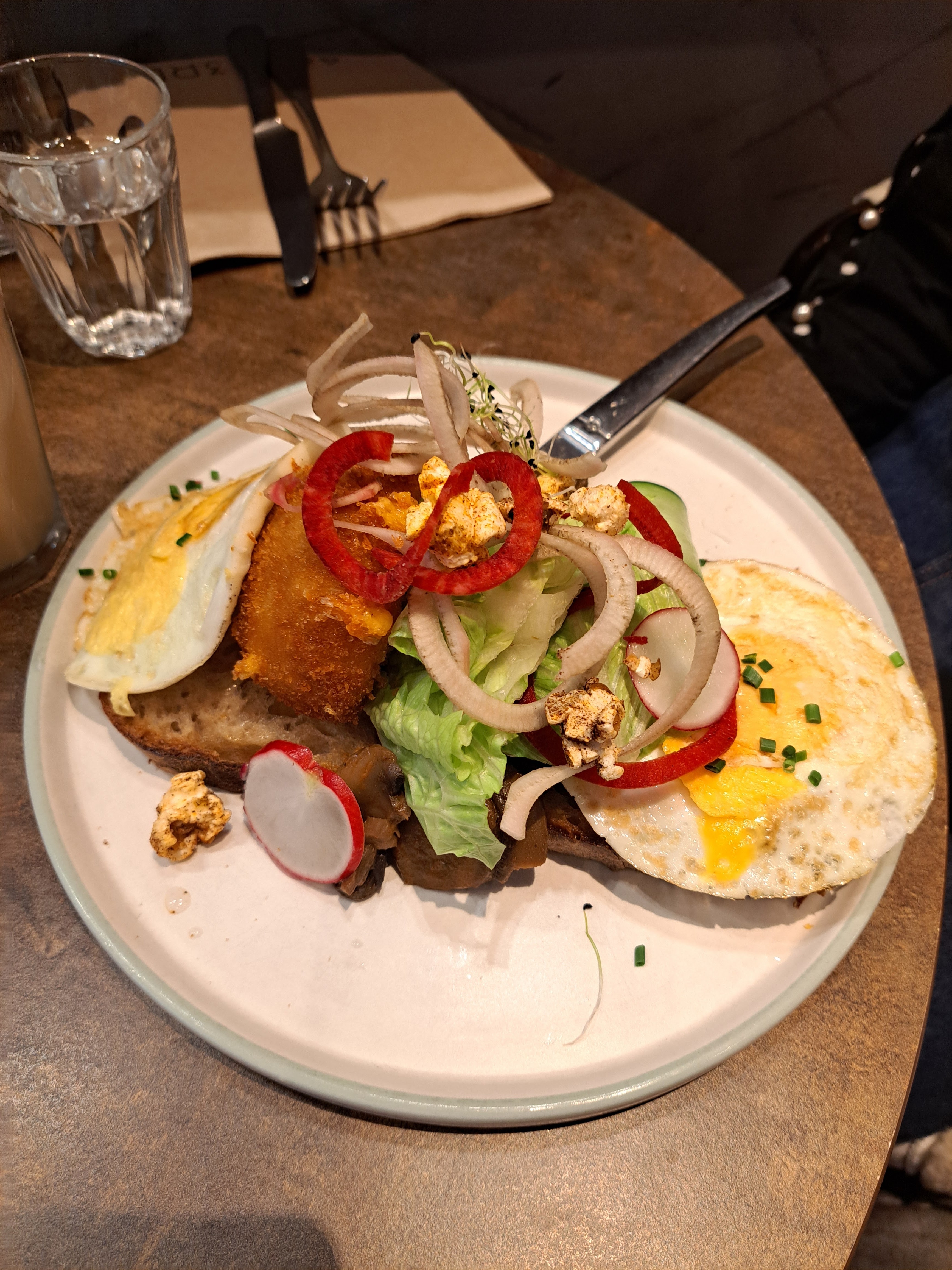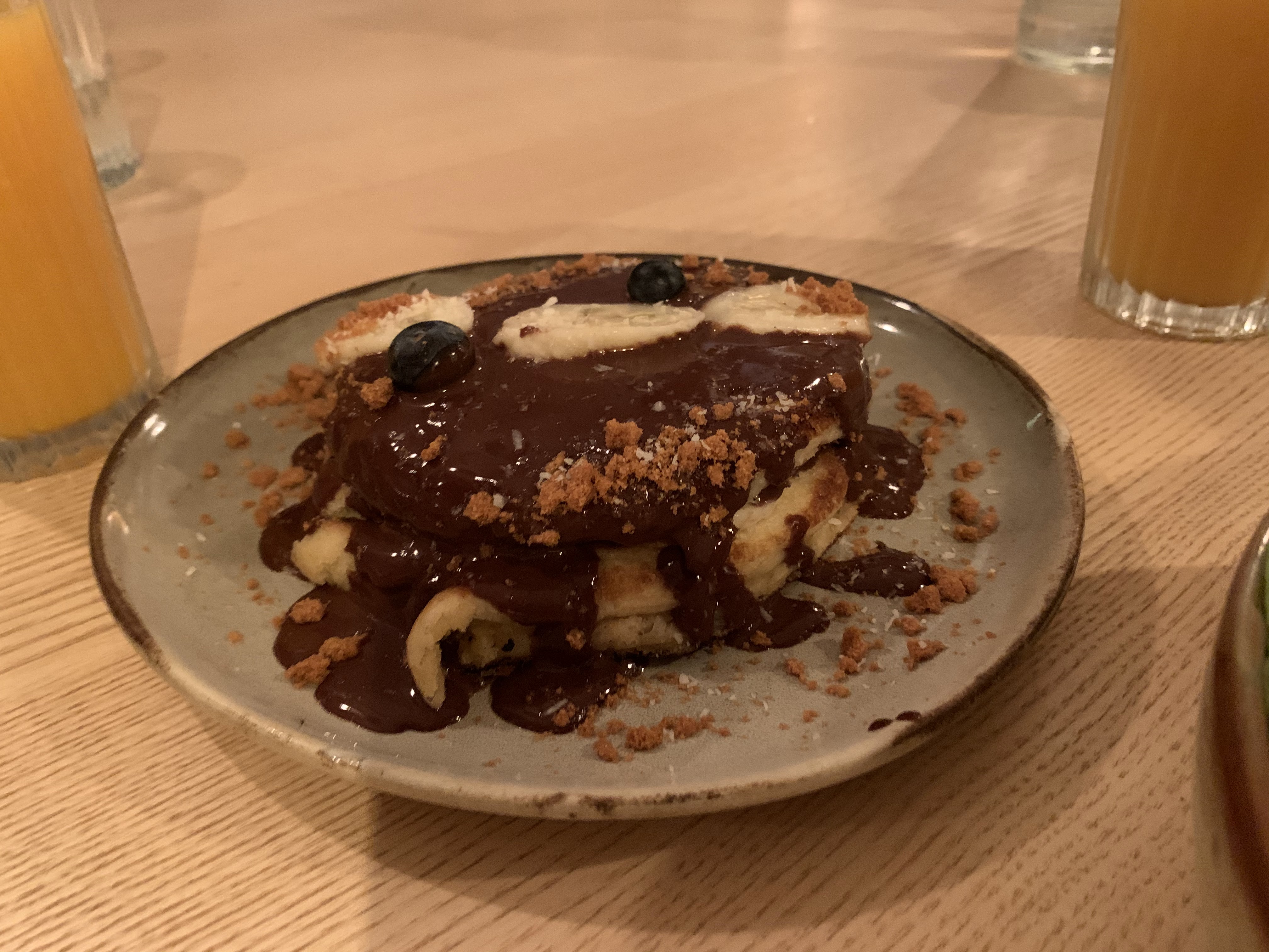 Bon brunch, cadre agréable. J’ai testé le toast œufs saumon champignons qui était super bon et très bien présenté mais pas très pratique à manger. Les Pancakes sucrés sont copieux, idéal à partager à 2 pour terminer le brunch.