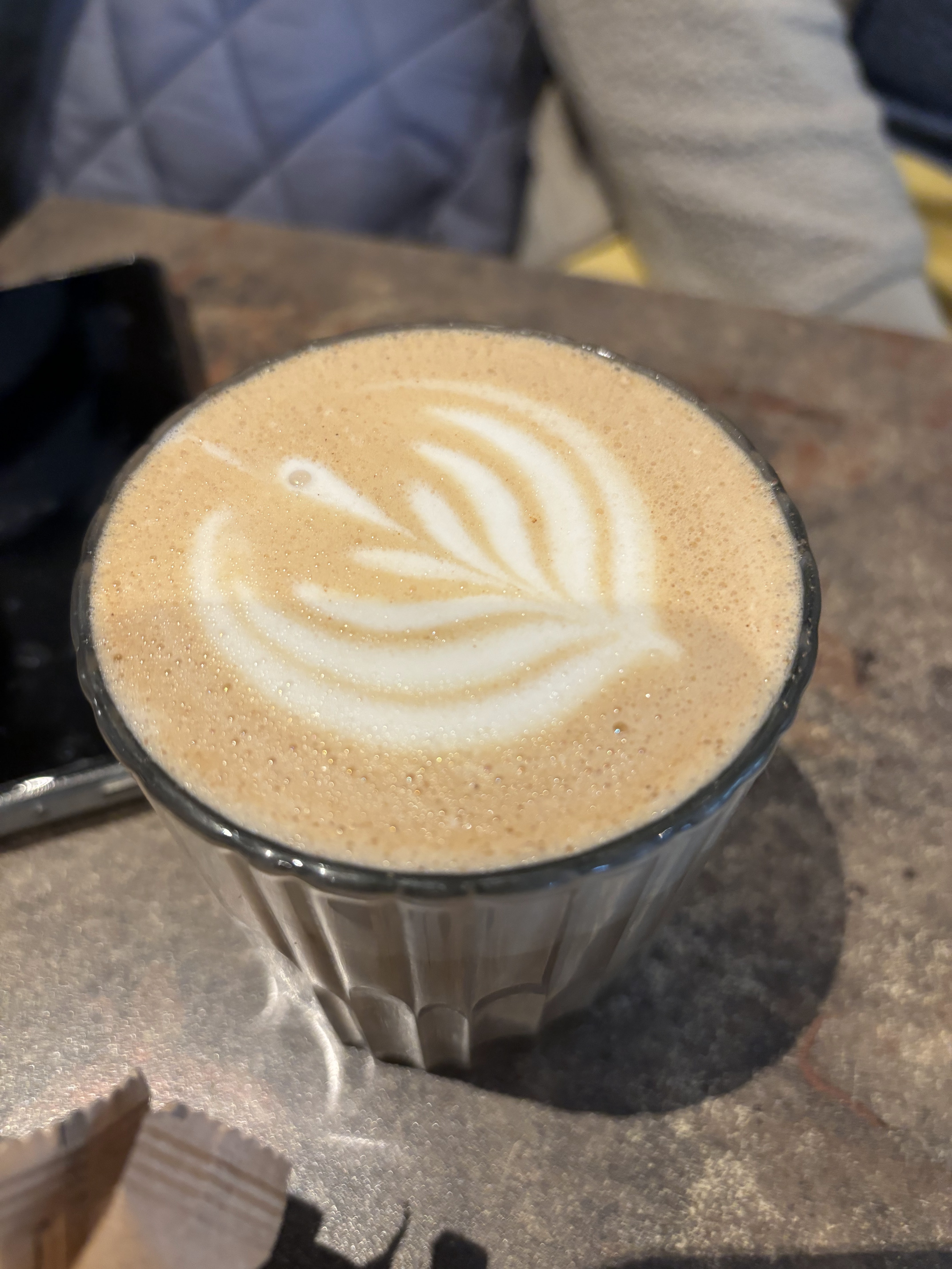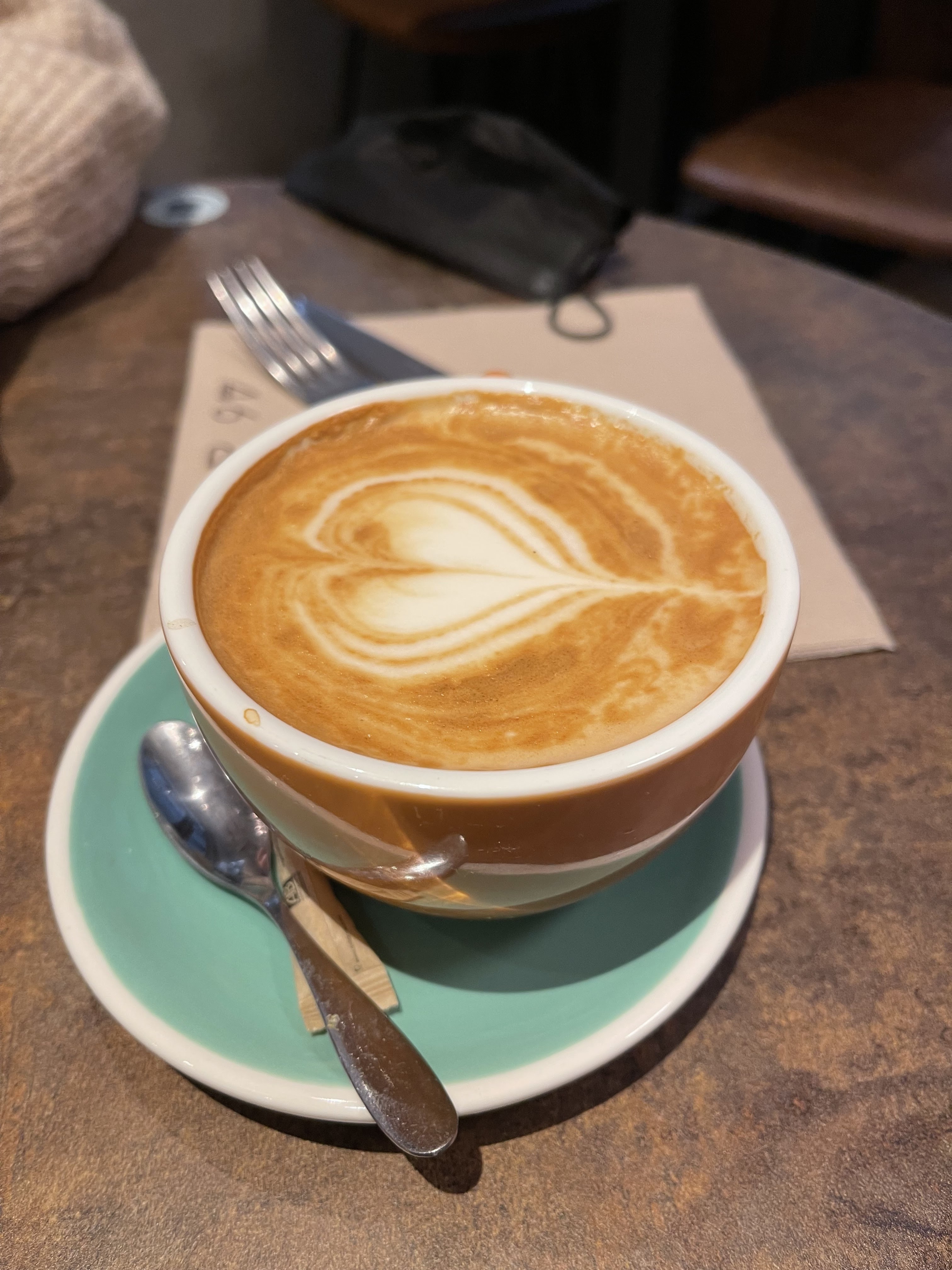 Superbe découverte pour le brunch. Food.ia incroyable avec un grand choix et un menu original. Le café était également bon avec un latte blanc et caramel magnifiquement conçu et savoureux. Le service était incroyable avec des serveurs extrêmement gentils et arrangeants et l'ambiance était encore meilleure ! Je le recommande totalement sauf que le week-end il y a beaucoup de monde après 12h alors arrivez tôt !