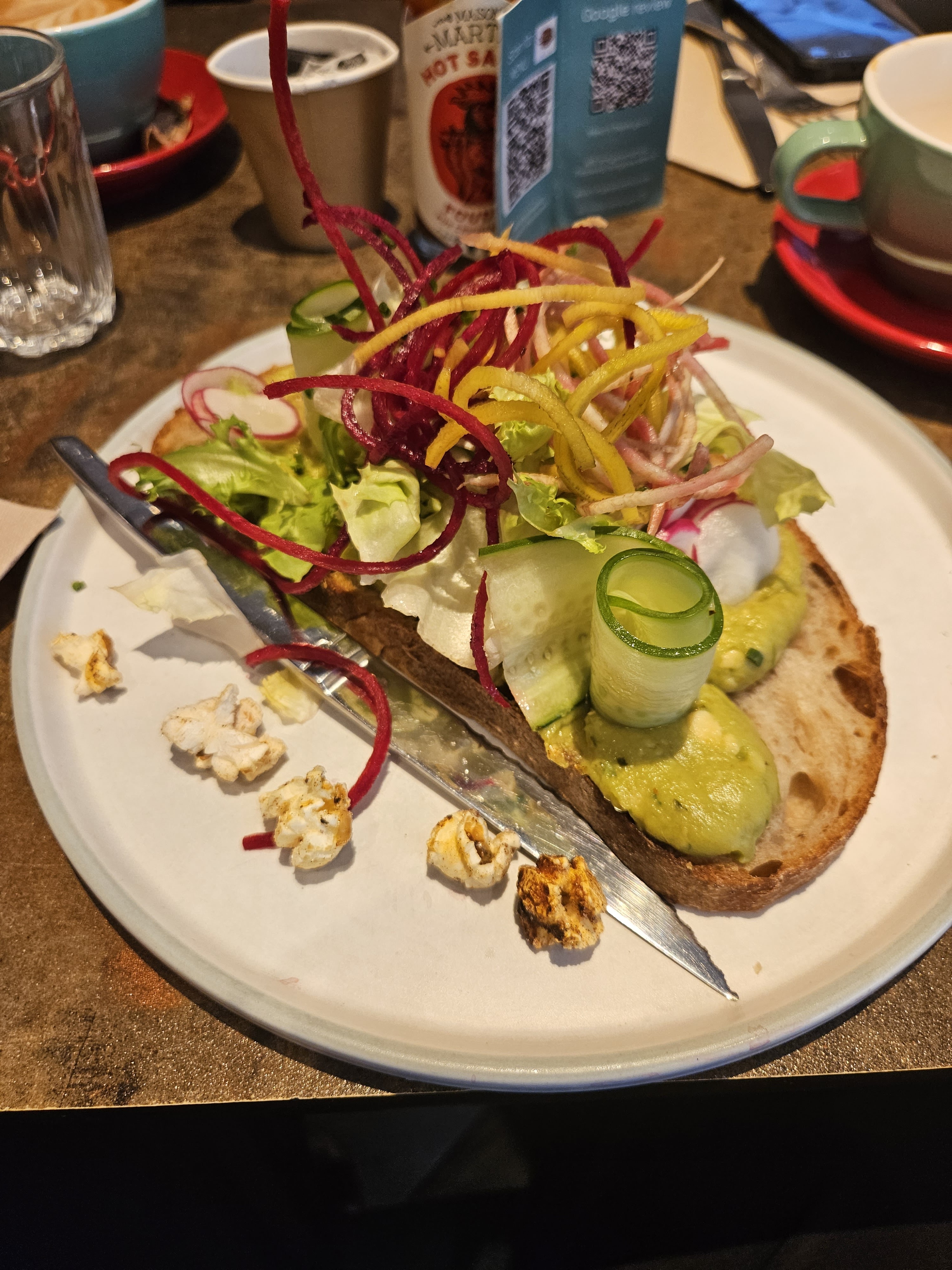 ambiance très sympa, service top et très bon café mais la nourriture est pas bonne. Le toast avocat saumon avec des produits pas frais et trop gras. Je comprends pas trop la note de 4,6, sûrement la note de touristes… Bref décevant