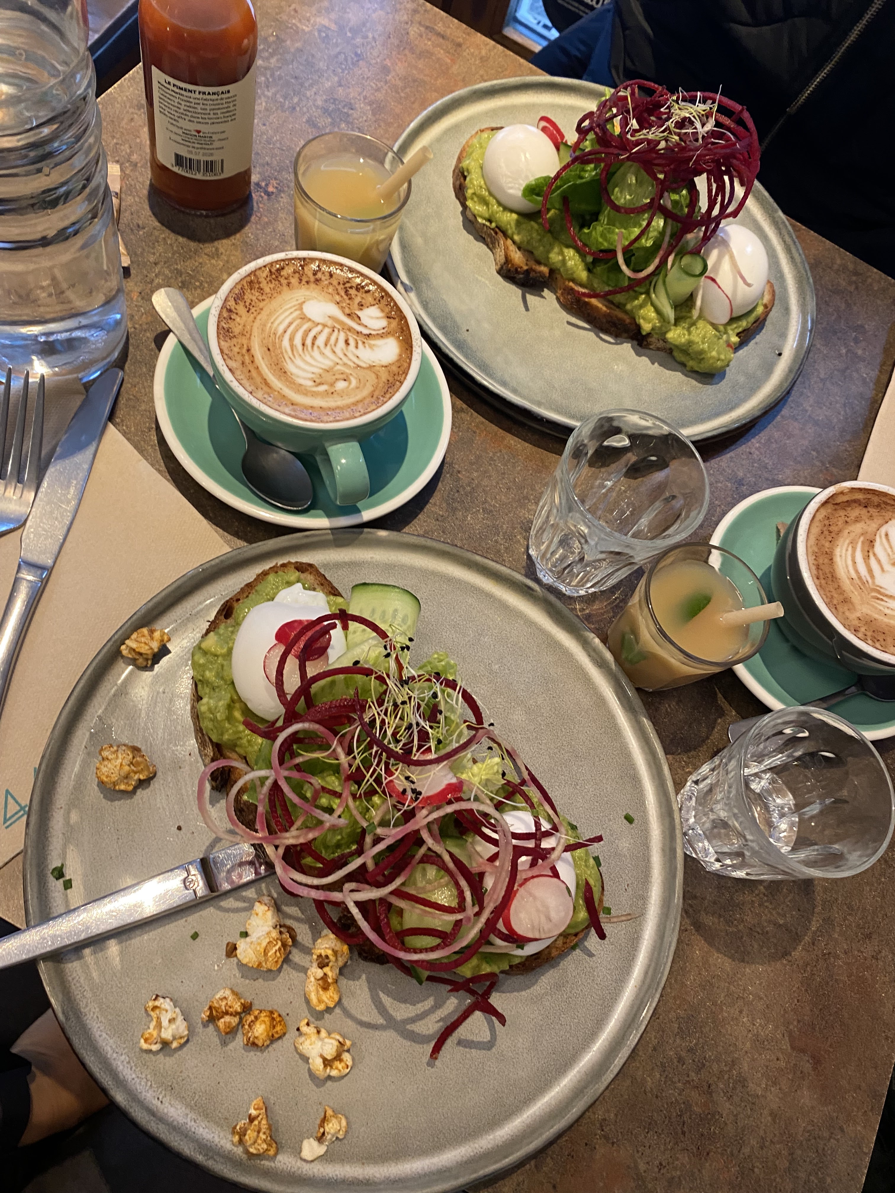 Si vous voulez un endroit avec une ambiance décontractée, de la bonne nourriture et de la bonne musique, alors c'est l'endroit idéal pour un brunch/déjeuner à Paris. Nous avons eu les crêpes américaines au sirop d'érable qui étaient si délicieuses et les toasts à l'avocat (que nous pensions avoir des œufs mais ce n'était pas le cas, mais c'est parce qu'il y a deux options sur le menu dont je n'avais pas réalisé mais le restaurant a clarifié sa réponse. ci-dessous) - super copieux, délicieux. La présentation est tout simplement artistique. Le café est le meilleur que nous ayons eu à Paris et cela à lui seul mériterait 5 étoiles à cet endroit.