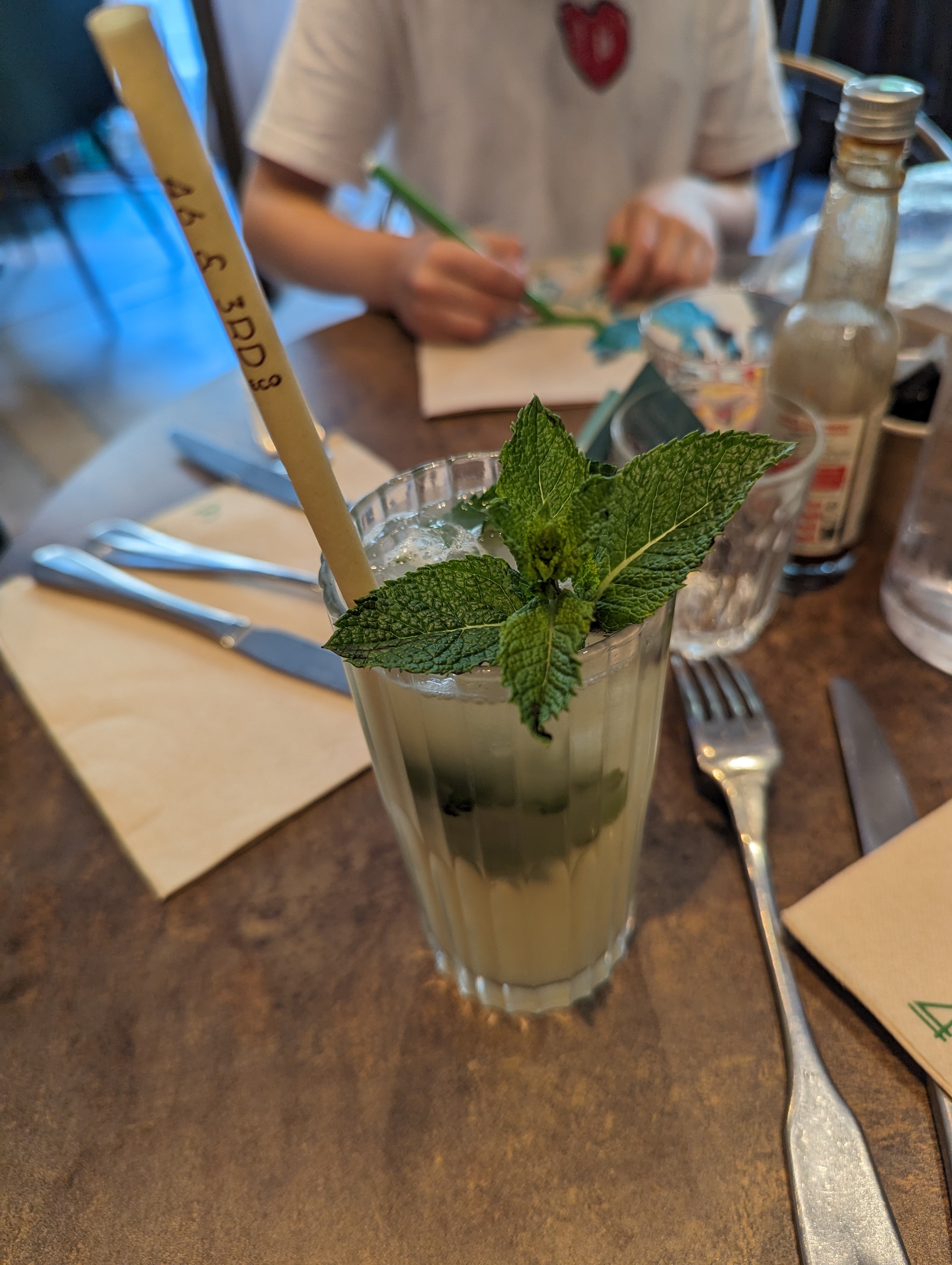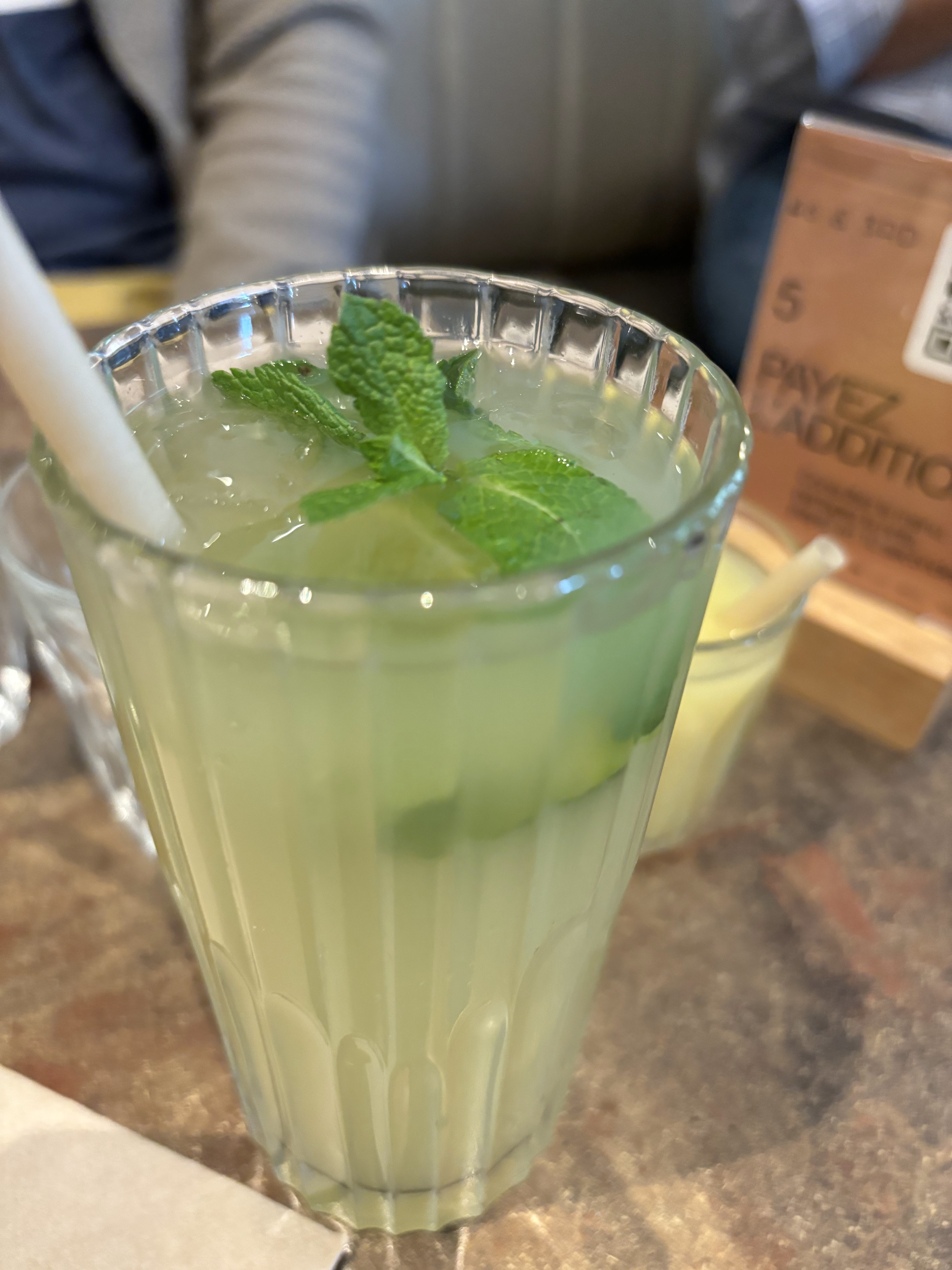 Très bel espace à Paris chez Arts et Métiers. La nourriture était excellente et le service très impeccable. J'ai eu un thé froid à la menthe et au gingembre, c'était délicieux et un shot de gingembre. Très bien. Un peu cher pour ce que c'est. Les crêpes sont très bonnes et le bol est savoureux.