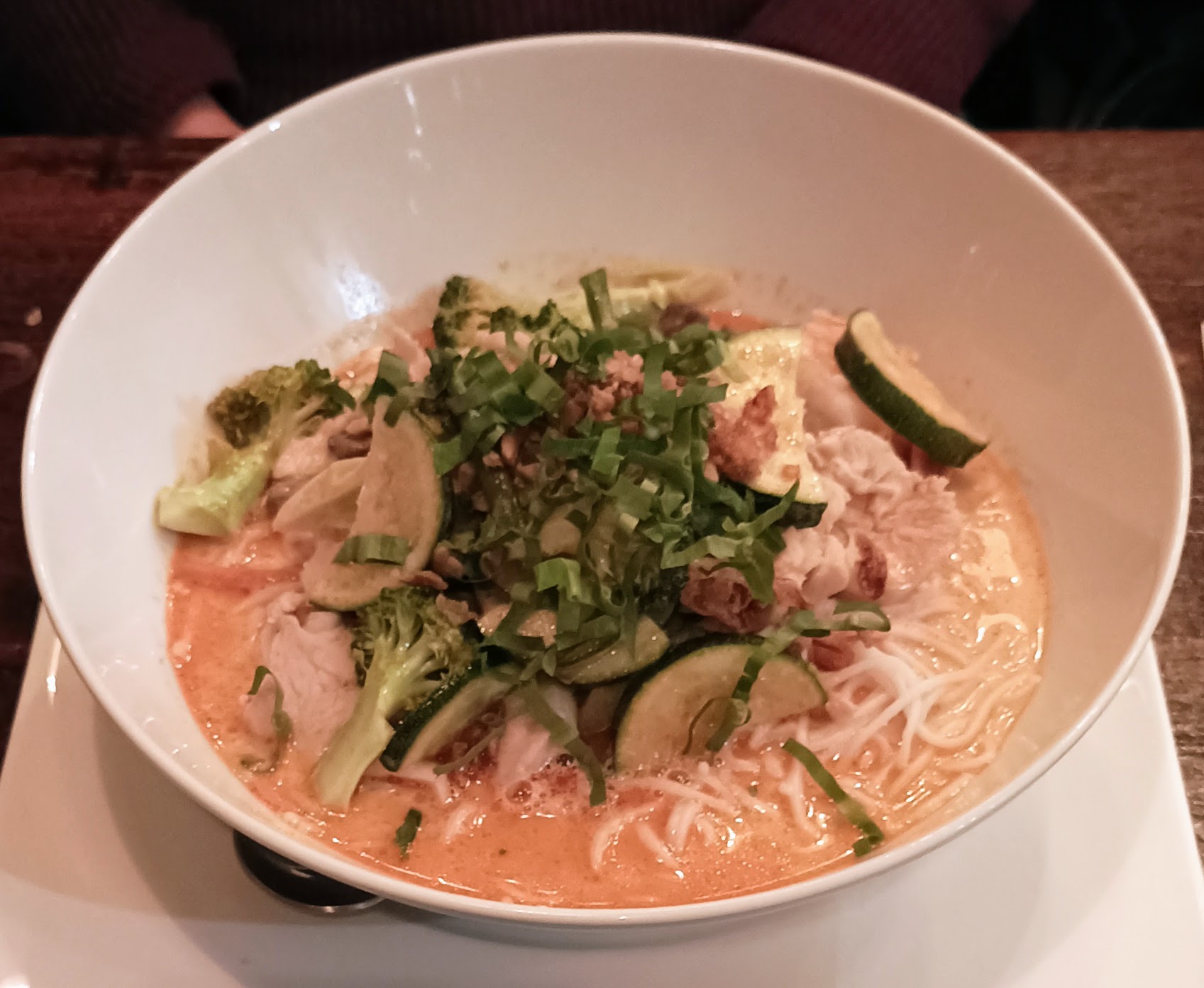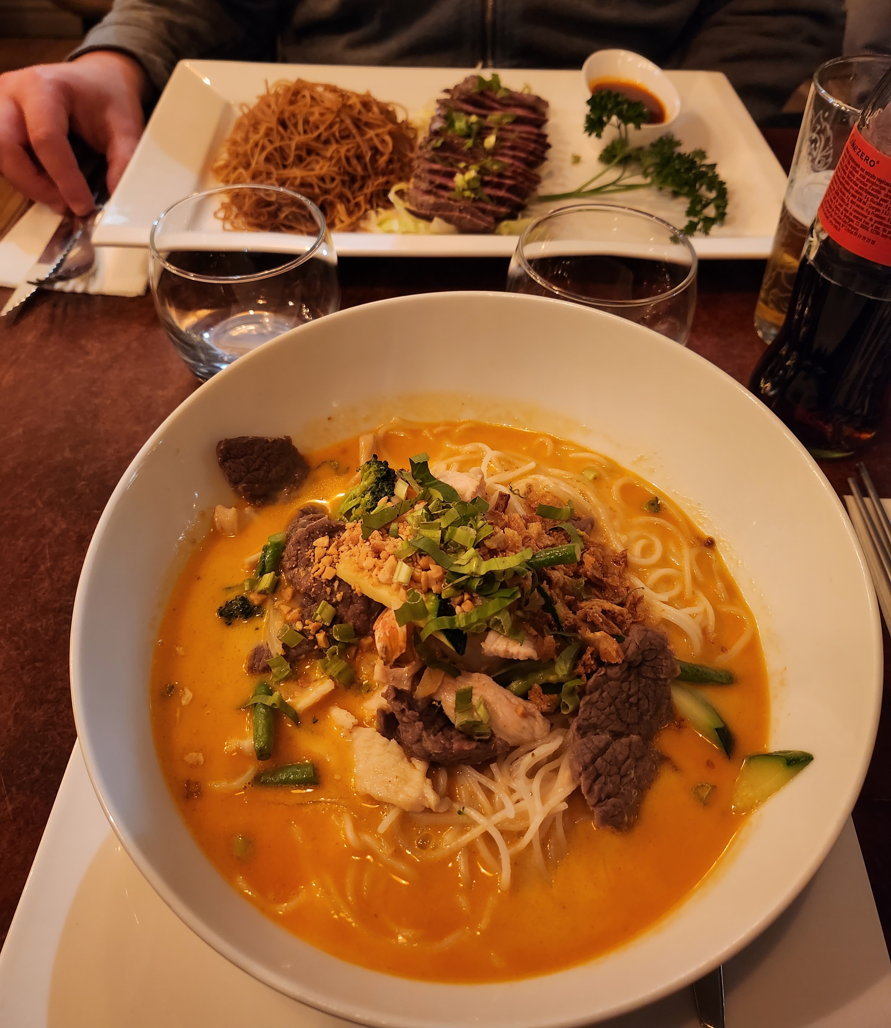 Plats delicieux, dose d'épices à la demande. Je conseille la soupe poulet curry coco : une merveille 🤩 Serveur très agréable. Petit restaurant avec tables un peu trop serrées à mon goût mais je recommande +++