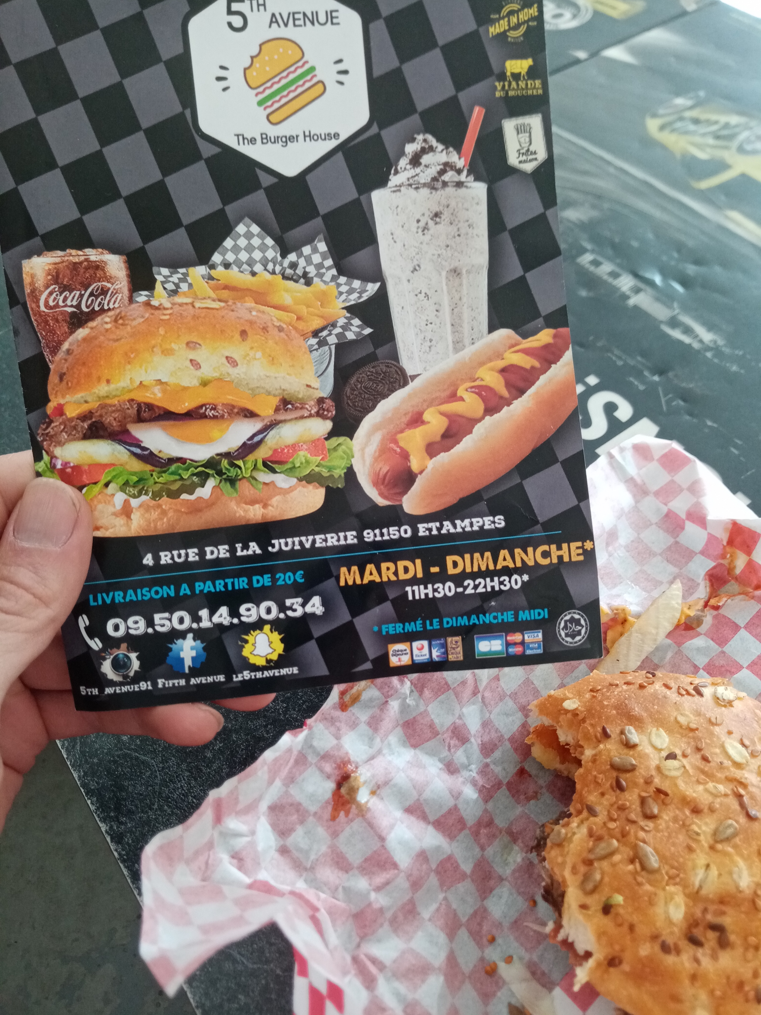 😃Bravo, à cette petite équipe cordiale, souriante de 5th avenue, Etampes. Qui a faite le choix de réinventer des Burgers avec des produits ...allez découvrir...😀👍 🍔🍟 Cela rend original le Burger...et leur Frites...extras... La déco est originale...un petit voyage aux US le temps du repas... 😉Quand on est sur place, il n y a pas de problème de repas qui arrive froid!! Rapport Qualité/Quantité/Prix/Déco/Lieu dans Etampes..Génial !!! Découvert et testé en famille, un vendredi soir de Mai...et très peu de monde... Manger son repas et se laisser porter par la musique en fond (son diffusé à bonne fréquence et la déco) Plus besoin du Masque, du Pass Sanitaire...on commence à revivre... Alors Bon Burger Etampois chez 5th Avenue!!!