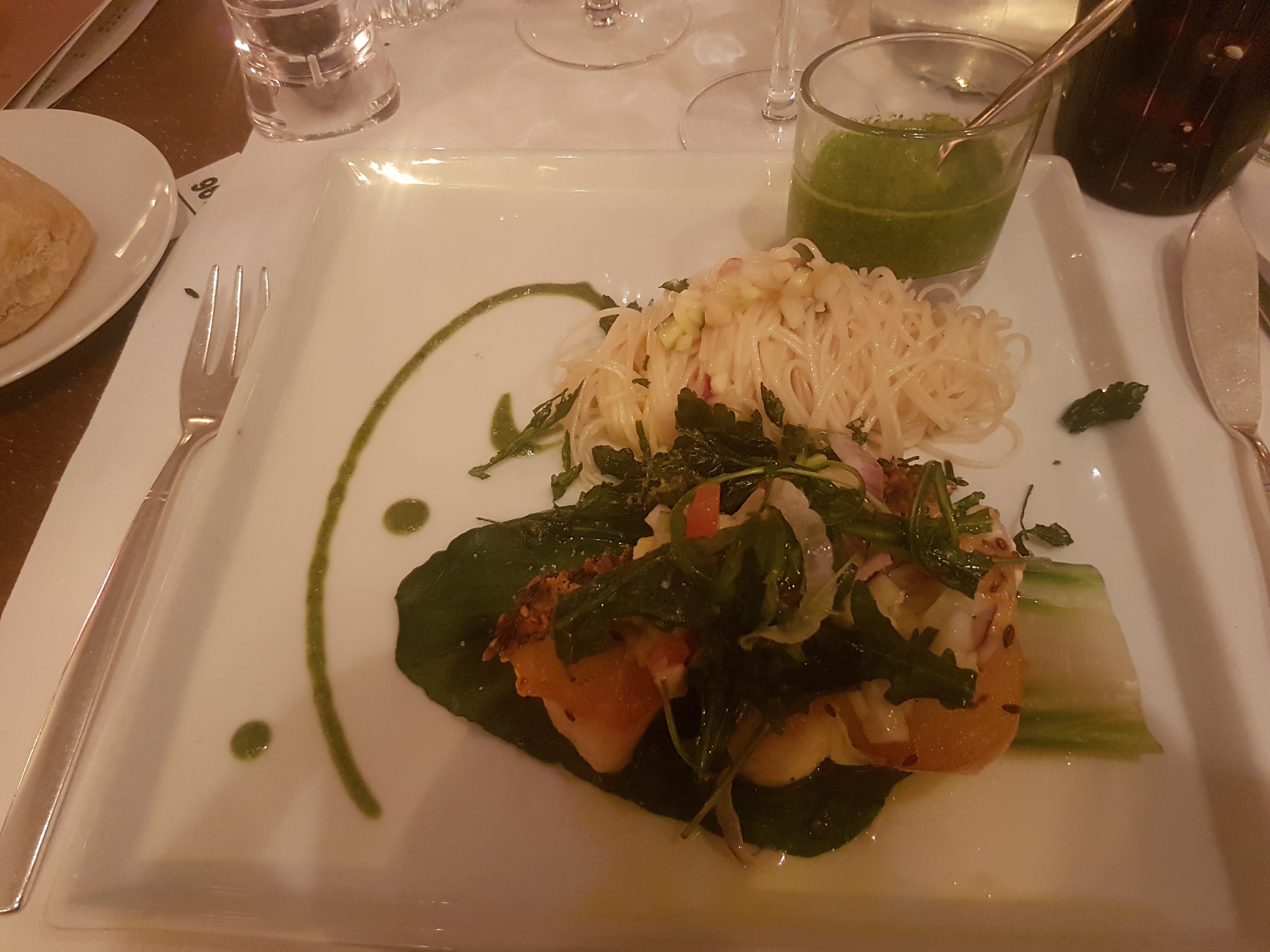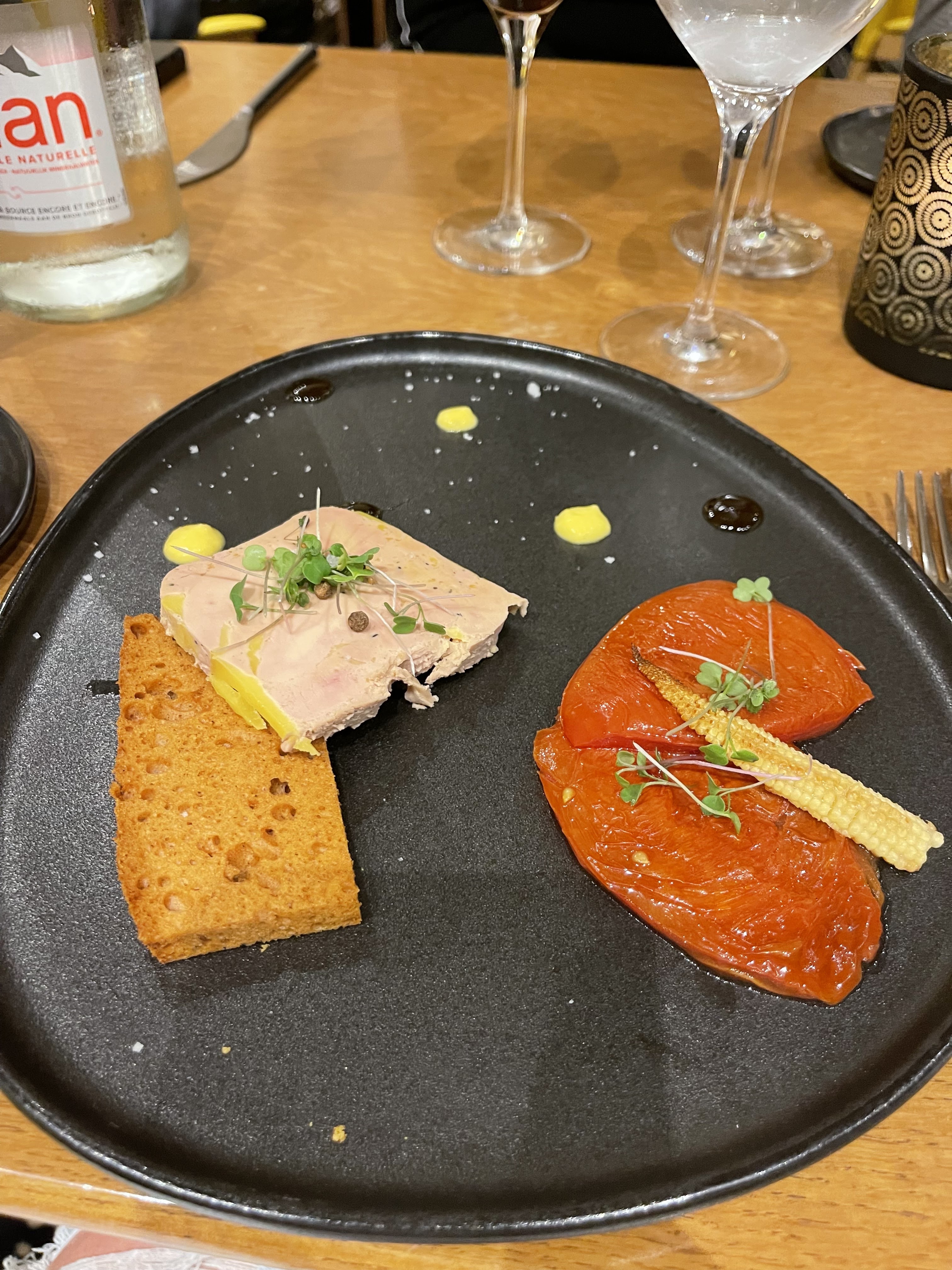 Accueil chaleureux, amuse bouche offerte, la burratta était très bonne ainsi que le plat du jour un gilet de bar accompagné de son risotto crémeux. Endroit chaleureux et cosy avec vu sur la t9ut Eiffel.