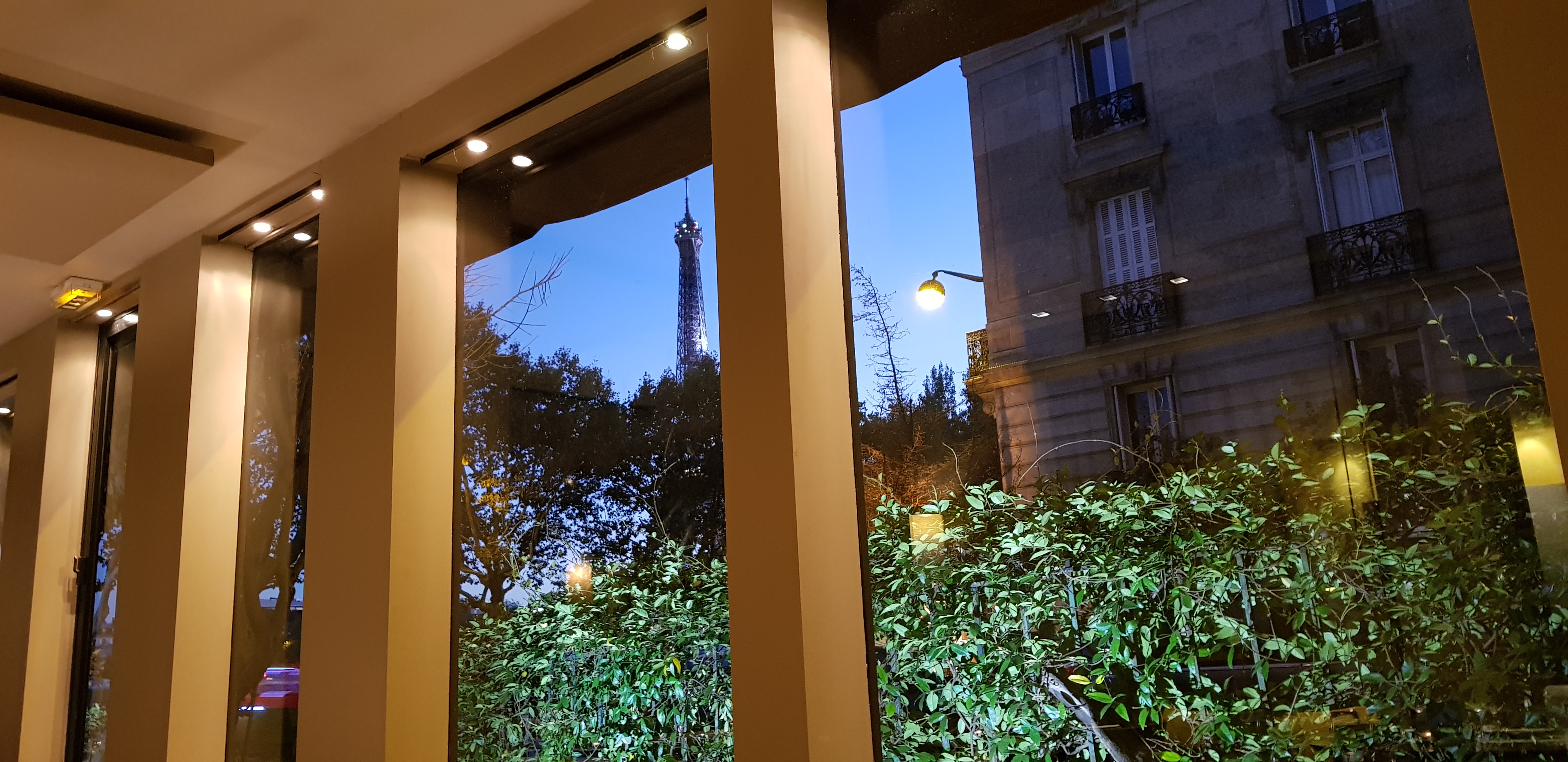 J’ai découvert ce restaurant sur recommandation de mon voisin, désireux d’éviter les pièges à touristes du coin. Ce fut une merveilleuse découverte. Le cadre est splendide avec une vue imprenable sur la Tour Eiffel qui scintille 5 mn chaque heure (j’étais assis sur le canapé d’angle qui n’a pas la vue, pensez à demander en réservant si possible) Les plats, esthétiquement plaisants et délicieux, m’ont séduit. Le plat de « coquillettes, jambon et brisures de truffes » a été un coup de cœur (je l’ai pris en entrée mais je prendrai en plat au prochain passage), tandis que le « Hachis Parmentier de paleron de bœuf braisé, jus et brisures de truffes » s’est révélé tout aussi exquis. Le dessert, un riz au lait accompagné d’une boule de glace au caramel, était à la hauteur, la brioche perdue m’a moins plu. Un grand bravo à Laura et Stephane pour le service impeccable, toujours avec le sourire et dans la bonne humeur. Comme d’habitude, j’ajoute les photos du menu et des plats.