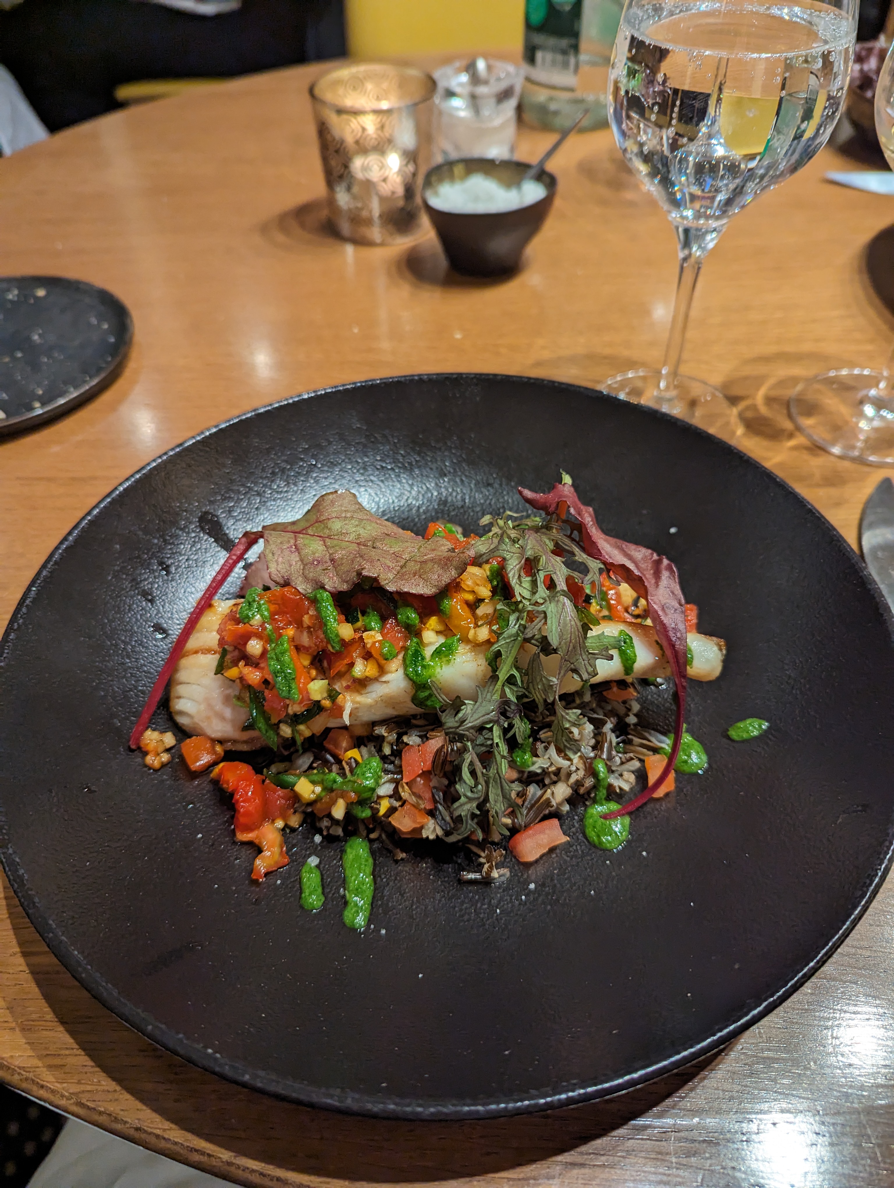 Nous sommes allés dîner et j'avais réservé une table bien à l'avance. Nous attendions le dîner avec impatience car j'avais lu tellement de critiques élogieuses. Malheureusement, ce fut une expérience décevante. Même si le service était excellent, la nourriture que nous avions n'était pas agréable. Le risotto, qui était vraiment le seul plat végétarien du menu, manquait de toute sorte de richesse ou de profondeur de saveur et était liquide. En revanche, la morue était dominée par la saveur et les épices. Il y a tellement de bonne nourriture à Paris, vous feriez mieux d'aller dans une boulangerie et de pique-niquer près de la Tour Eiffel.