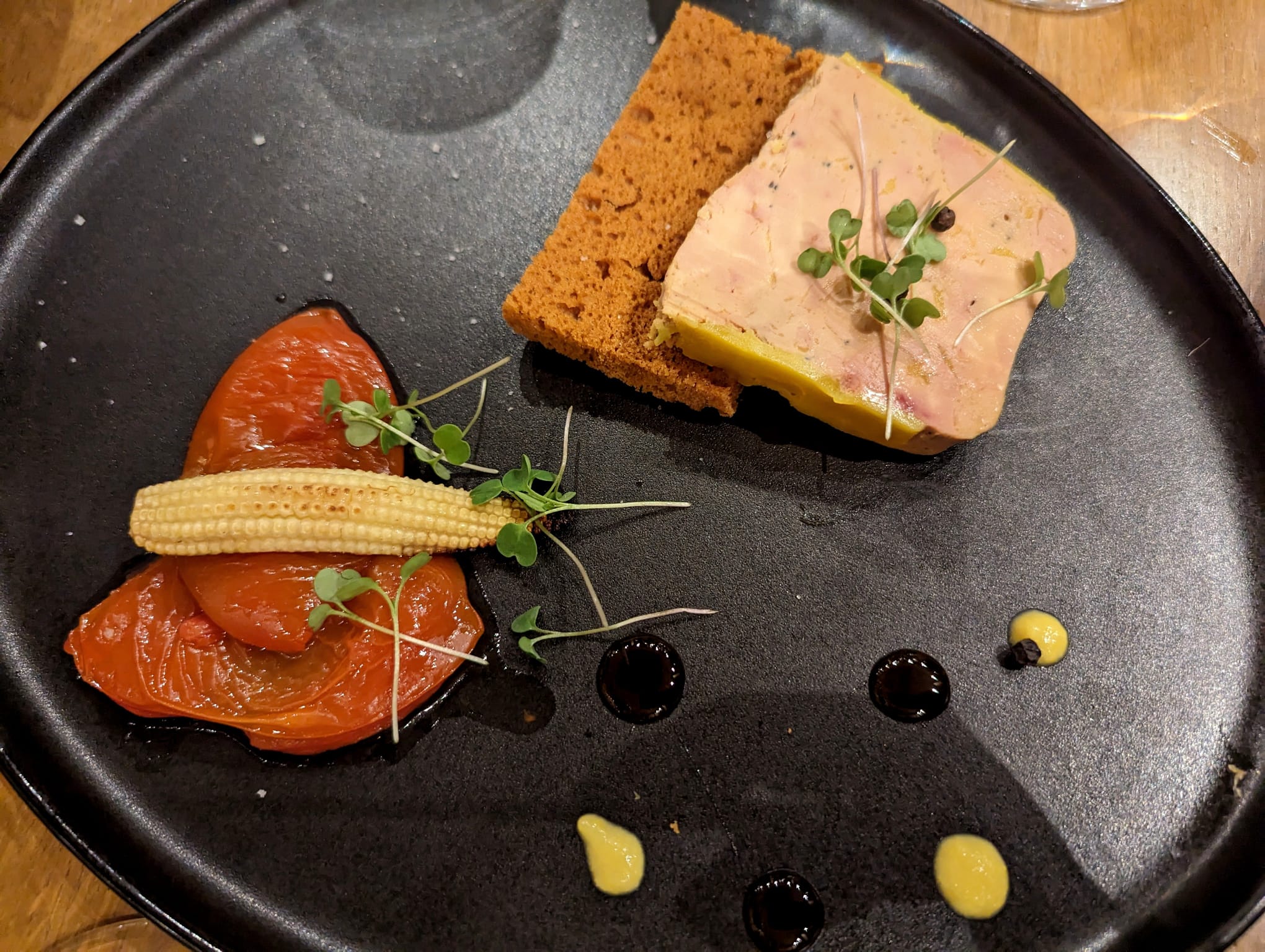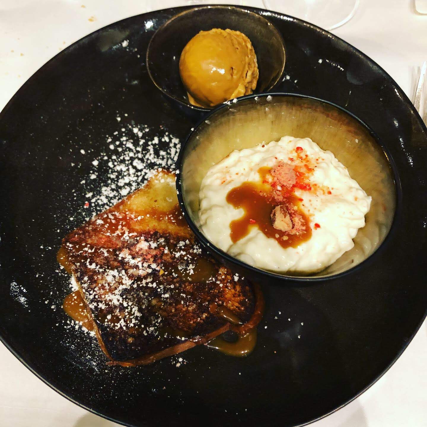 Je ne peux pas être plus impressionné. Mon mari adore m'entraîner dans des restaurants gastronomiques et prendre le menu des degus. Je trouve généralement que c'est trop cher, rien de spécial à écrire et j'ai faim ou trop rassasié après. 6NewYork est une GRANDE exception ! Le chef vient vous saluer personnellement pour vous présenter le menu et il vous permet de commander DIFFÉRENTS menus dégus !! Ils nous ont demandé ce que nous ne pouvions pas manger, mais lorsque nous avons exprimé avec effronterie ce que nous voulions vraiment essayer (aucune promesse), la plupart étaient inclus ! Les plats principaux étaient également de taille principale normale, et non les petites portions habituelles de degus. Alors oui, j'étais très rassasié, mais étant donné qu'à nous deux, nous avons dégusté 12 plats différents et bénéficié du service adorable de notre serveur croate, DE PLUS nous avions une vue sur la Tour Eiffel étincelante, je dis que cet endroit est un doit partir et vaut chaque euro.