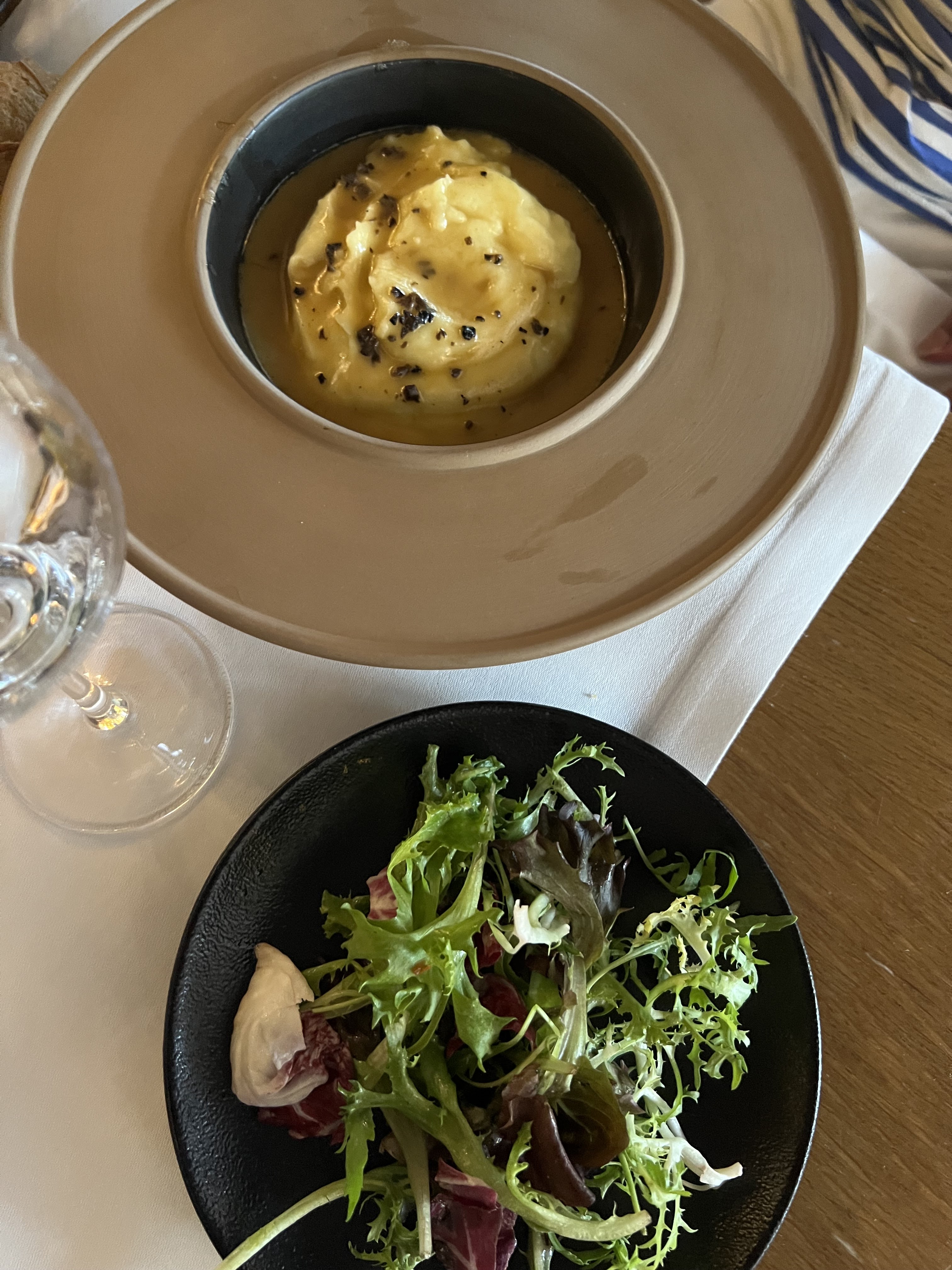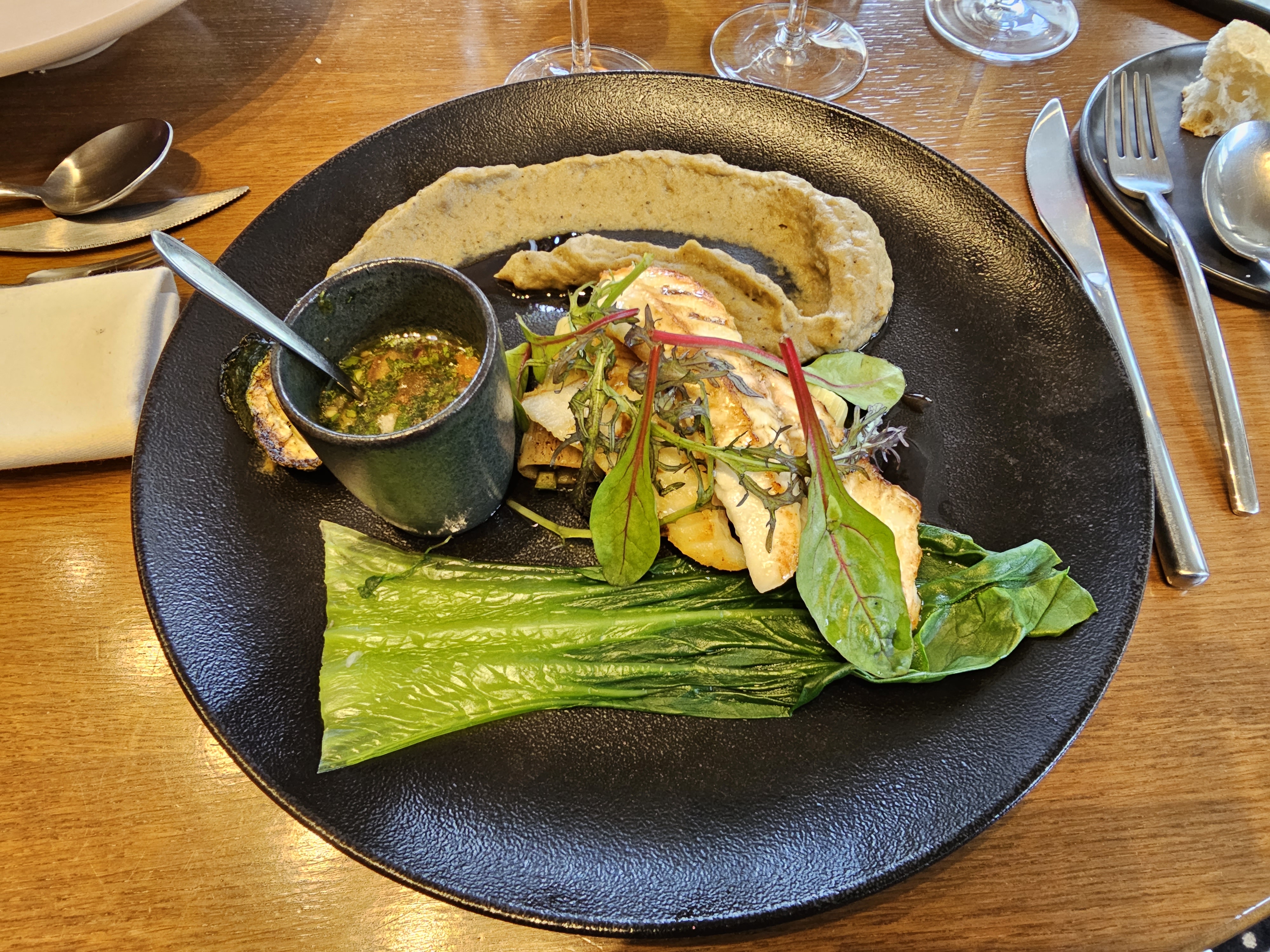 Superbe pour la vue et ce qui est dans l’assiette. Simple mais délicieux.