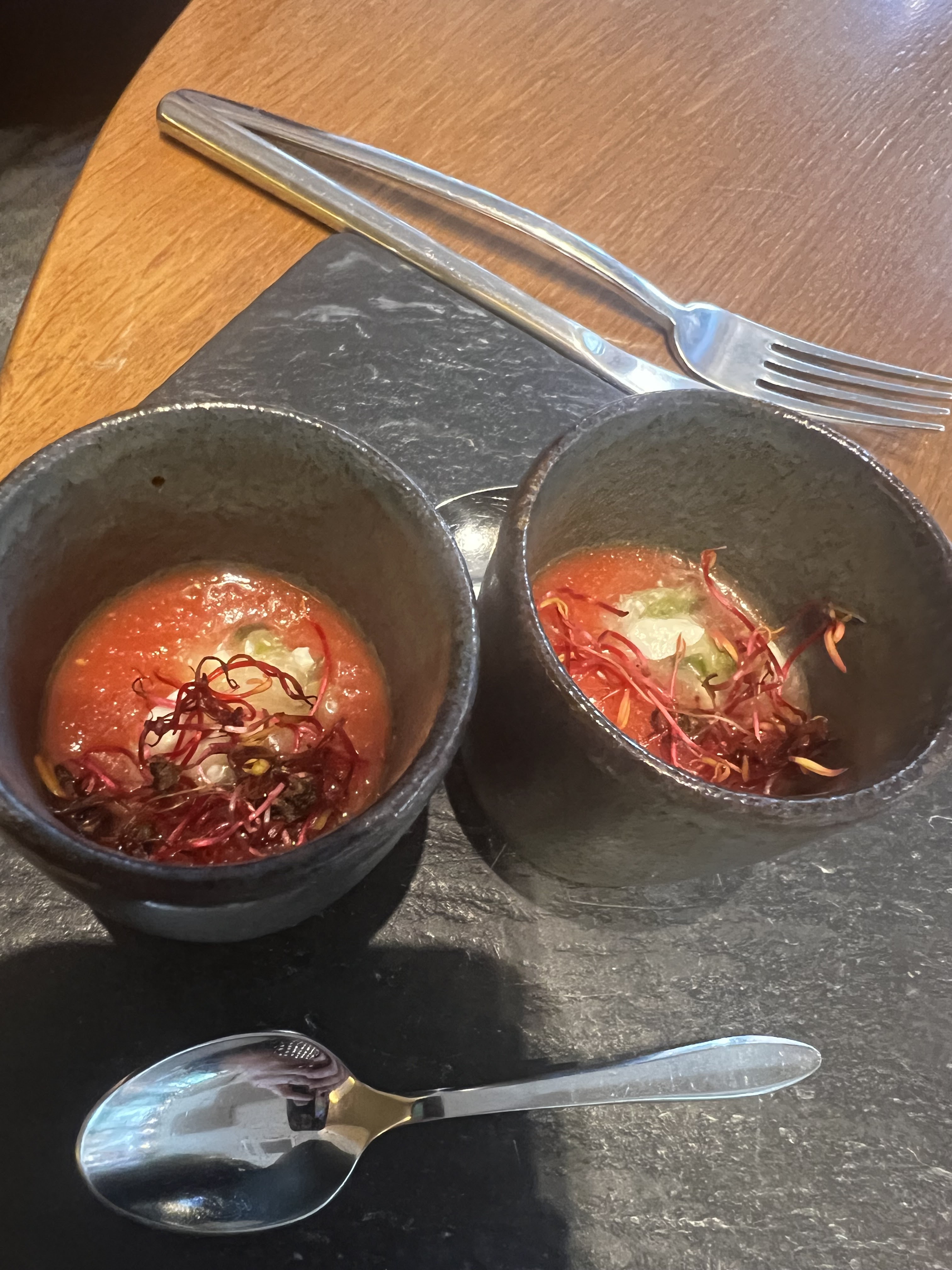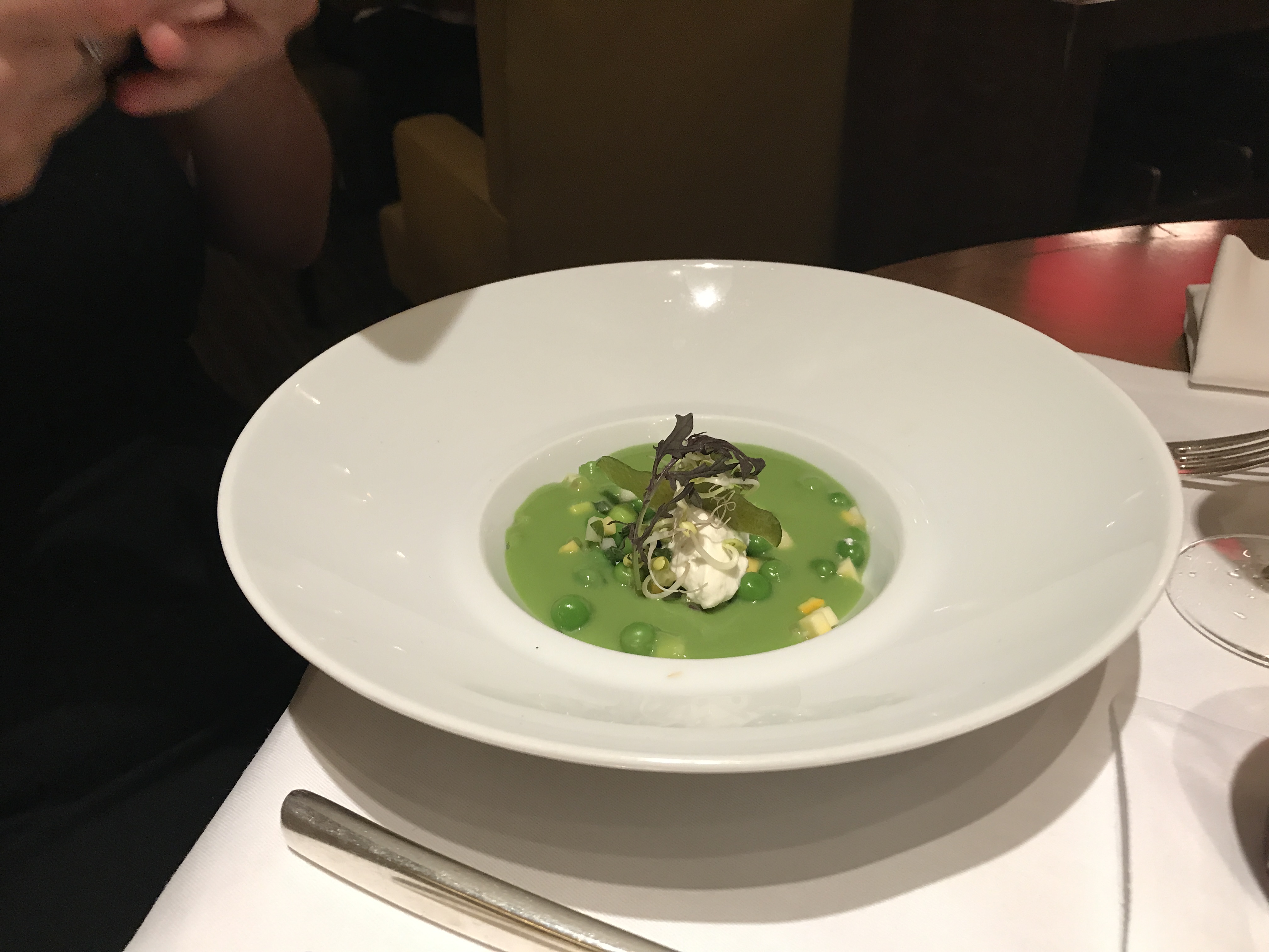 Cet endroit était incroyable. Cher mais vaut l'expérience. Les vues, la nourriture, l'atmosphère et le service valent le coût. Le chef est venu à notre table deux fois pour revoir le menu, puis pour s'assurer qu'il était bon.
