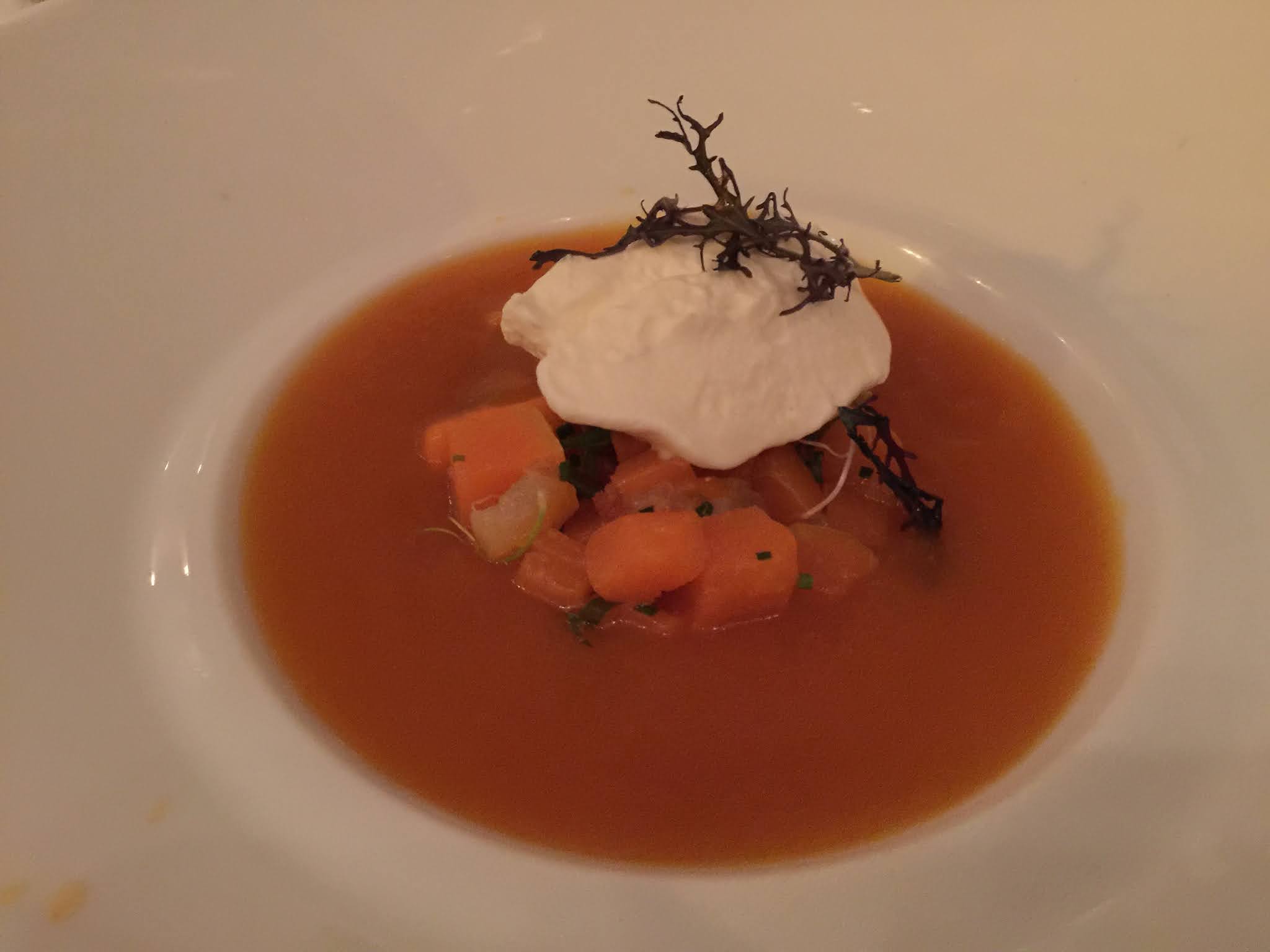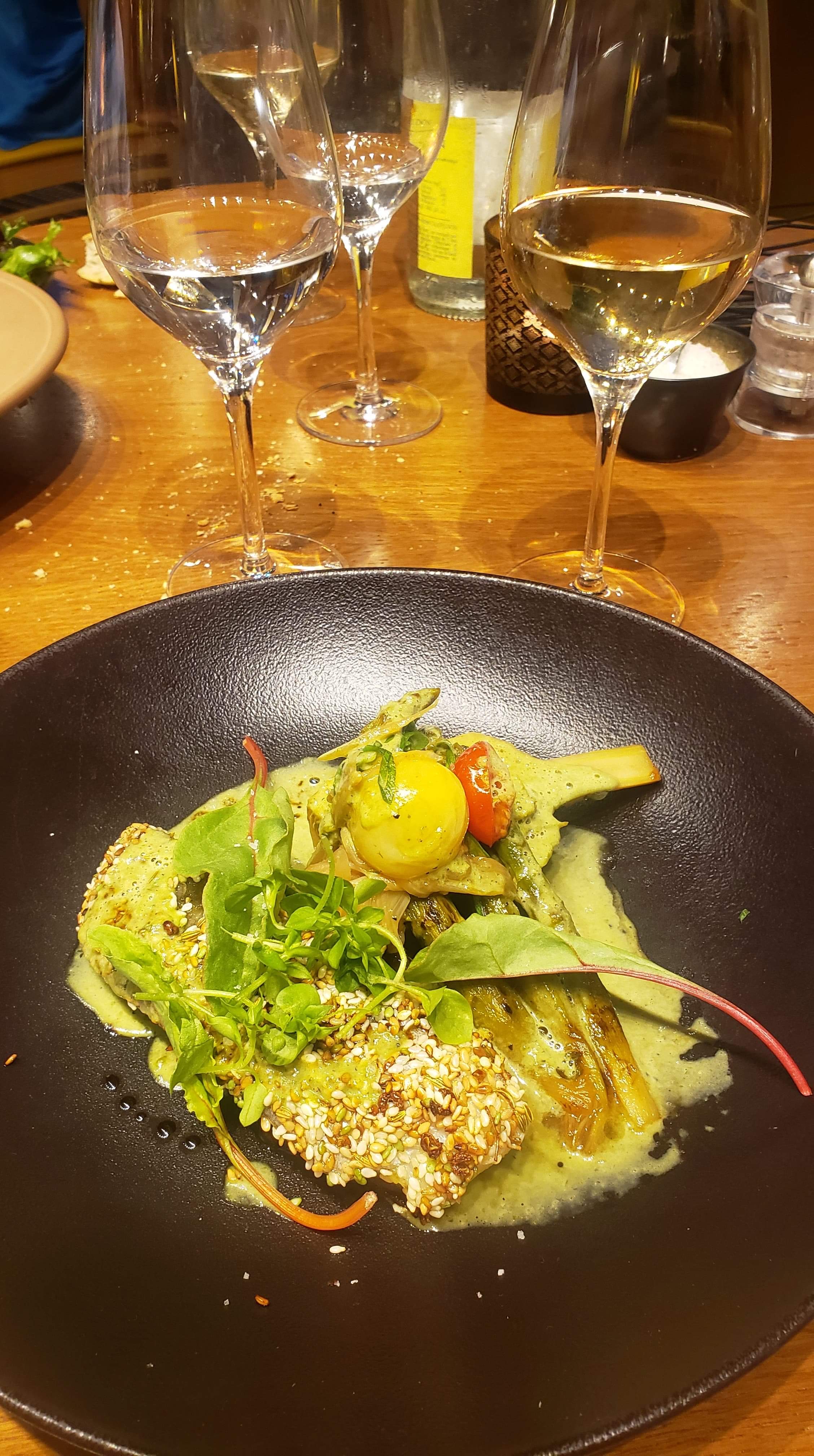 Très joli Menu Plaisir du Chef adapté au régime végétarien. Super soirée dans ce lieu cosy.