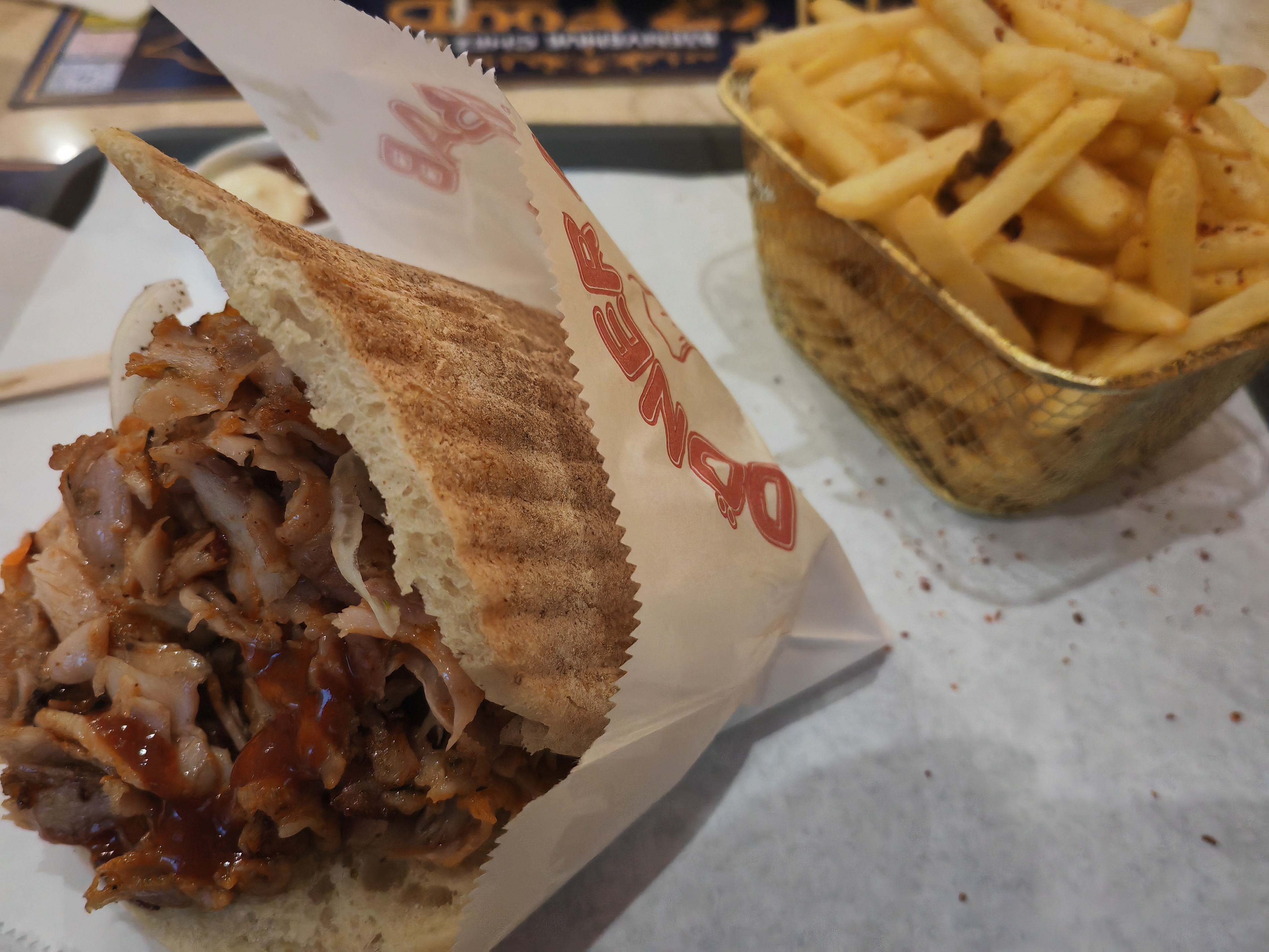 Doner trop gras, frites qui ont été précuites donc remplies d’huile et salade qui pique. Vraiment déçu