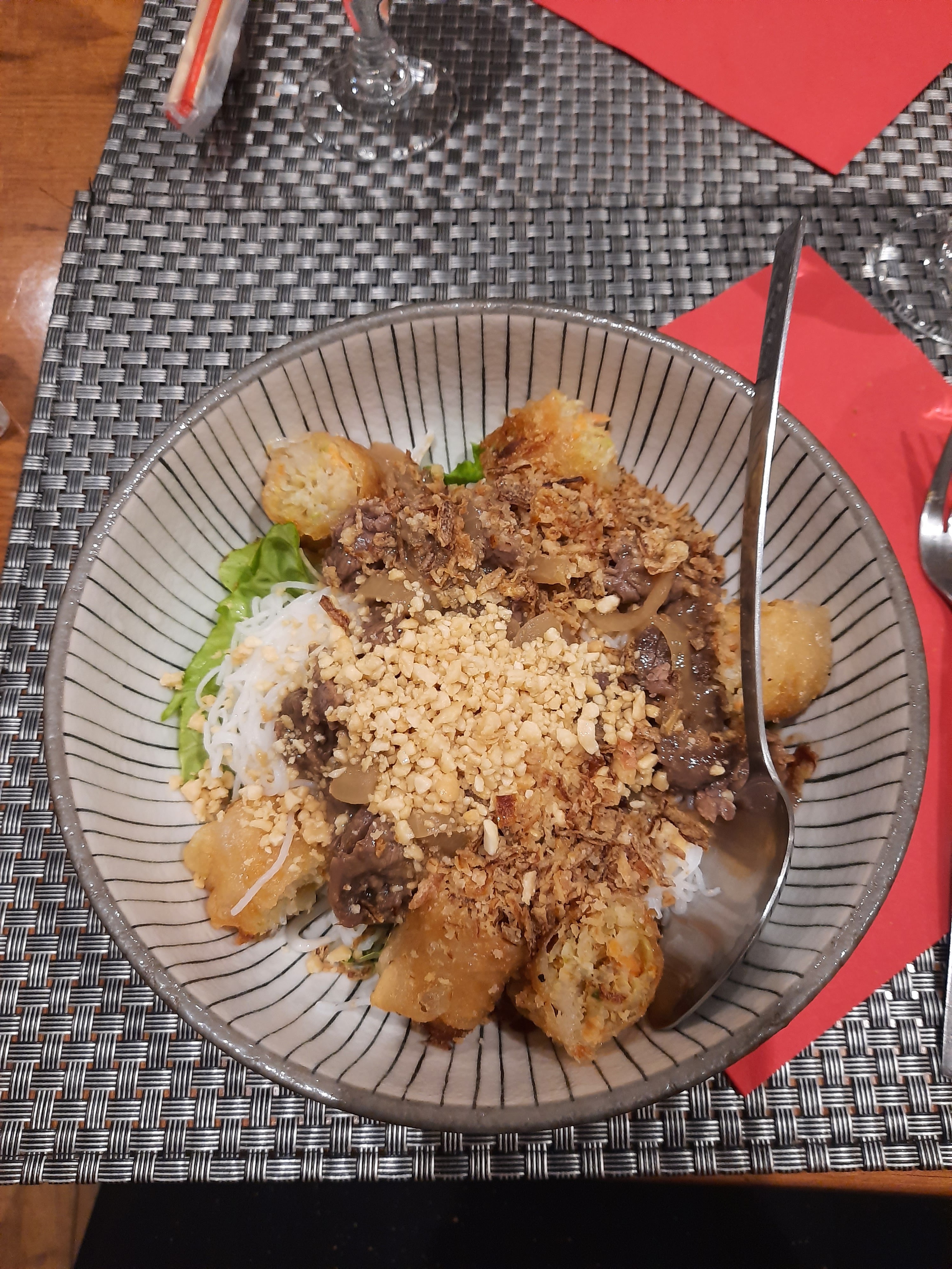 Je suis venue manger à ce restaurant avec des amies et j'y ai passé un bon moment. La carte du menu est variée (raviolis, nems, rouleaux de printemps, bo bun, nouilles sautées...), il y en a pour tous les goûts. De plus les plats sont vraiment bons et proposés à un bon rapport qualité prix. Personnellement je vous recommande leur bo bun (délicieux) et le cheesecake au citron en dessert (un régal aussi) ! Aussi, le monsieur qui tient le restaurant est très gentil. N'hésitez pas à venir à ce restaurant, vous ne serez pas déçus !