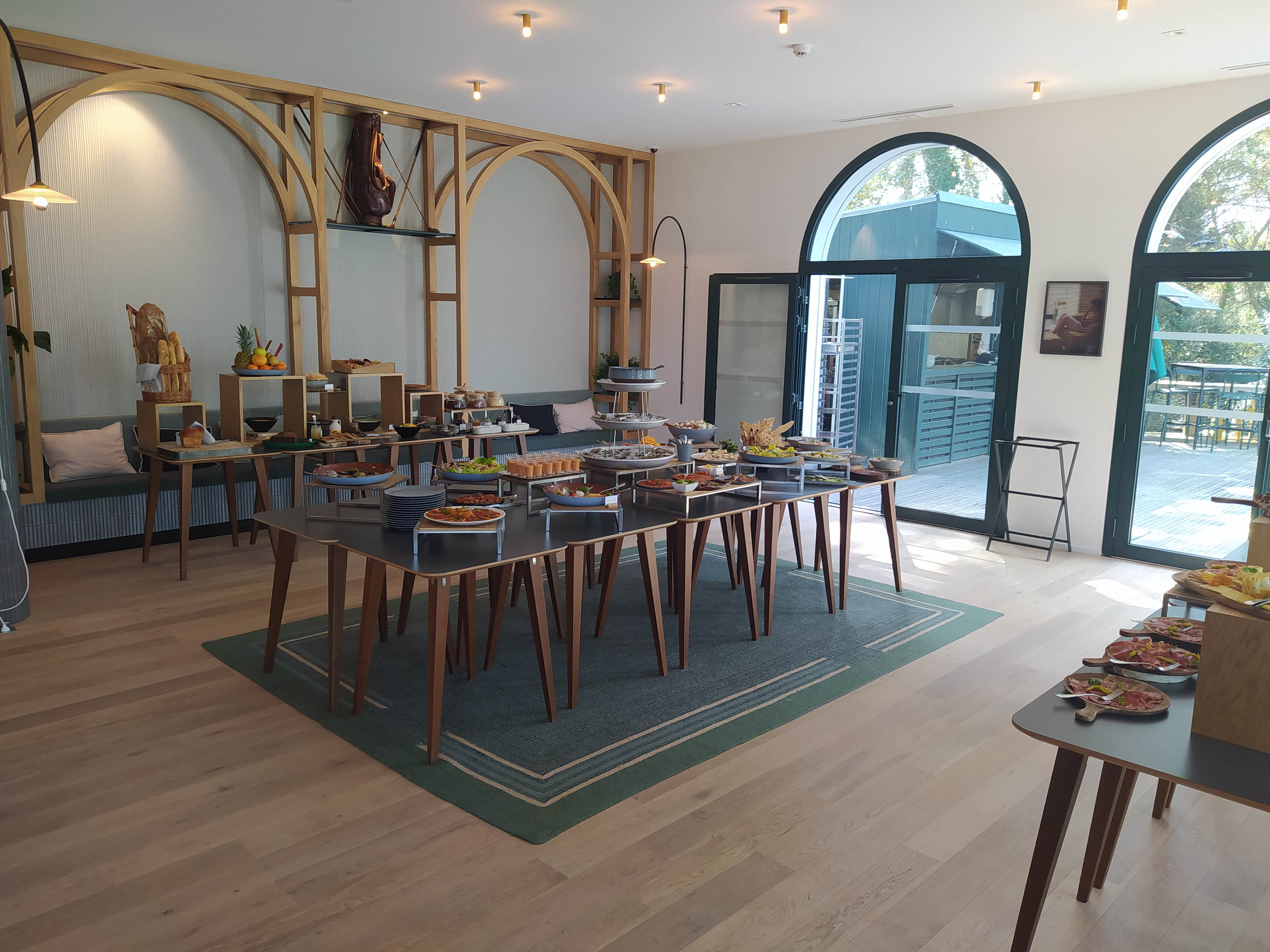 Super accueil (flexibilité et gentillesse pour le rajout d'un lit d'appoint), super design, super chambre. Bon petit déjeuner. Vélos à disposition qui pourraient être proposés à discrétion plutôt que payant (cf. Hôtels Barrière où les vélos sont offerts, pour un même tarif). Dîner à thème (Brasero du vendredi) mérite d'avoir un plat alternatif (vs. menu unique) pour les restrictions alimentaires. A faire, surtout pour les fans de golf car l'hôtel a un emplacement parfait !