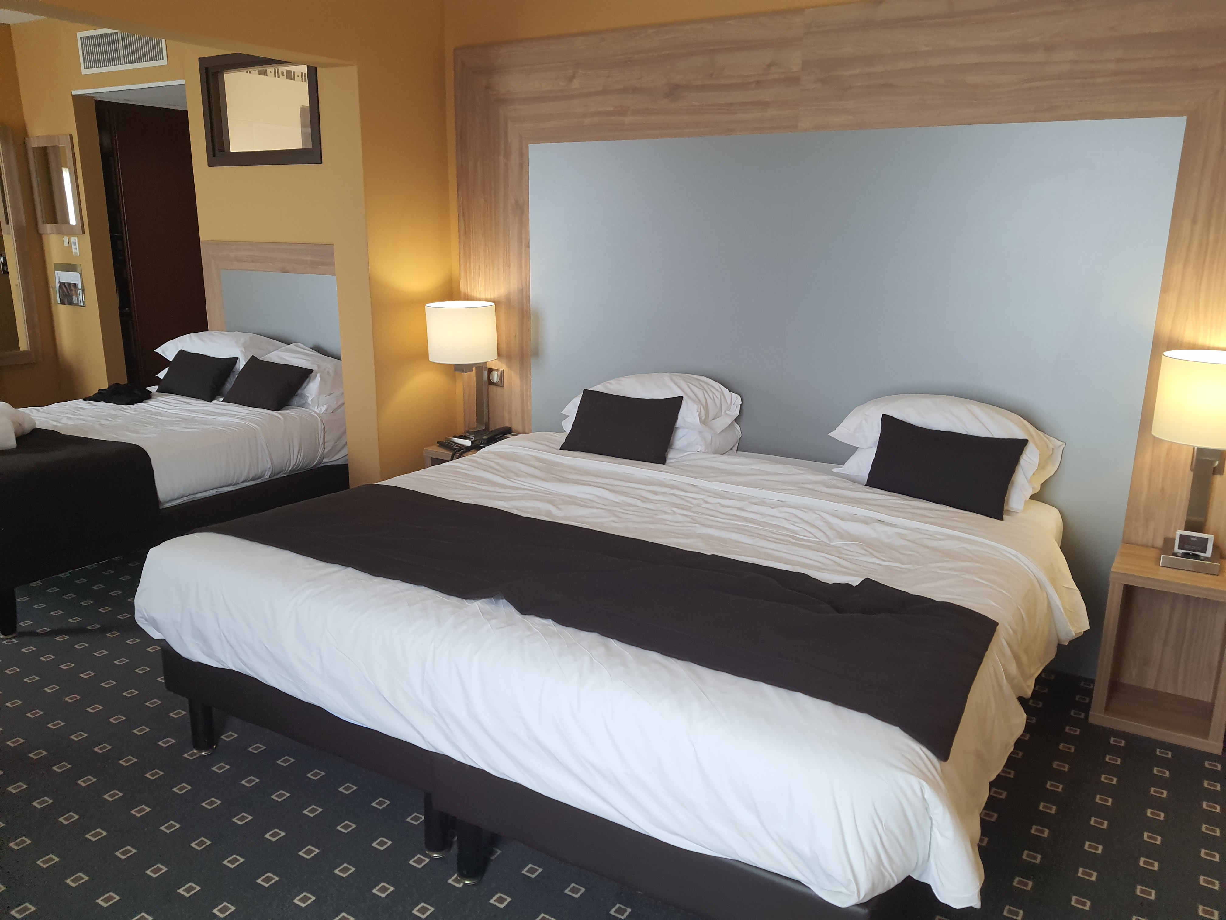 Très déçu de la chambre pour un 4 étoile. Tout d’abord, il y a une odeur très de tapis sale dans l’ascenseur et qui très désagréable au nez. Ensuite la chambre, j’ai eu une chasse d’eau qui fonctionnait une fois sur deux (j’ai signalé à l’accueil mais m’a demandé n’a pas été prise au sérieux), il y avait des carreaux cassés au sol de la salle de bain, les joint de la SDB été un peu marron a certains endroit, la porte de la SDB été en mauvaise état dû à l’humidité. Et il y avais aussi le mur de la SDB où ils ont remis de la colle. Tout ça pour dire que j’étais très très déçu et j’étais pas à mon aise. Et j’estime que si on désire effectuer des nuits dans un 4* le standing doit suivre. Et aussi, j’ai eu la visite d’une personne de l’hôtel (une femme) qui est rentrée dans ma chambre qui s’est excusée mais ne m’a pas dit pourquoi elle est venue. C’est étrange.