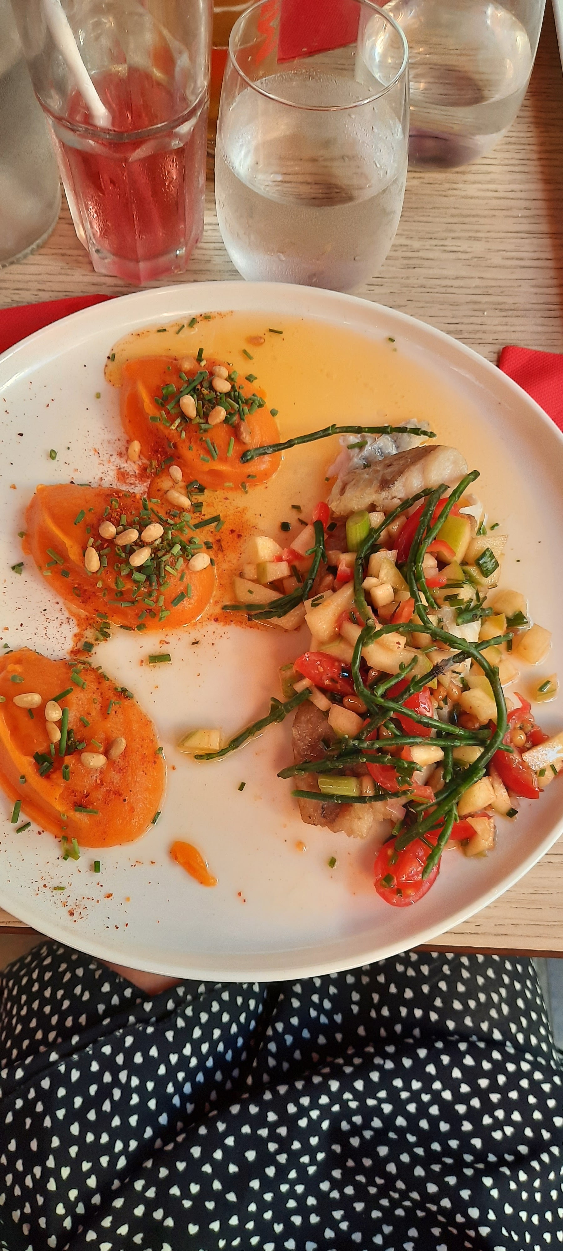 Un service sympa Le poison parfaitement cuit ( ce qui est rare) Tout est agréable Bravo