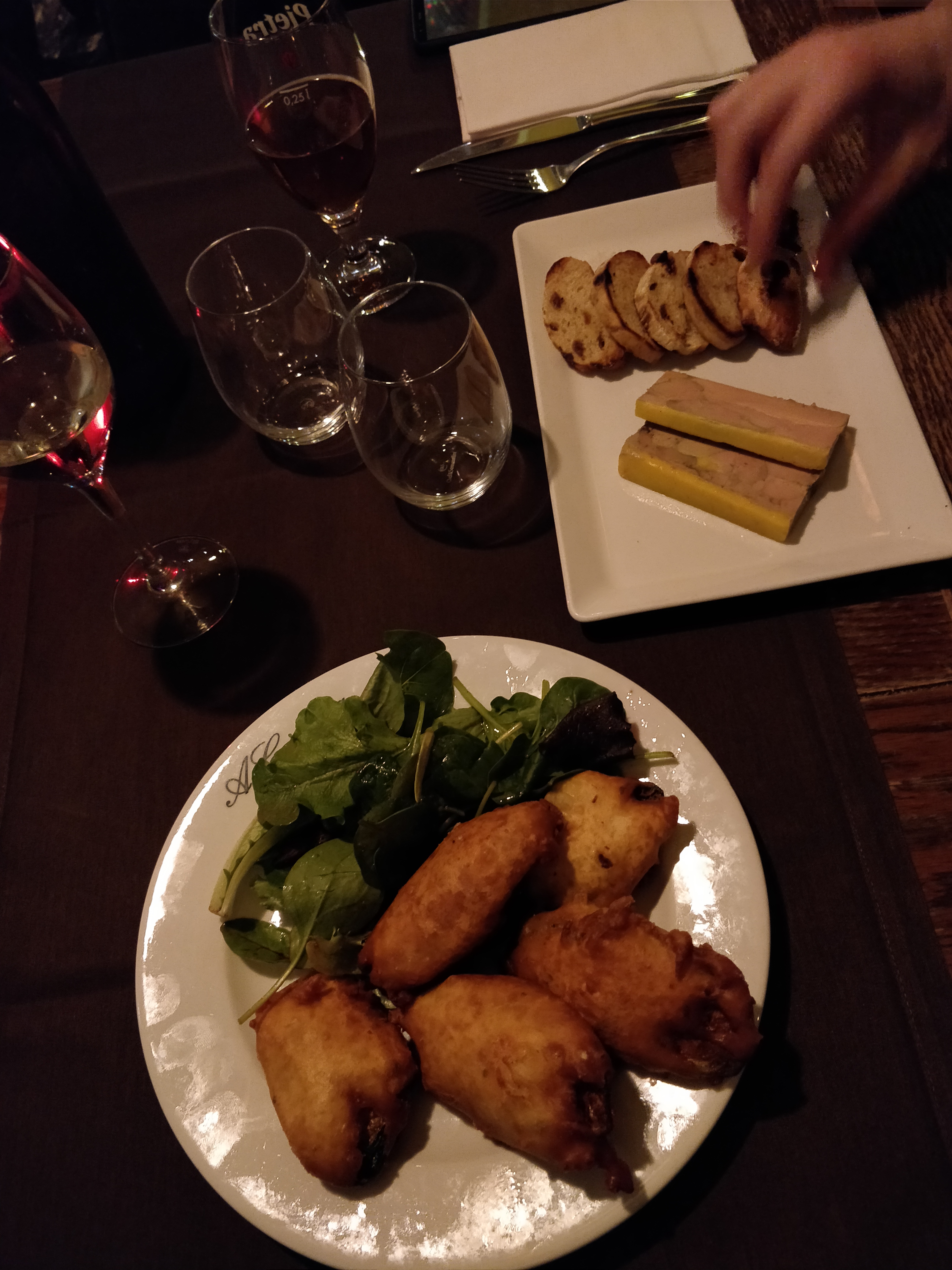 Habitués du restau A Cantina partie tapas, nous connaissons bien la carte et avons toujours plaisir à y manger. Le fromage était très bon accompagné d’un bon vin également, les beignets de courgettes excellents comme toujours. Petit bémol ce soir là : à 21h seulement, à la table centrale (canapé), un groupe de mecs complètement éméchés à 21h, du son identique aux sons des ferias et bien trop fort pour s’entendre discuter et apprécier le moment. Un service un peu surprenant : les serveurs (tous très jeunes) se comportaient davantage comme s’ils étaient en boîte de nuit que au sein d’un restaurant finalement. Nous mettrons, je pense, un certain temps avant d’y retourner : dommage. Quelques petites ajustements sont à revoir…