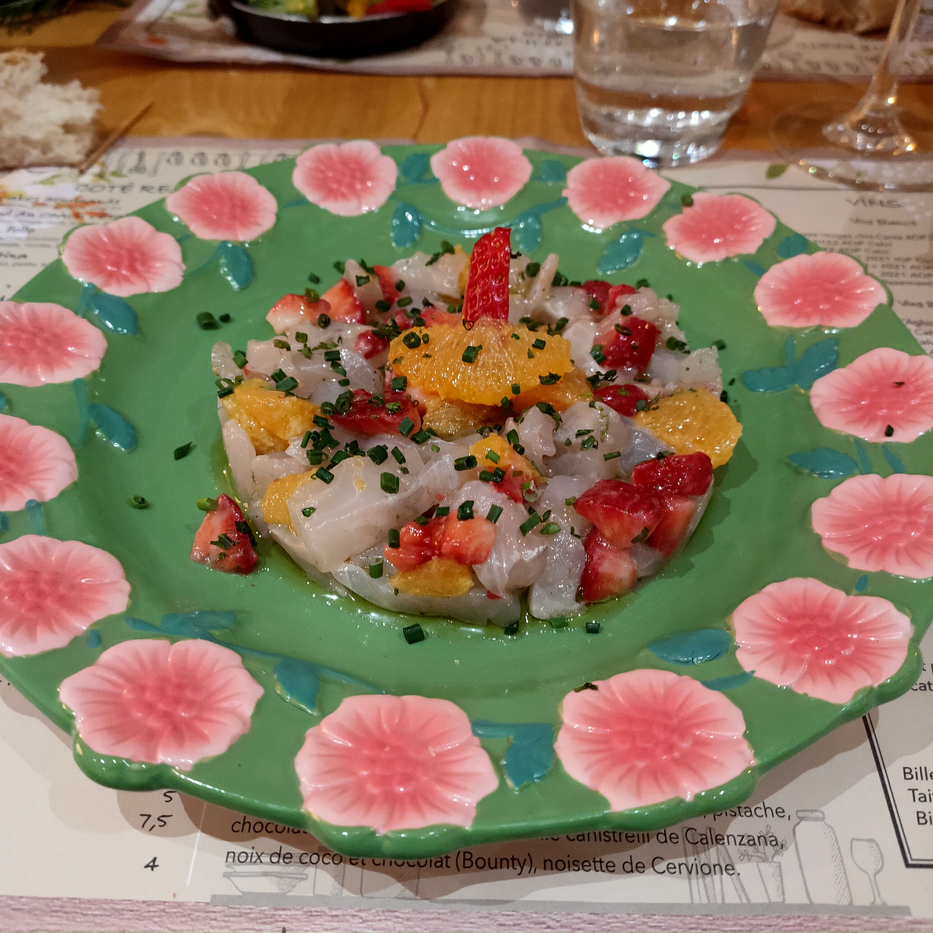 Restaurant très sympa en plein centre de Calvi. L’accueil était chaleureux, une bonne ambiance, le cadre était très sympathique. Pour les plats, en entré l’assiette de straciatella à partager; un vrai régal. En plat j’ai pris les calamars, qui étaient excellents et mon compagnon a adoré le tartare. Mention spéciale pour la marinade des olives !!! Je recommande fortement ce restaurant, une perle.