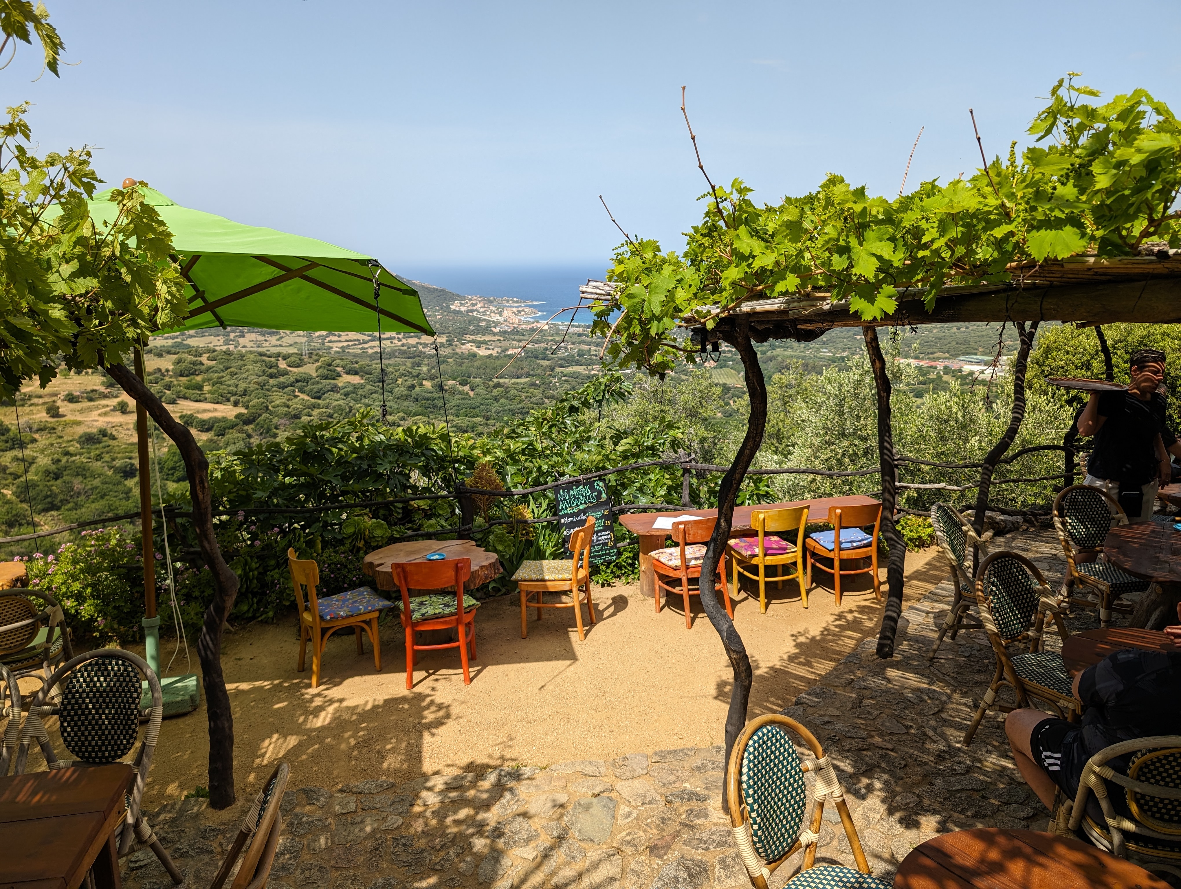 Que de points positifs pour cet endroit !!! Cadre magnifique, perché sur le versant mer du village de Pigna, qui a lui seul vaut absolument le détour Cuisine vegetarien-friendly vraiment très bonne, fraîche, et à prix raisonnables (houmous, caviar d'aubergine, poivrons marinés,...), rare pour la Corse où la charcuterie tient le haut du tableau Serveuses très sympathiques Ne changez rien!