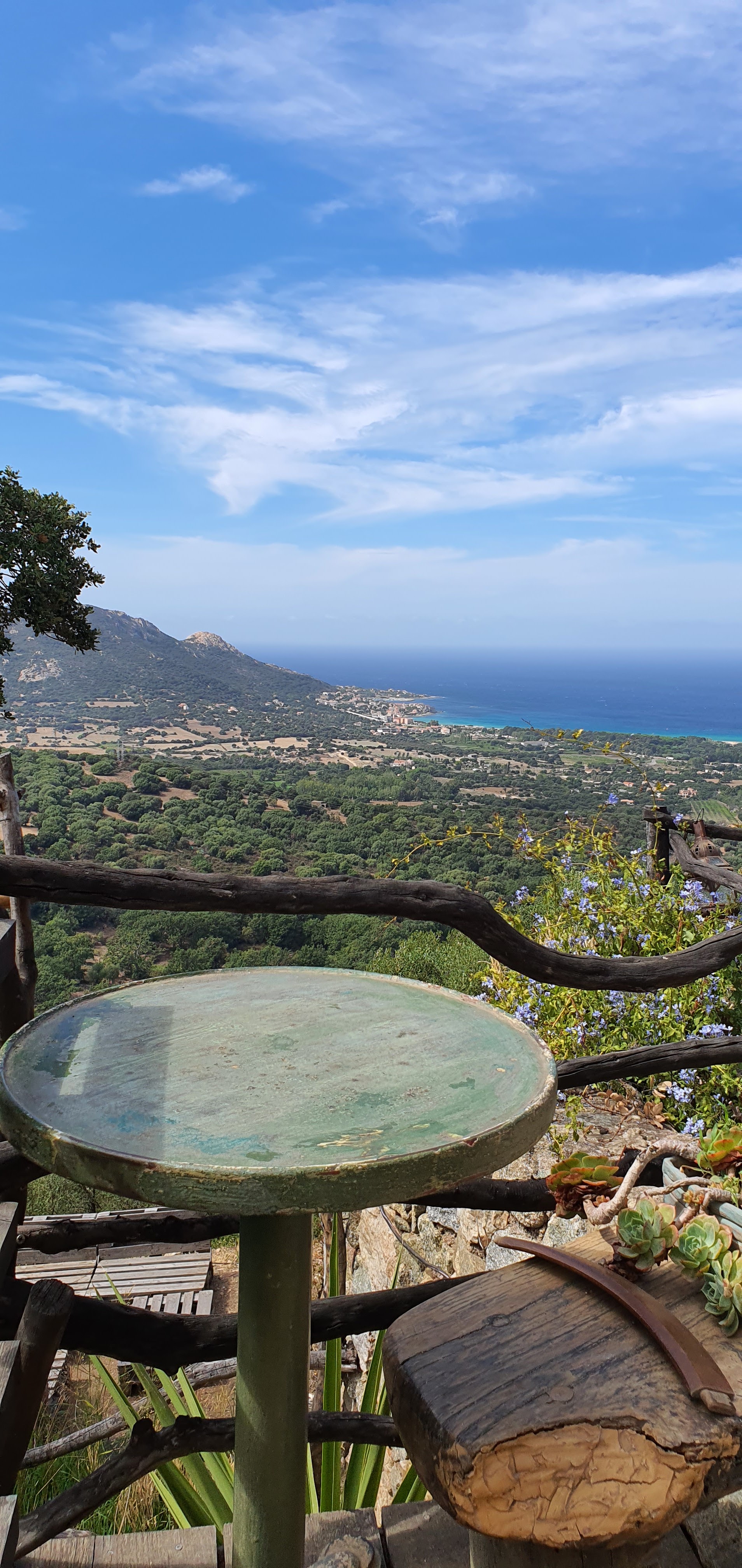 Un bel endroit dans la montagne pour déguster des produits de Corse avec vue sur la baie d'Aregno et Algajola.