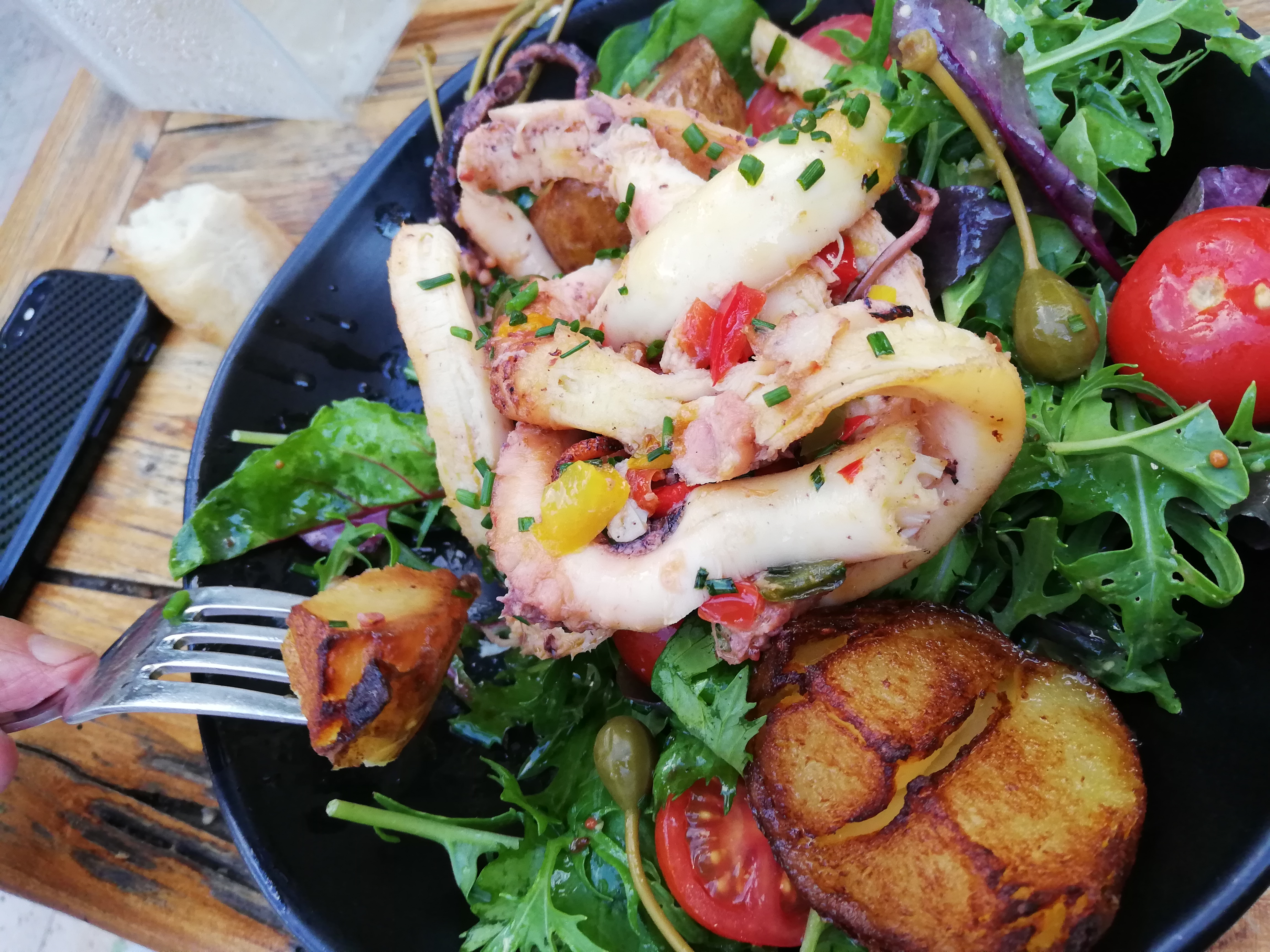 Cadre très agréable, la qualité de la nourriture est incroyable, les tentacules de calamar sont cuitées à la perfection, je recommande 1000x, personnel très agréable également