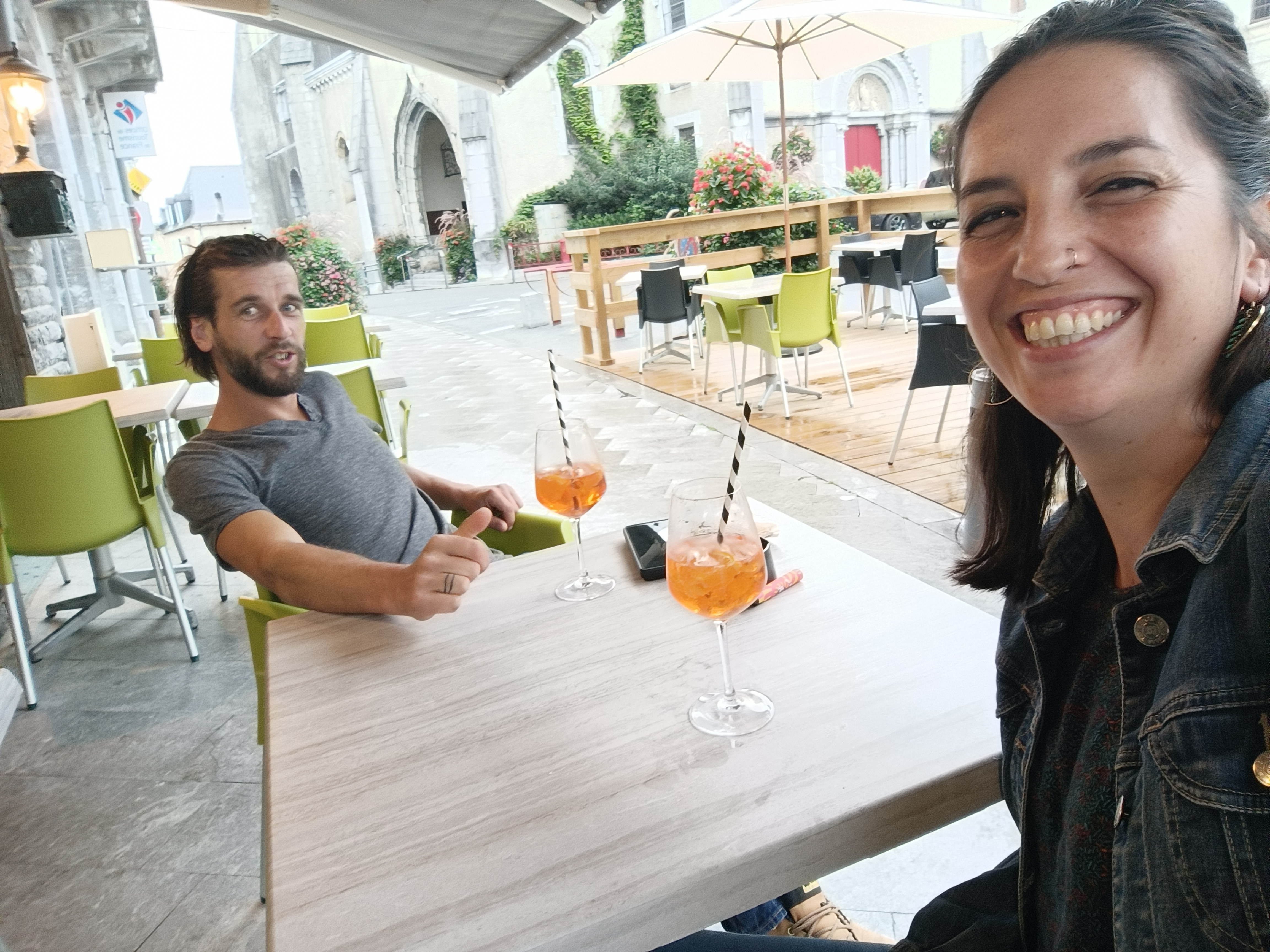 Repas simple mais bien fourni sous la terrasse de cette charmante bourgade d 'Arudy .Retour à la voiture par passage grandiose de la mairie pouvant servir aux sans abris et utilisation des toilettes municipales tout aussi grandioses .Oh le budget !