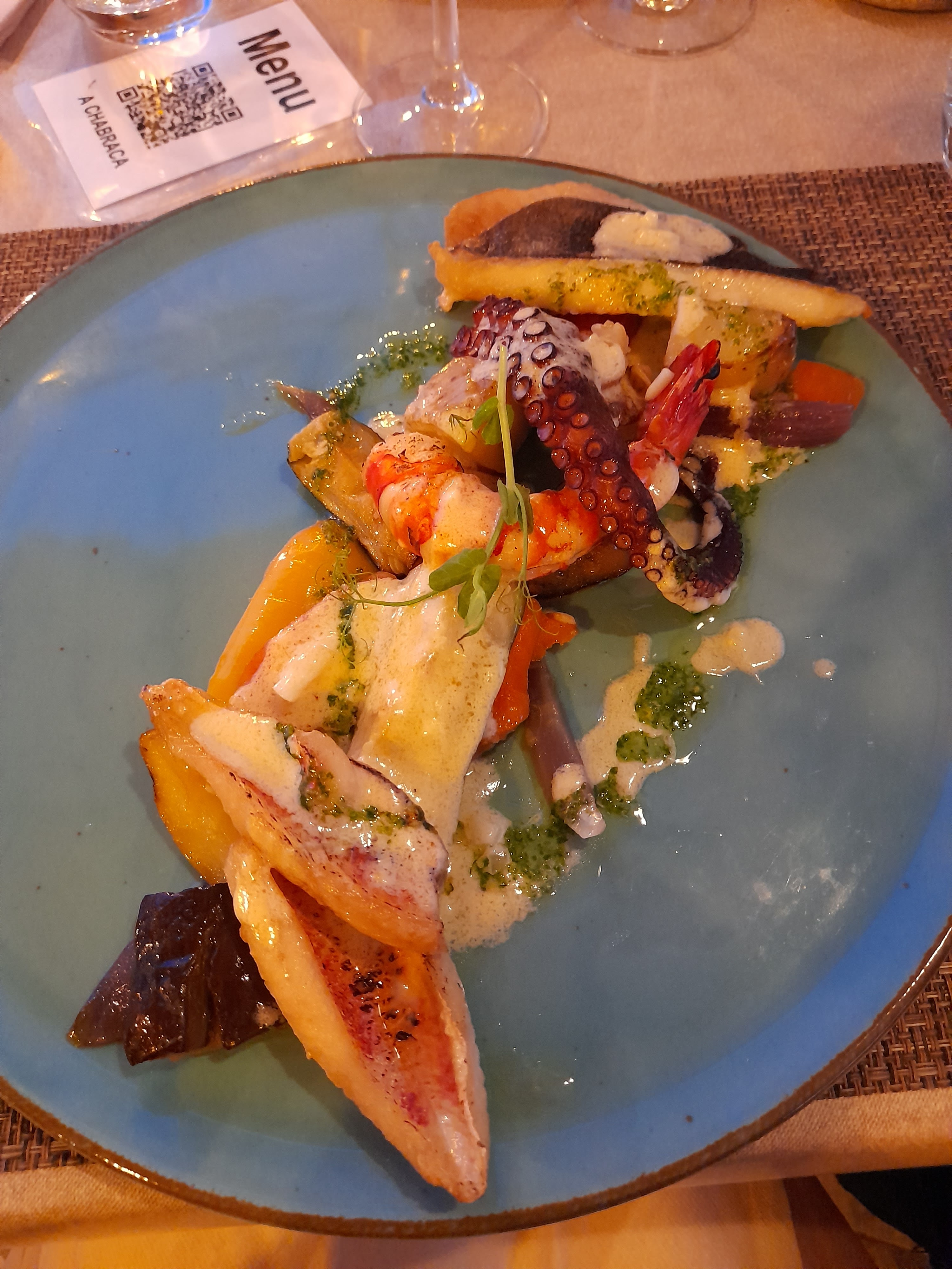 Mon resto préféré à Porto-vecchio, et de loin ! Carte variée, tout était absolument délicieux, de la vraie cuisine, fine, subtile et généreuse, des produits de qualité, du fait maison de A à Z! Super accueil, service plus que parfait sans être guindé, on a l'impression d'etre accueilli chez des amis :) On a testé les nems de rouget et le tartare de thon (bien meilleur et original que ceux testés en centre ville), la souris d'agneau et le suprême de volaille ou les produits corses sont sublimés (pas comme la plupart des restos qui en mettent a toutes les sauces, sans âme, pour faire 'local') et les desserts sont du meme niveau : au top ! Je vous recommande la tarte au citron revisitée, chaque plat regorge de petits détails bien pensés. Les prix sont plus ou moins les mêmes qu'ailleurs a Porto-vecchio, c'est pas donné mais pas deconnant pour autant, et pour une fois ça vallait le coup. Mon seul regret, découvrir cette perle en fin de séjour, A Chabraca et son équipe sont bien au dessus du lot des restos des alentours !