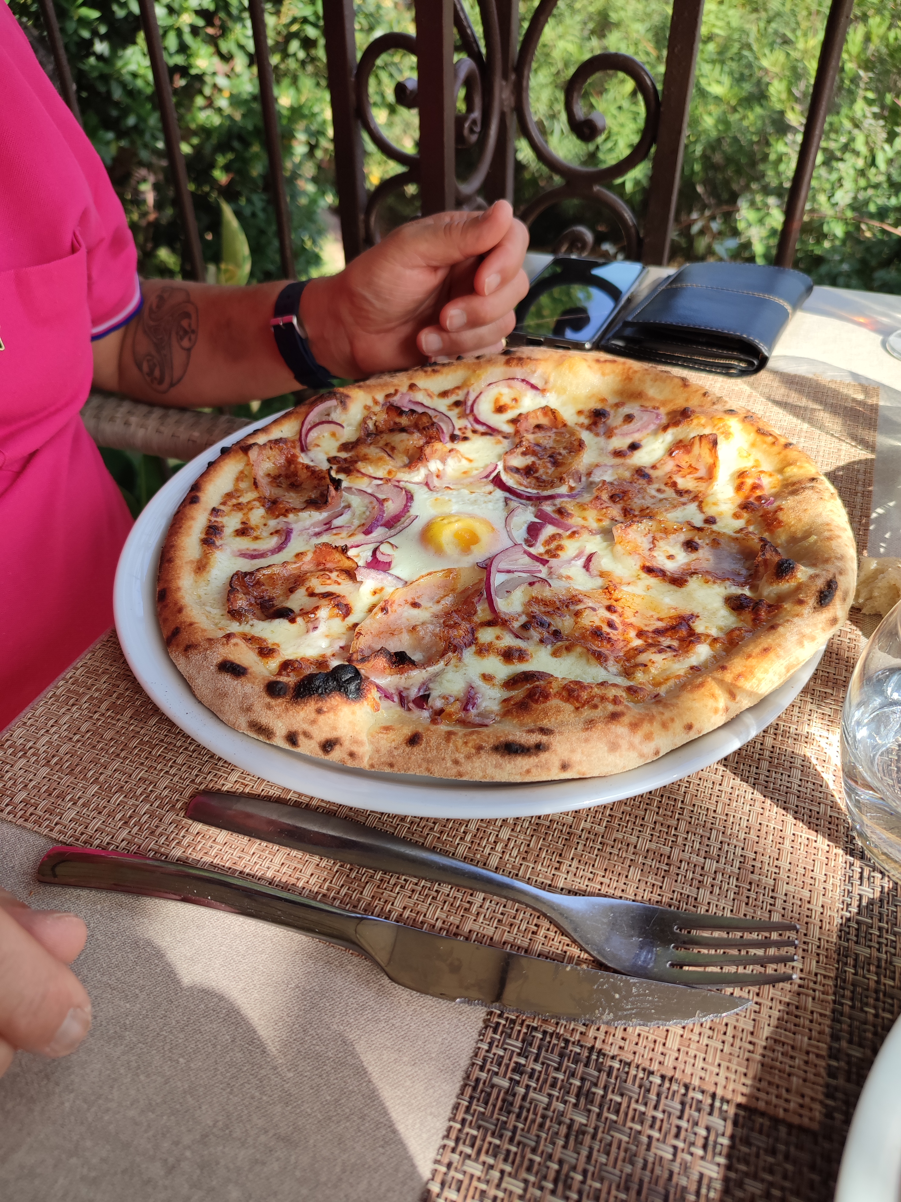 Restaurant magnifique, tout en pierre, bois et fer forgé. Très fleuri ! Un endroit vraiment très beau dans un cadre splendide. La carte est assez variée et les pizza au feu de bois. Le personnel est très accueillant et sympathique. Les prix semblent être cohérent avec ce qu'il se fait dans le centre-ville et sur le port. J'y ai passé un moment très agréable et reposant.