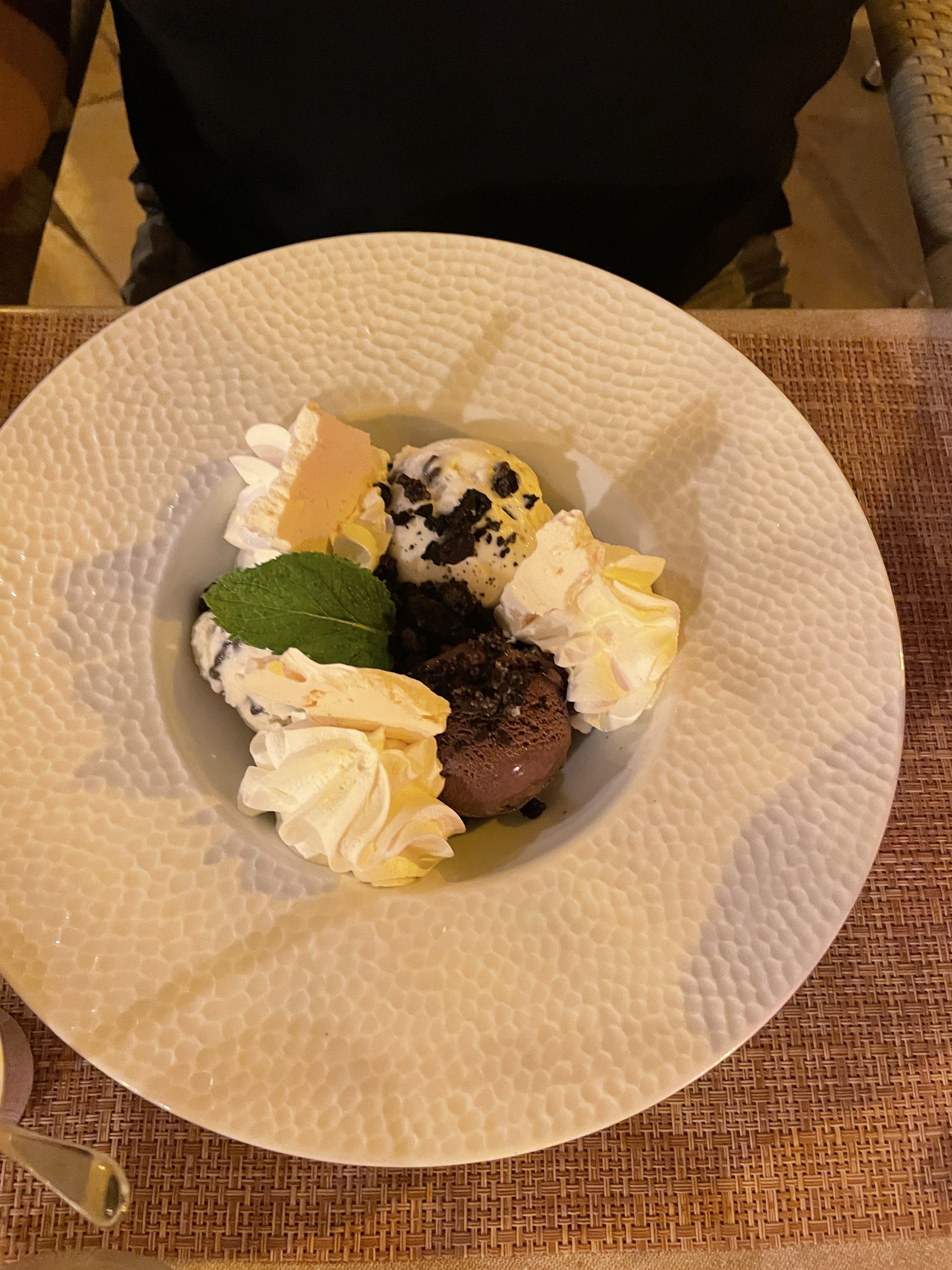 Un restaurant idéalement situé avec un point de vue sur Palombaggia et une équipe qui prend soin de vous et des plats succulents En photo le suprême de poulet au fromage corse et le moelleux au chocolat