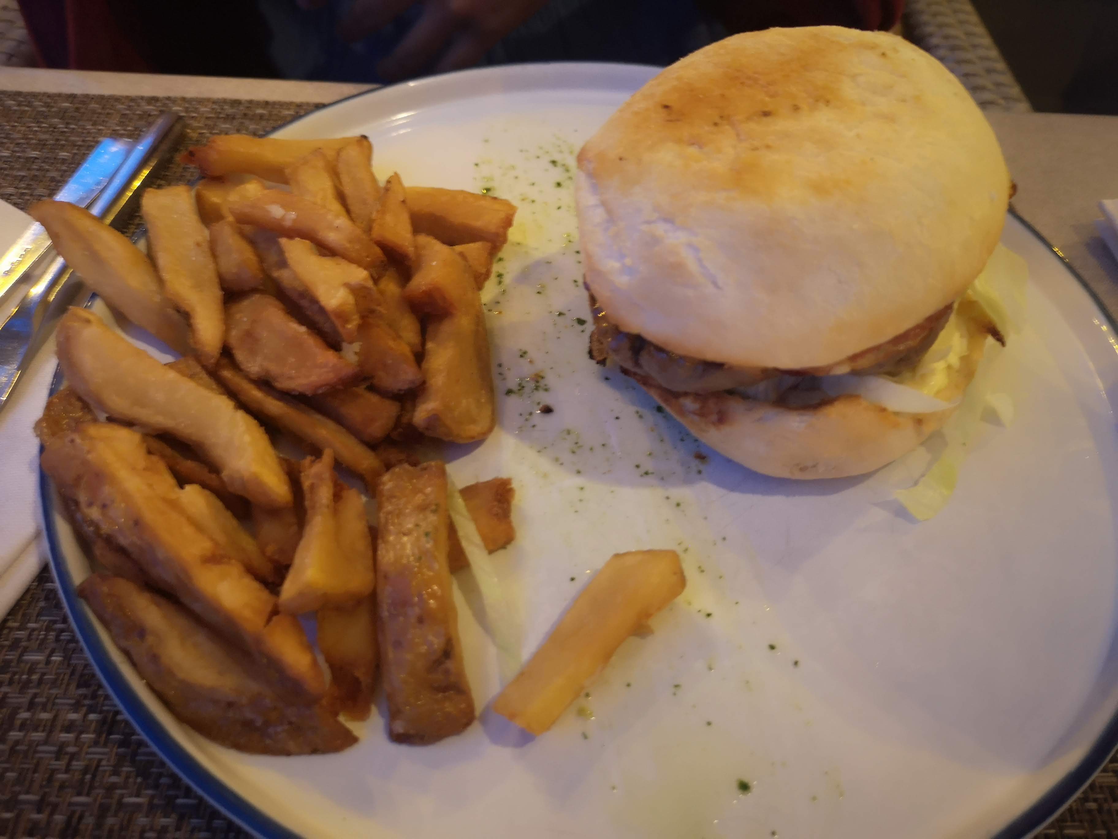 Super, personnel au petit soin, adorable ! On a pris un burger et un supreme de volaille, c'etait trop bon ! Ils ont des plaids vu que le restaurant est ouvert sur la grande terrasse. Oui il y a des moustiques mais ils sont équipés avec des spray anti-moustiques et des spirales anti-moustiques ! On a pu diner tranquille apres qq mn de bataille :D