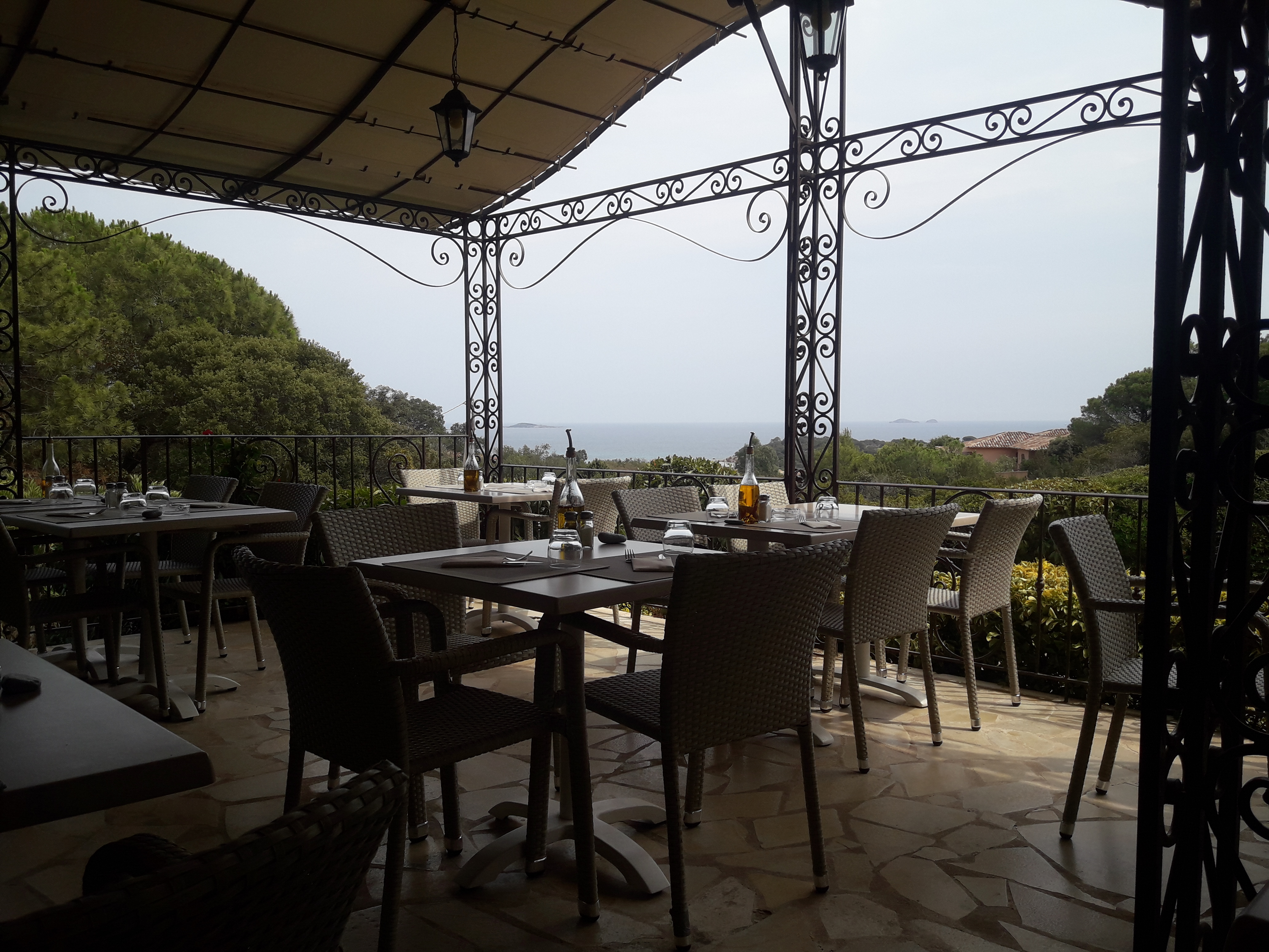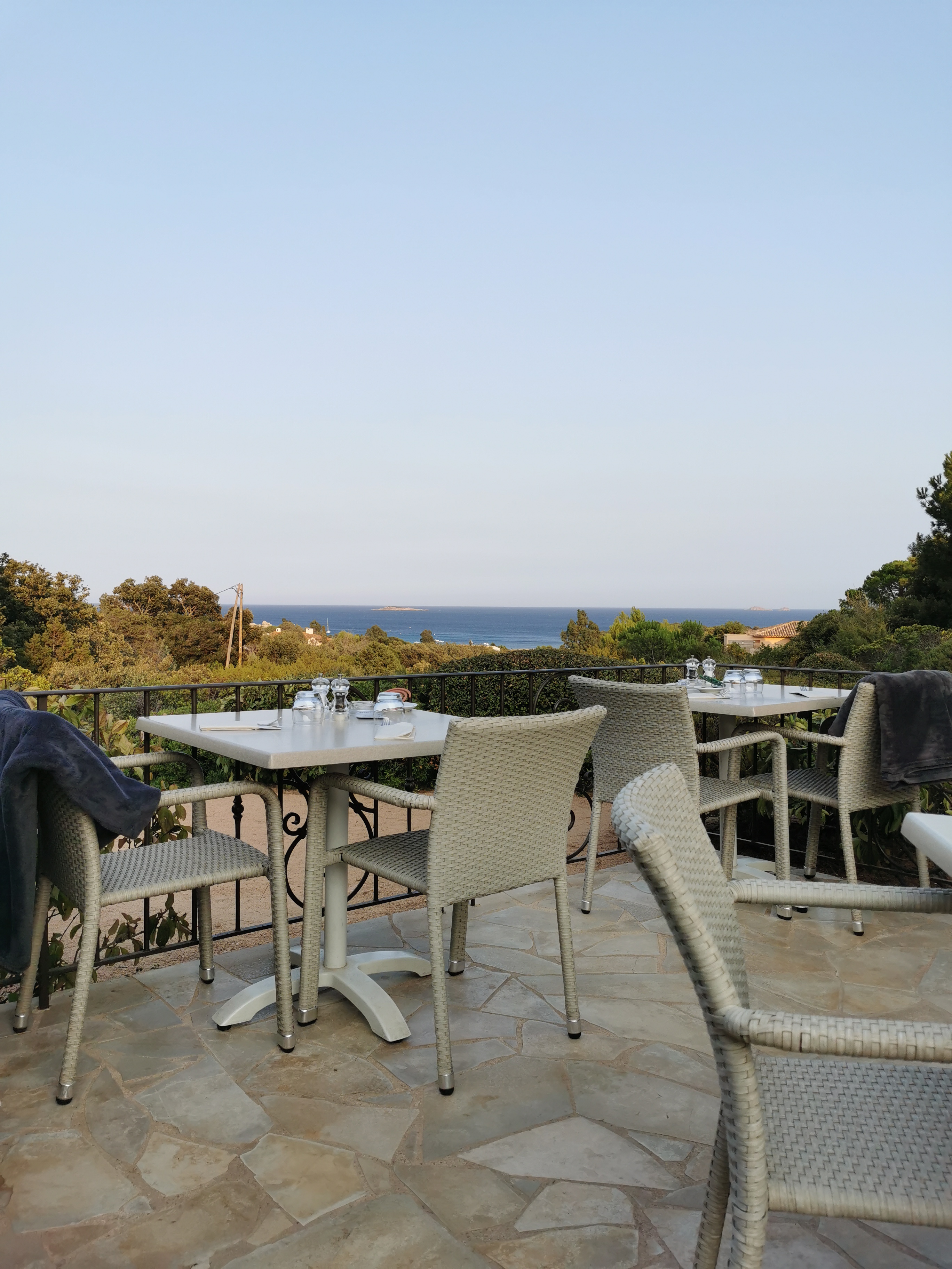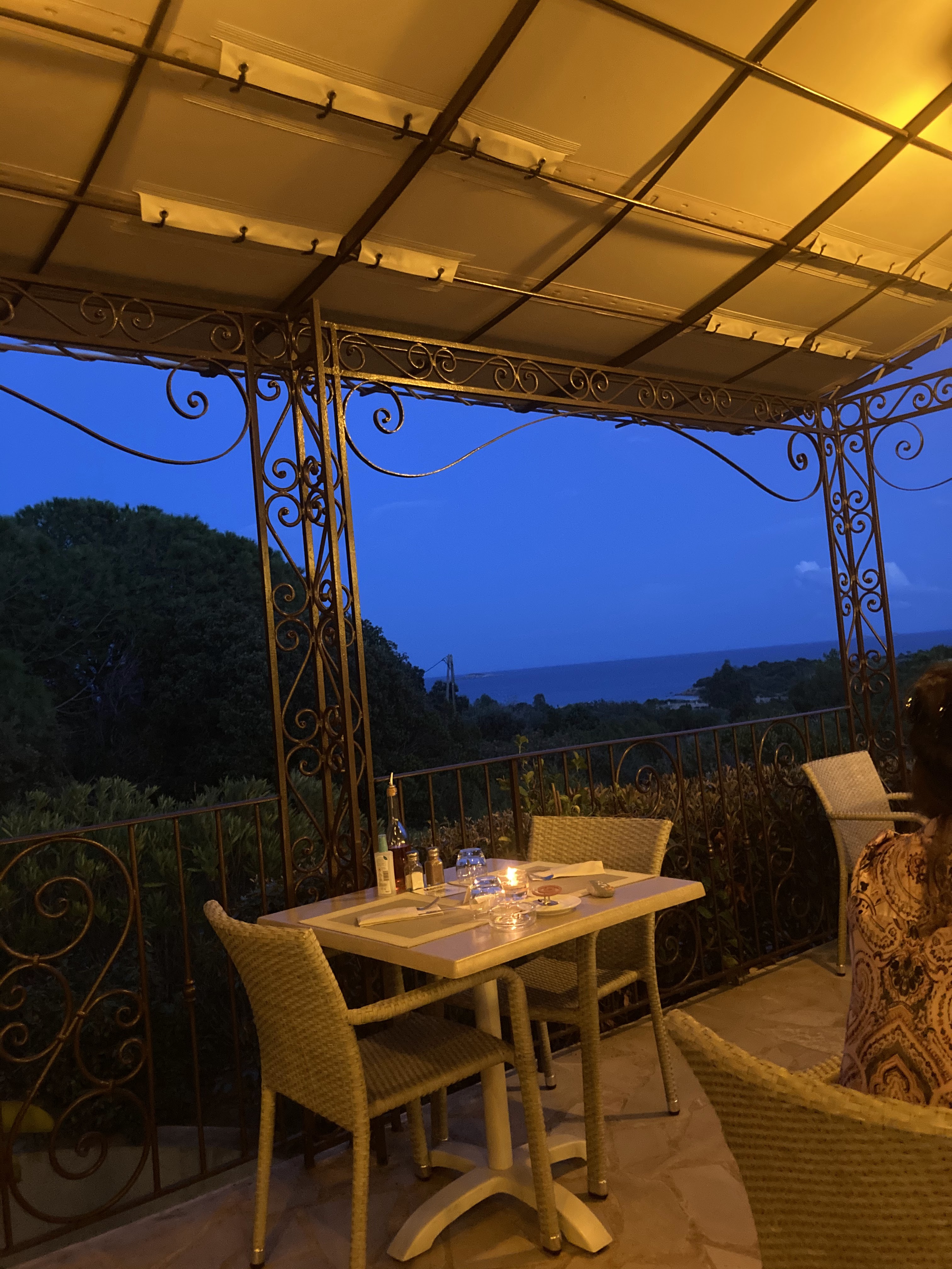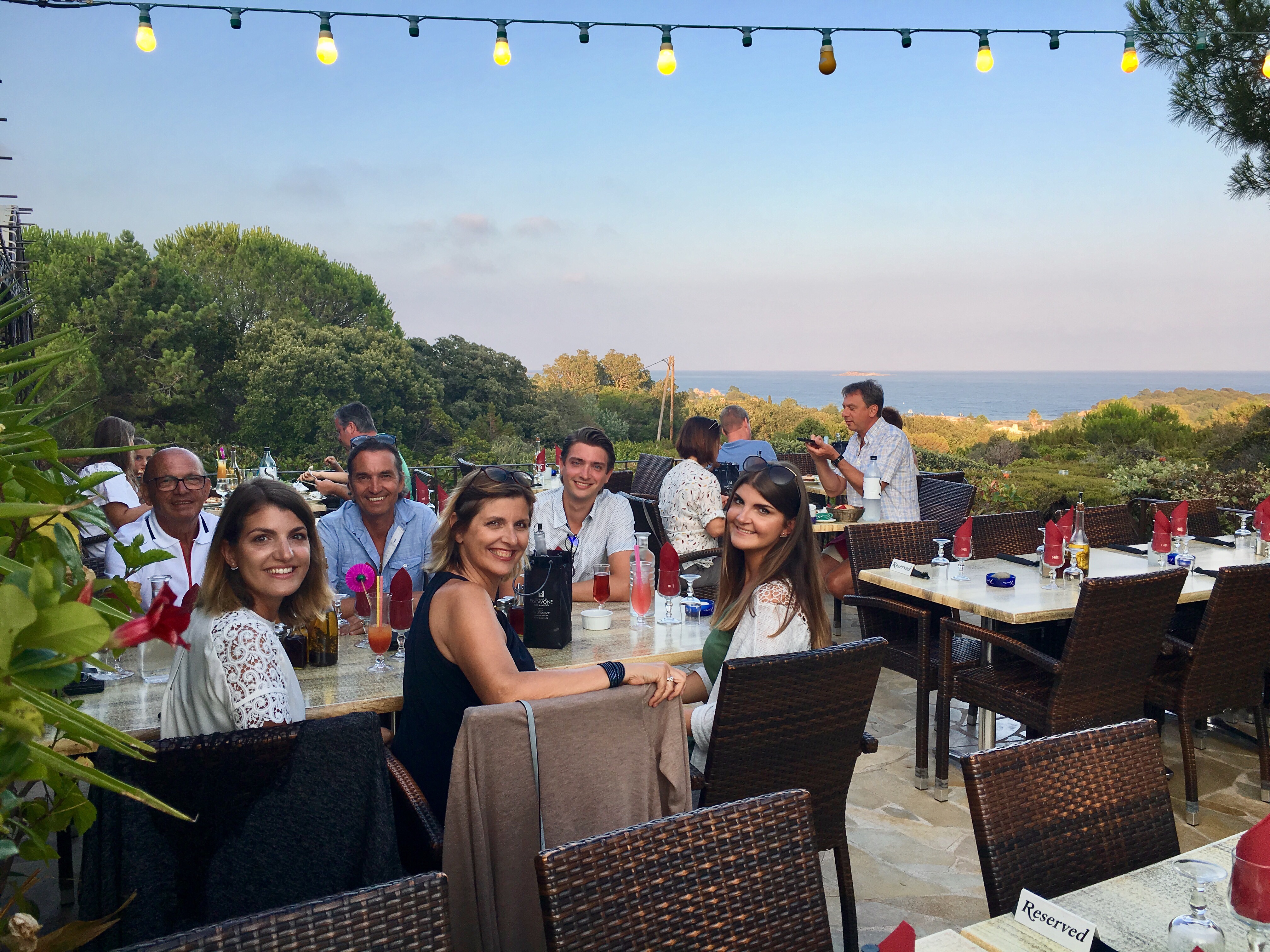 Terrasse avec vue magnifique sur la baie de Palombaggia, avec en prime une belle pleine lune pour nous. Personnel accueillant. Repas très bon du début à la fin. Nous reviendrons c'est sur et nous le recommanderons à nos proches.