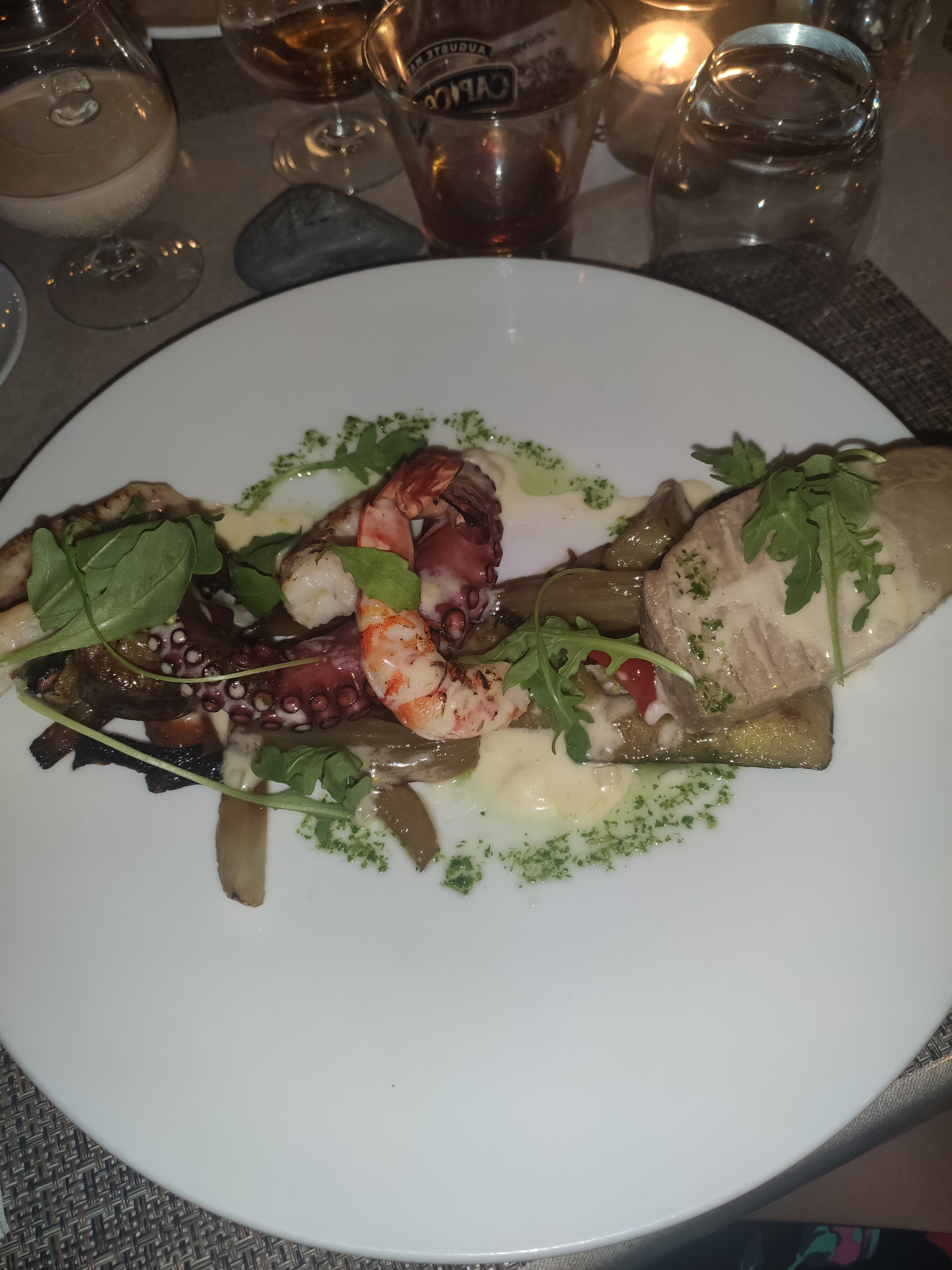 Très bonne expérience culinaire Cadre agréable et jolie vue Les plats étaient tous satisfaisants dans l'ensemble. (Souris d'agneau et dorade très bonne, calzone classique sans plus) De même pour les desserts L'ambiance est bonne avec les lumières au milieu de la table qui sont très sympas. Les serveuses étaient un peu pressées car le restaurant était très rempli. Je vous recommande d'y venir une fois si vous êtes dans le coin