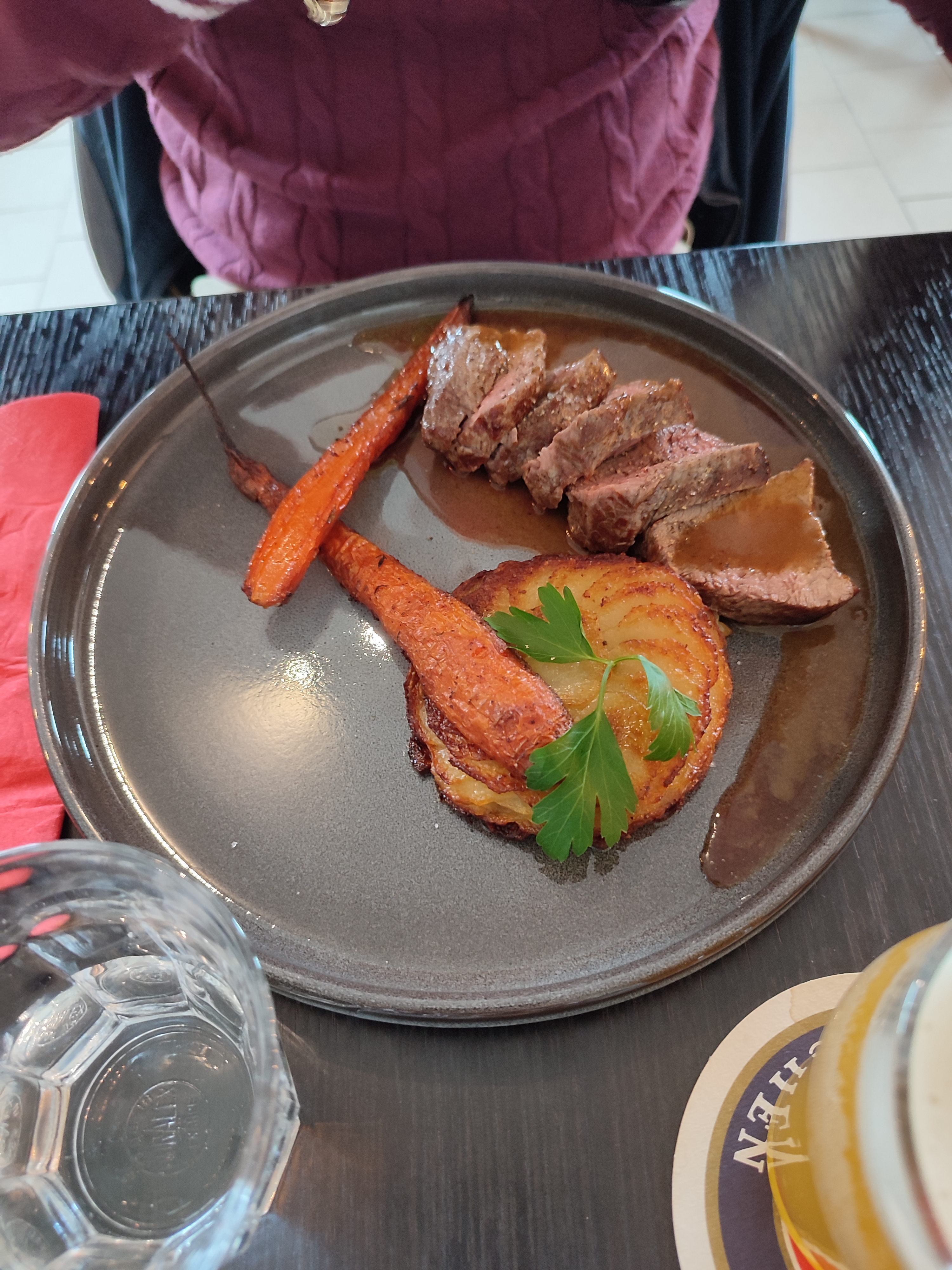 Cuisine à 98% maison. Choix dans la carte limité pour permettre de proposer une cuisine du jour. Prochainement boissons sans alcool bios. Accueil très sympathique.
