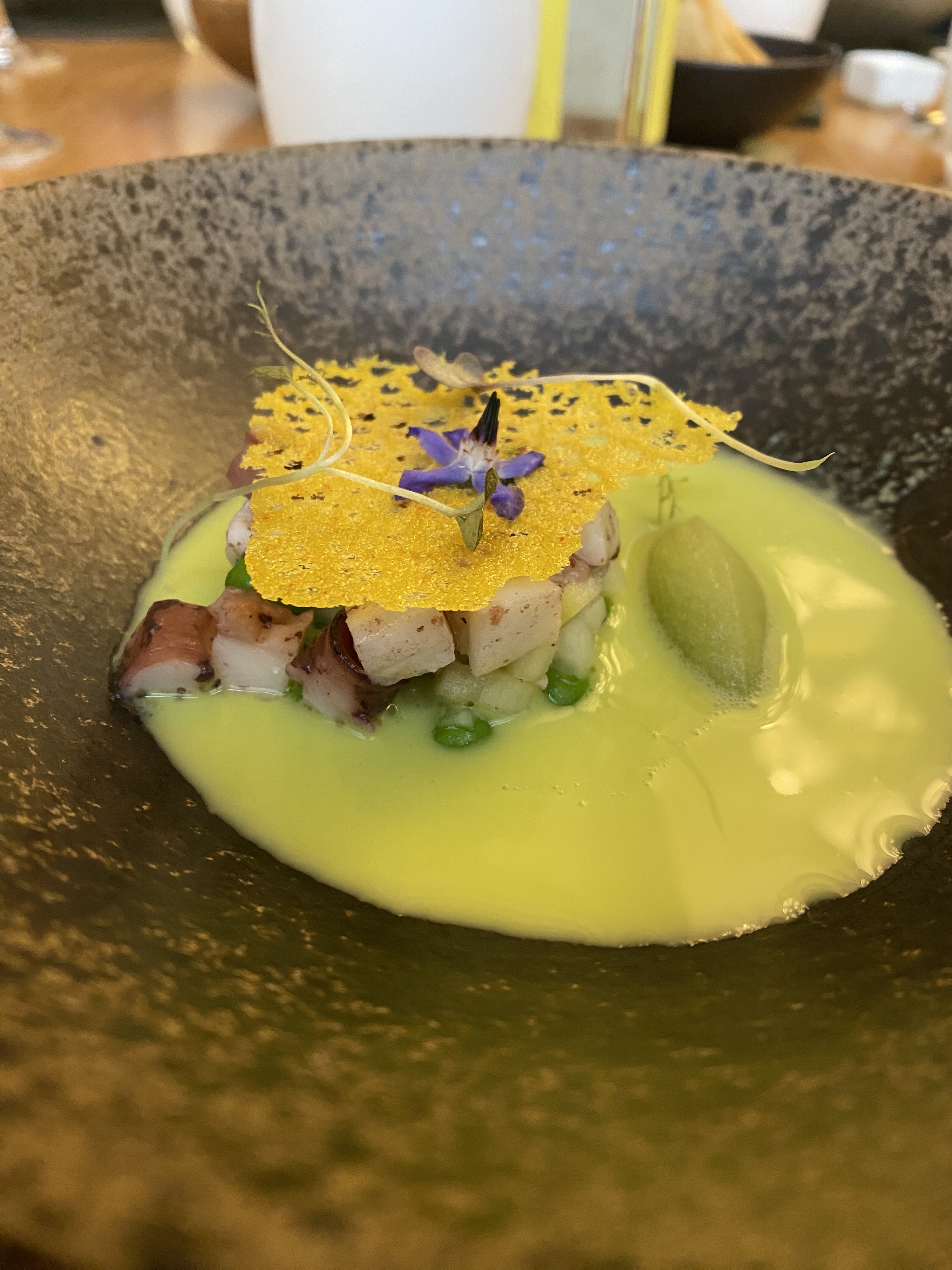 Plats exquis, nous avons pris un menu en 5 temps avec 2 verres de vin chacun et c'était juste incroyable ! Les quantités sont parfaites, les produits sont locaux et délicieux et le tout est parfaitement travaillé. Un délice à la hauteur de sa réputation !