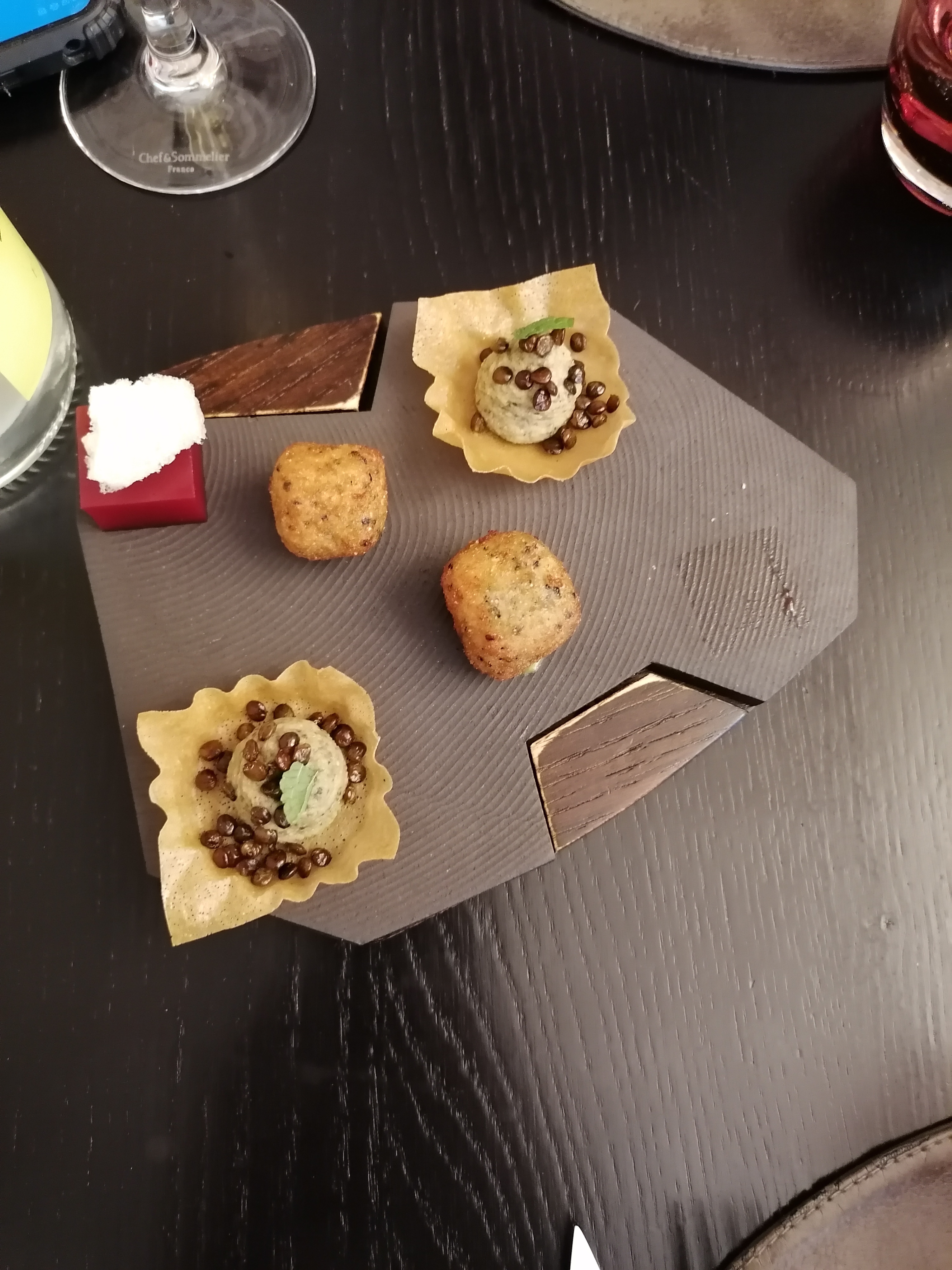 Mises en bouche recherchées.menu rapport qualité prix plus que correct pour 1ere mise.ambiance feutrée avec fond musical bien que la salle doit comble..je recommande