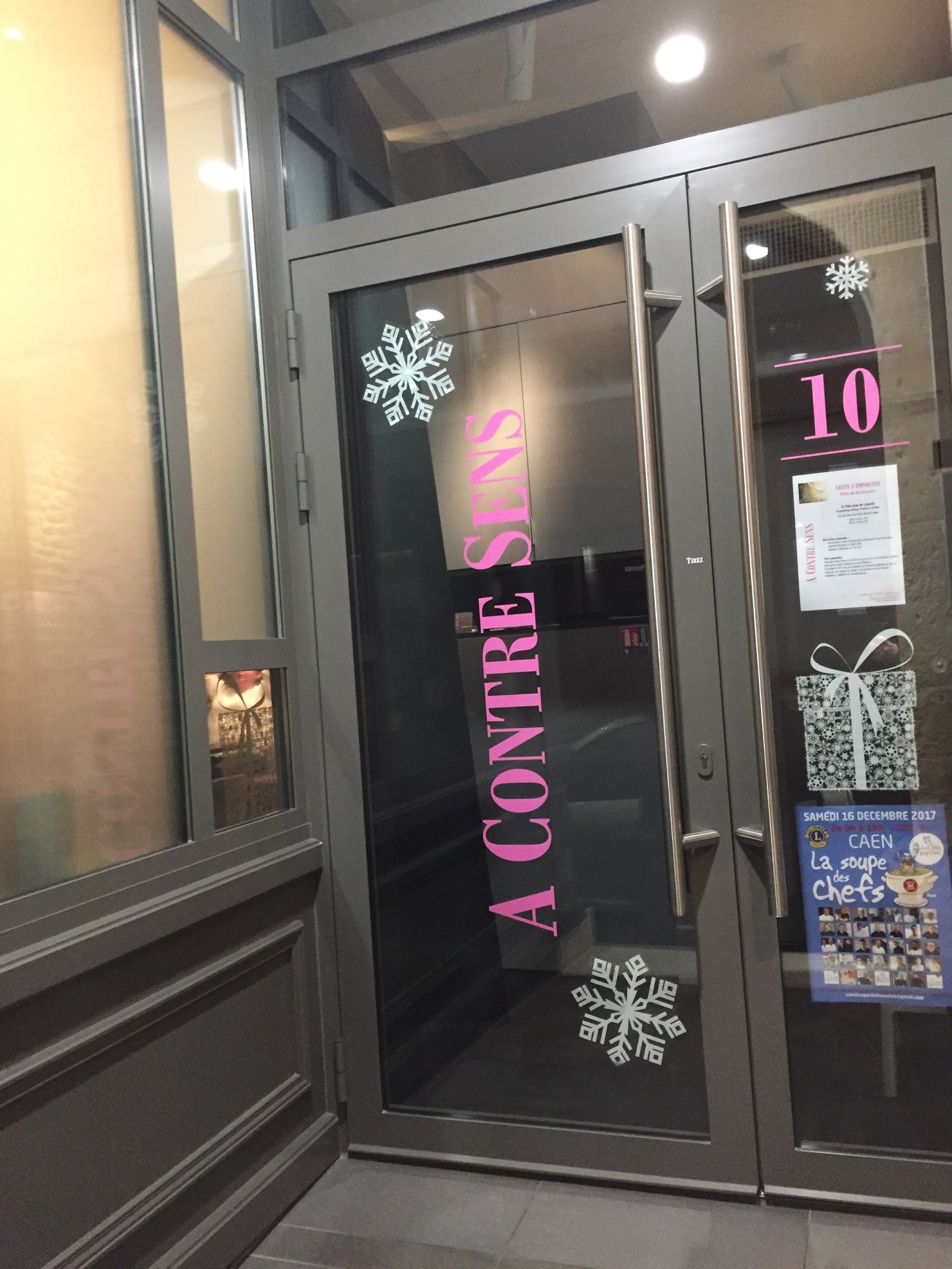 Service attentif et discret, cuisine inventive et passionnante, A Contre Sens nous invite sur le chemin de goûts nouveaux sans excentricité. Les cuissons sont parfaites et l organisation des saveurs se déroule comme le scénario d un bon film que l on reverra sans tarder. La salle est élégante, tapissee d une exposition temporaire sans intérêt et dans les rires carnassiers d un groupe sans retenue. Apres tout, de la cuisine de haut vol, dans une ambiance bistro, c est aussi ça l élégante simplicité d A contre sens, comme une beauté rafinée qui ne s encombre pas de fard pour être appréciée. À très bientôt.