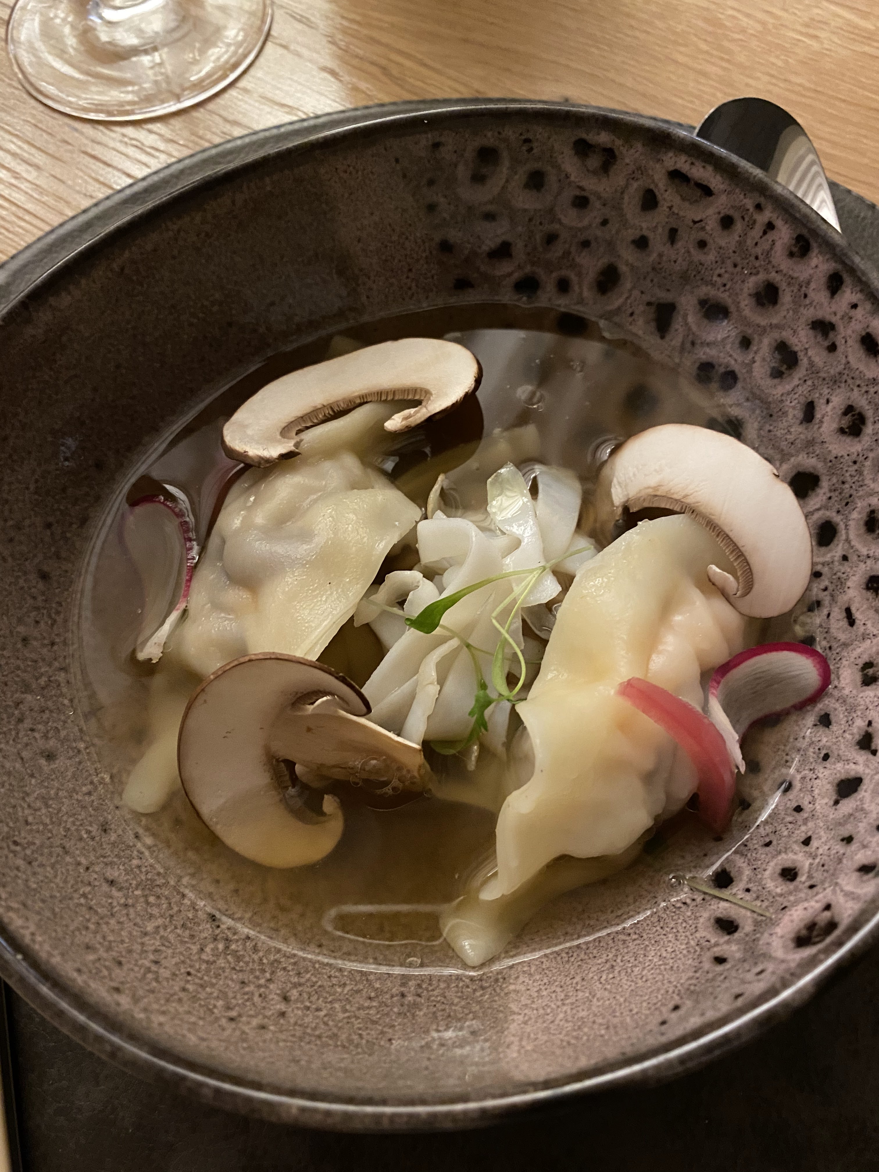 très déçu , portions ridiculement petites , 2 ravioles à couper en deux ( sur recommandation du chef ) viande d'agneau excellente , mais seulement 4 bouchées . repas offerts par nos enfants , nous ne reviendrons pas ..