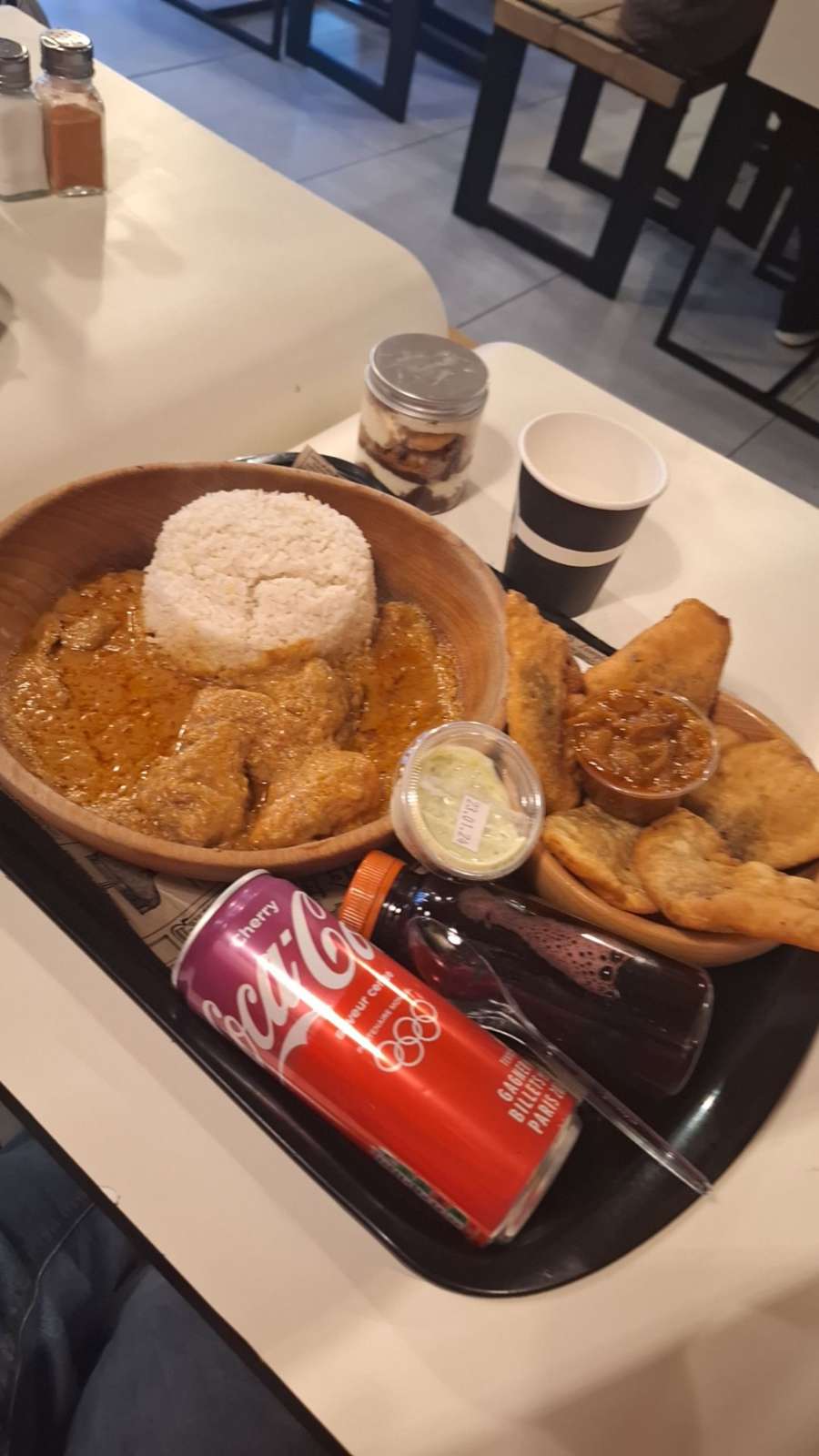 Plats très bons, le dibi agneau accompagné du riz m’a mis une claque. Je recommande a 100% (j’aurais mis 5 étoiles si les pastels étaient à la hauteur du plat).