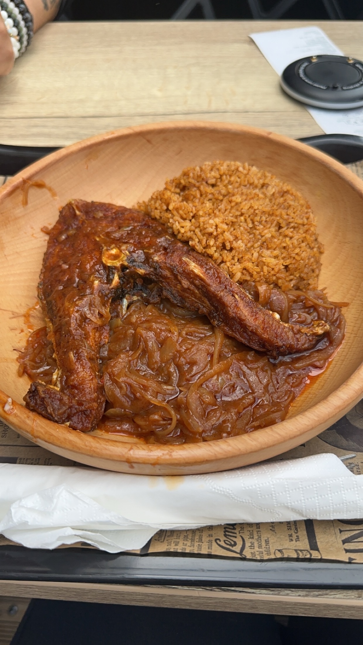 Je recommande ce restau les plats sont abordables et à la foi super bons et bien assaisonnés, comme vous pouvez le voir je n’ai rien laissé 🤭🫵🏽 petit bémol pour la queue et le monde dans le restau, mais le service reste quand même assez rapide