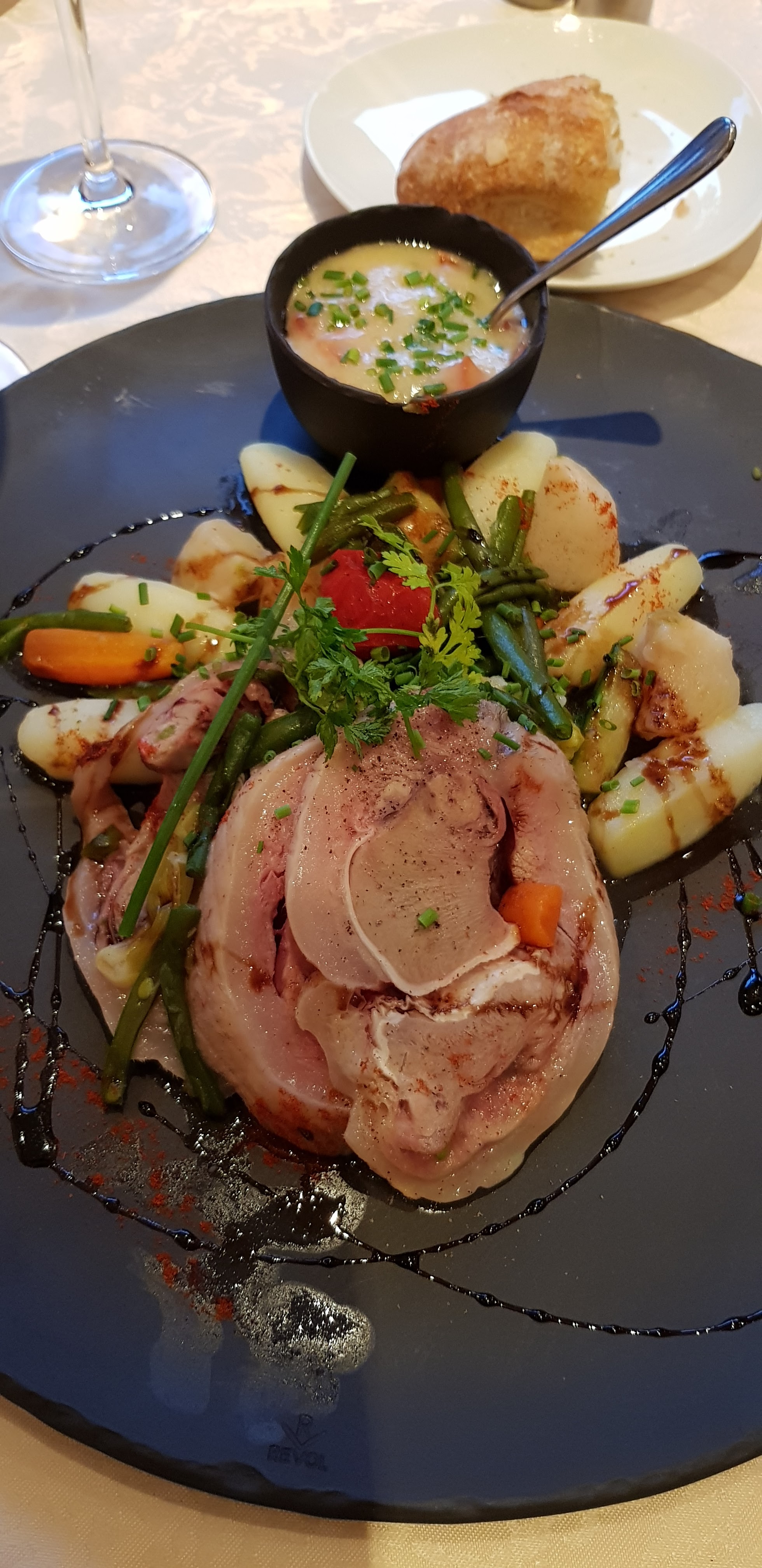 Excellent restaurant bonne ambiance le chef n'était pas là c'est son second qui était en cuisine un régal pour les papilles prix élevé mais justifié par rapport à la qualité du lieu je recommande