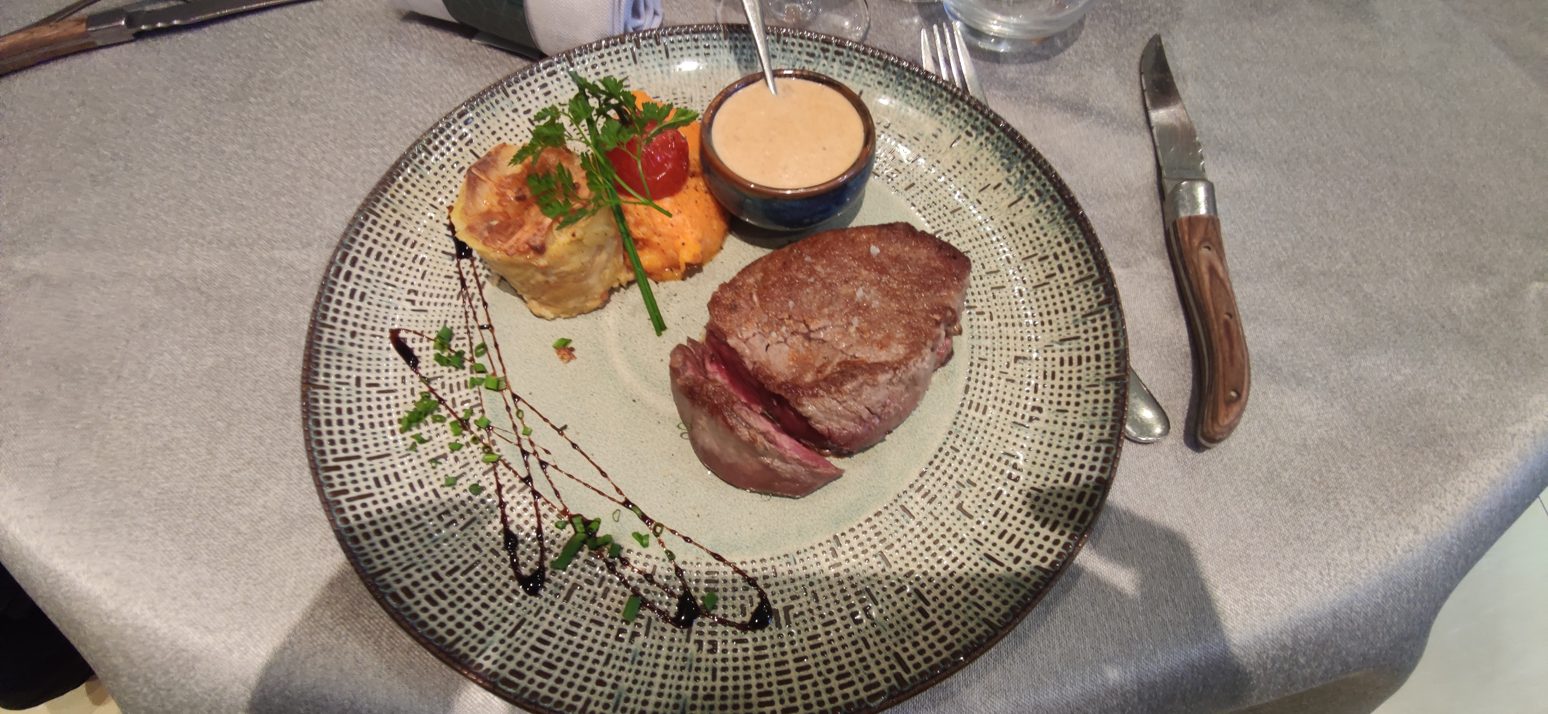 Tout était extra la cuisine raffinée et délicieuse minutieusement préparée. La quantité est parfaite, les serveurs sont adorables et au petit soin. C’était la 1ère fois que nous y sommes allés mais ce ne sera pas la dernière nous gardons un excellent souvenir. En revanche petits budgets s’abstenir. Bonne continuation c’est rare de nos jours de trouver d’aussi bons restaurants. A bientôt