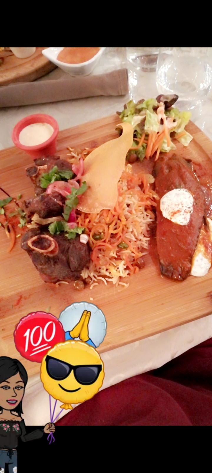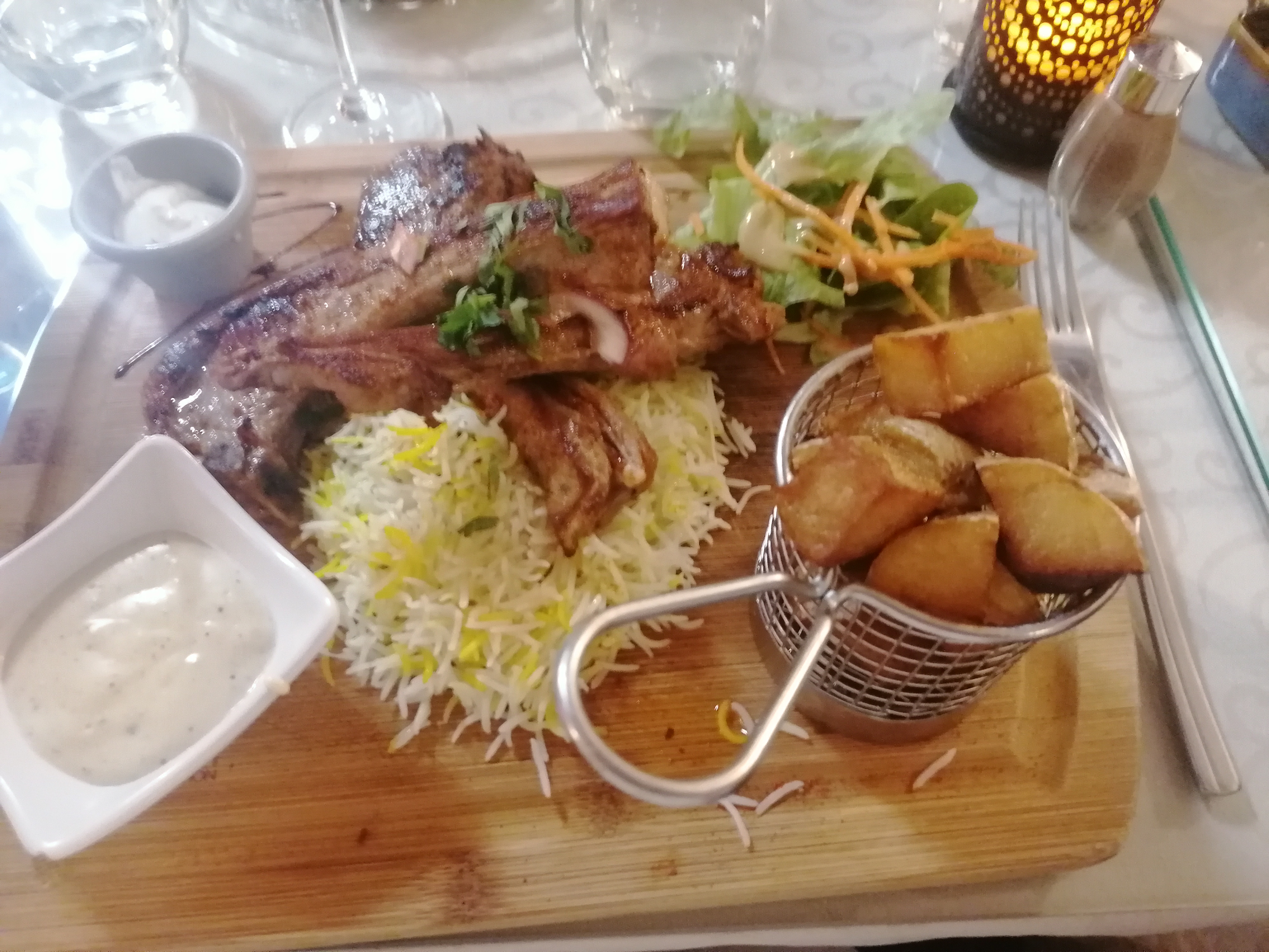 Très bon, l'agneau est savoureux et tendre, les épices bien dosés, personnel sympathique, l