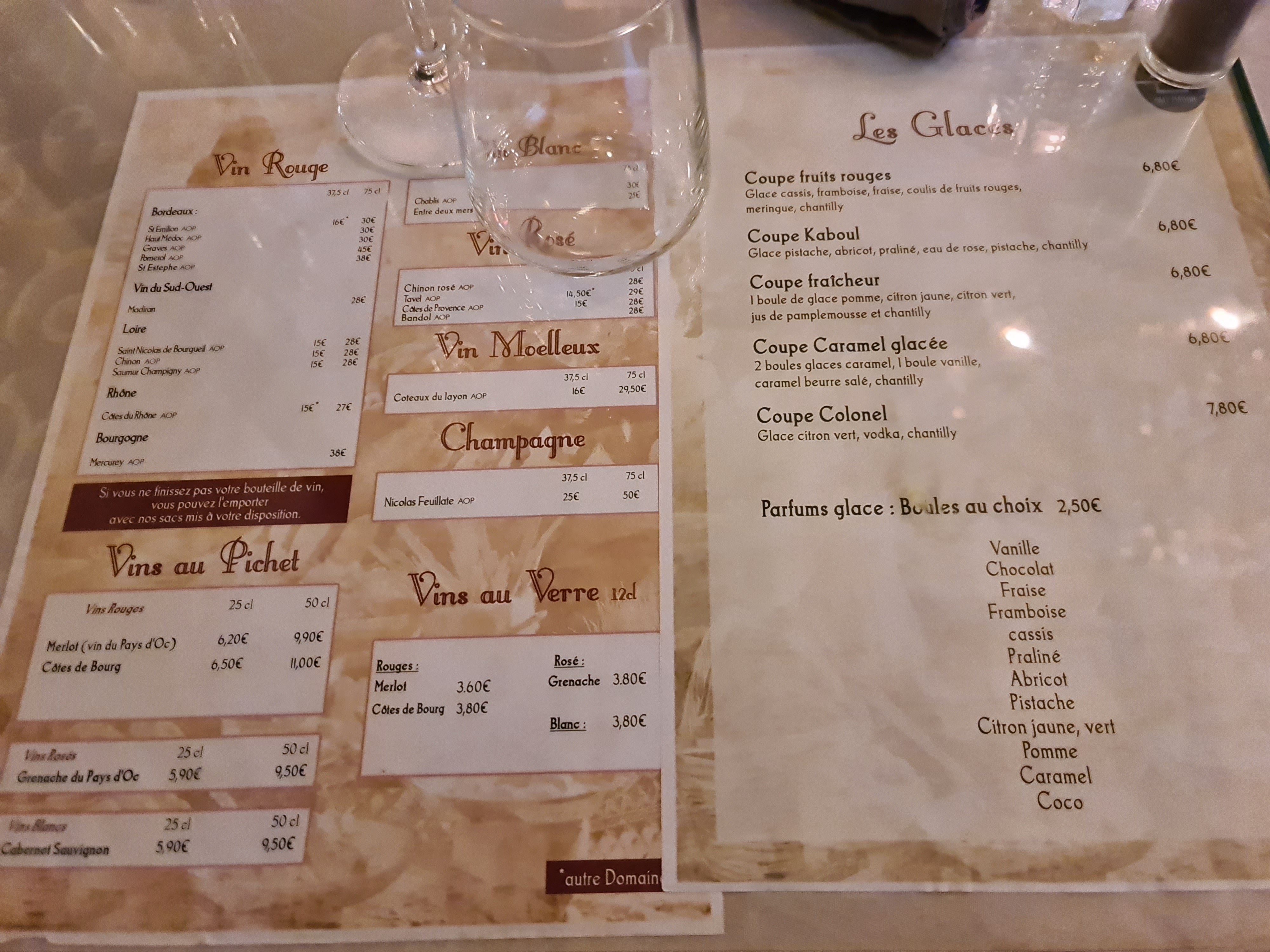 Les entrees et plats très bon, on mange très bien. Restaurant à faire. Personnel très gentil. Restaurant charmant. Seul point à redire: il ne faut pas y aller pour les desserts, rapport qualité prix pour les dessert pas top. Prix des repas correts.