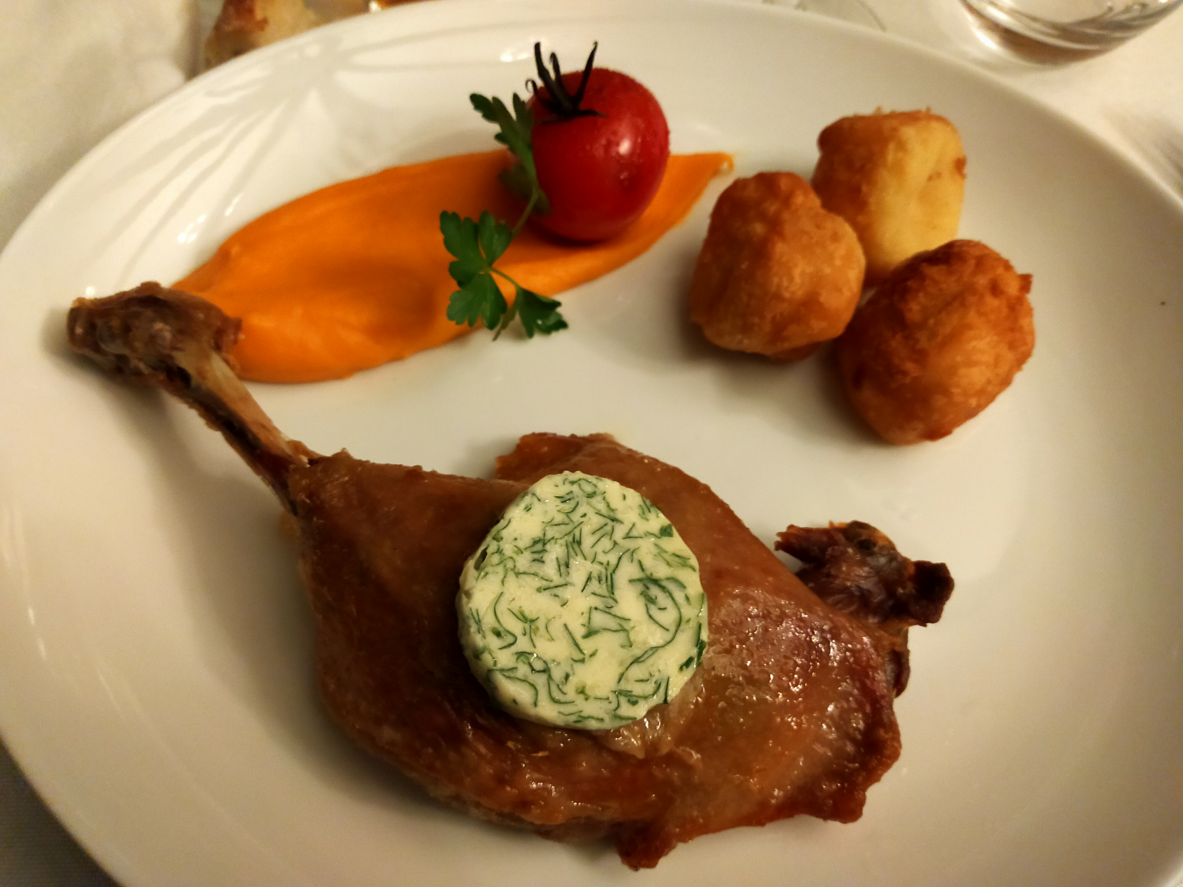 Le service gâche tous !Le serveur est trés hautain.L'accueil est froid envers les touristes et fait des réflexions déplacés.Hors qu' il est plus de 20h et qu' en pleine semaine le restaurant et complètement vide de chez vide.Même à coté ,le petit restaurant Eggée est plein,car ils sont plus accueillants .Je conseille pour bien manger d'aller plutôt Oh Terroir et à l'Orangerie.Là-bas l'accueil est toujours chaleureux et trés conviviale .Le service impeccable et les plats gastronomiques et super bons et frais.!!!