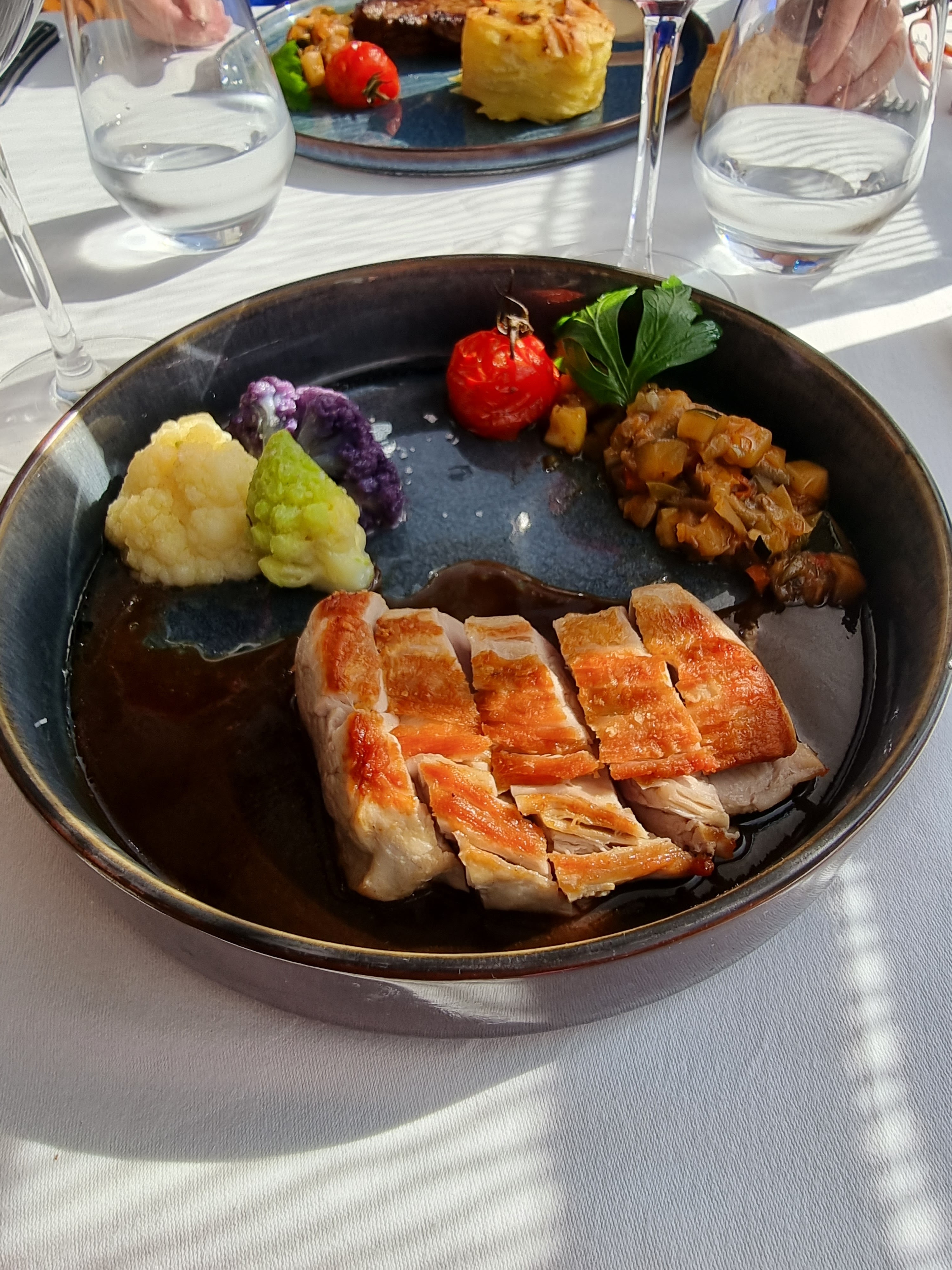 Le cadre depuis la véranda était superbe, comme toujours les plats étaient délicieux et riches en saveur et en couleur !! Le serveur était souriant, chaleureux et aimable tout était parfait