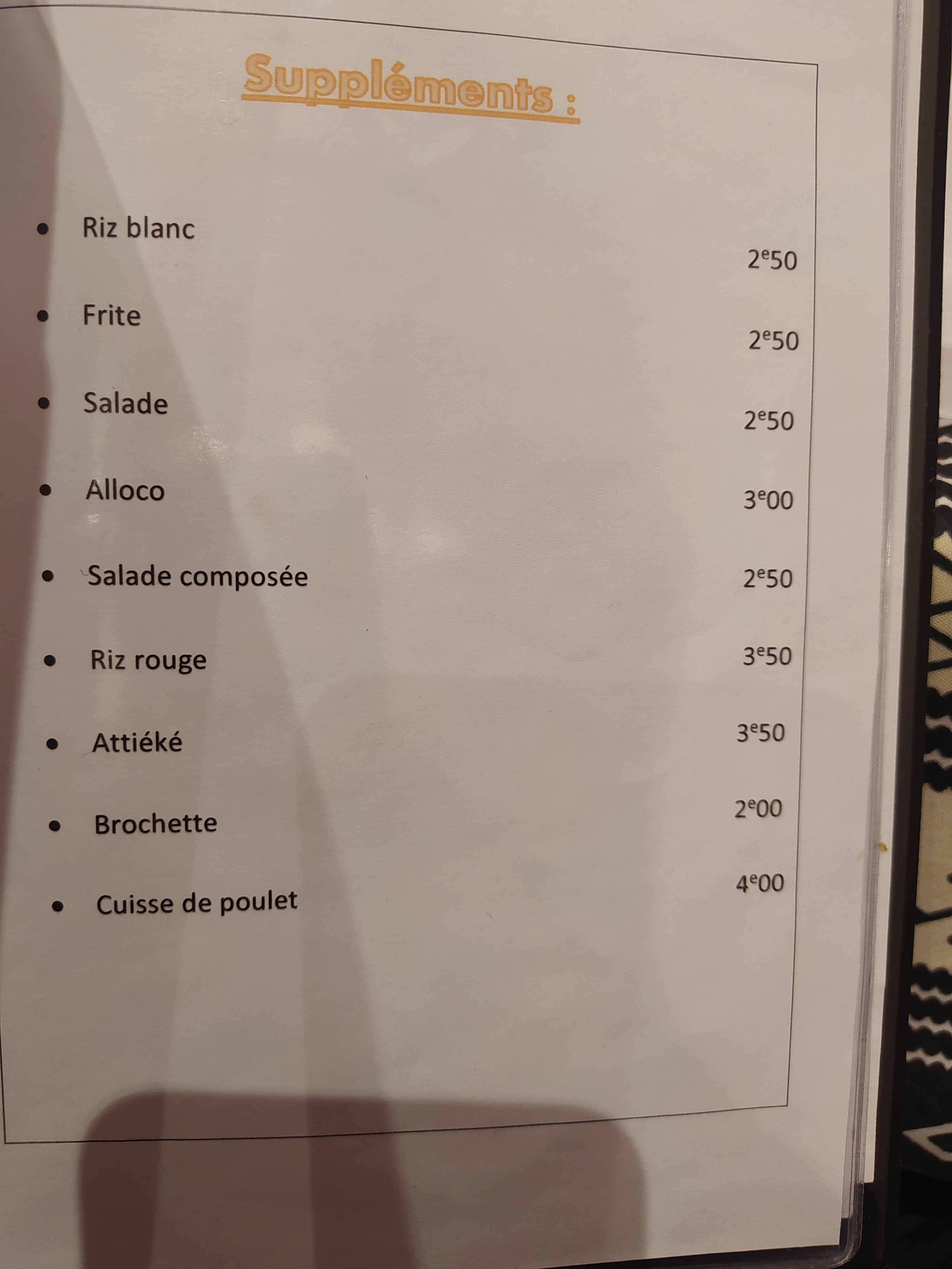 Bonjour, J’ai commandé ce midi sur Uber Eats, du thieb. je suis assez déçu .. le thieb avait pas l’air frais mais plutôt de la veille. Et j’avais du riz cramer le fond de la casserole dedans. Pareil pour les aloco 5€ la petite barquette