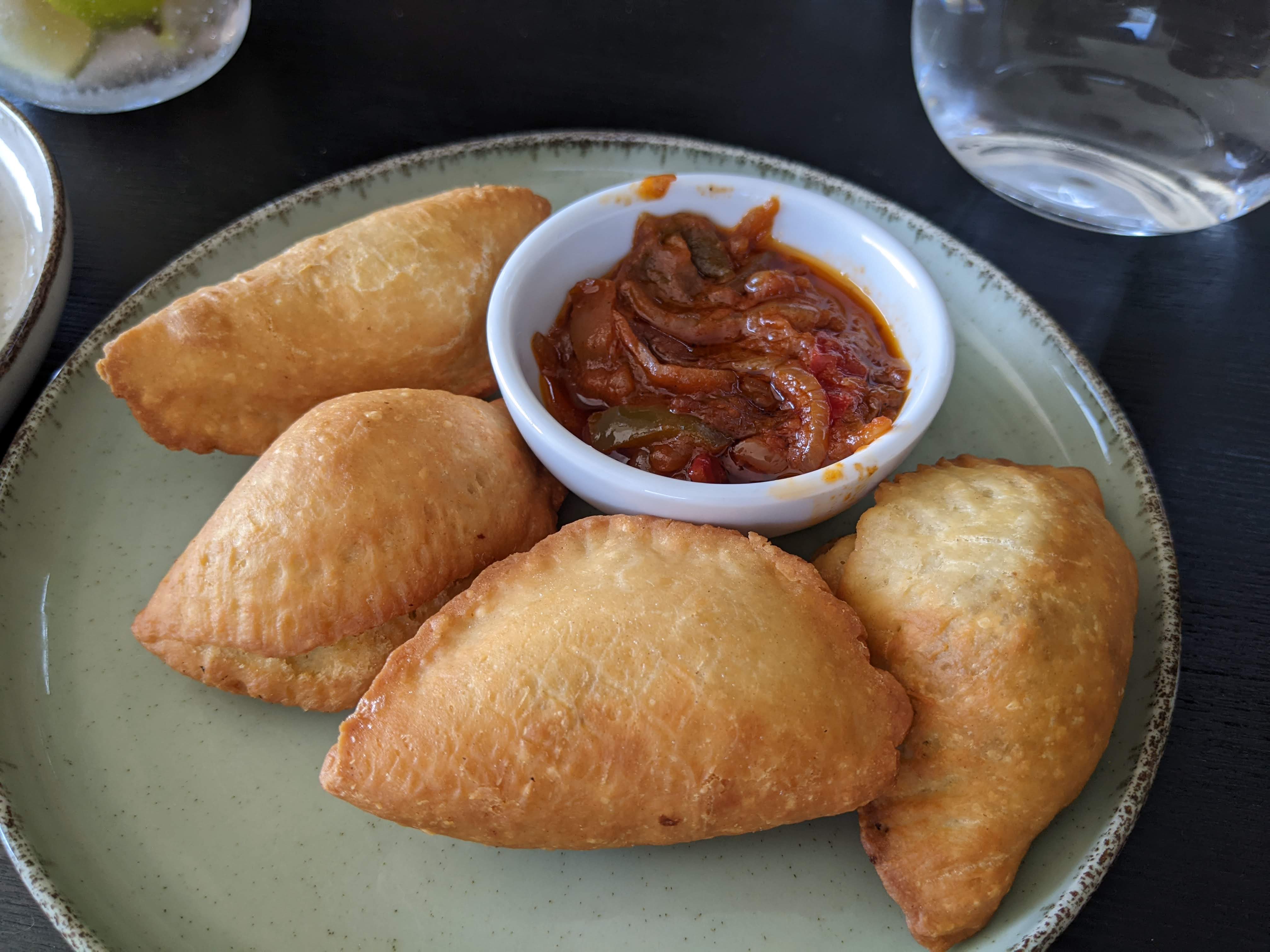 J’ai commander des samoussas au bœuf + foutou banane sauce graine, Dommage c’était un peu trop trop salé