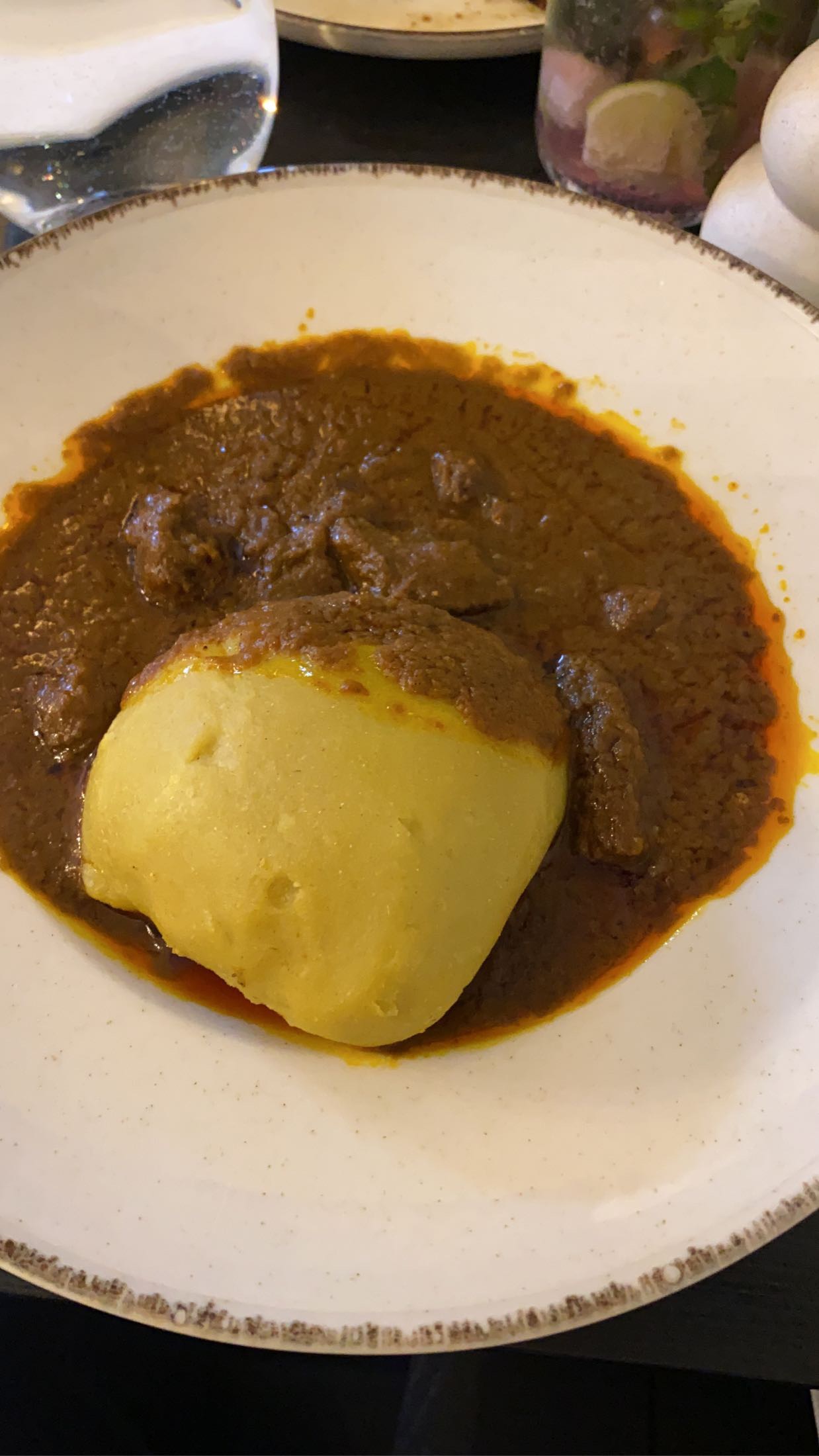 Le foutou sauce graine était délicieux ! Un petit morceau de boeuf en plus n'aurait pas été de trop. Une farandole de saveurs 😃.