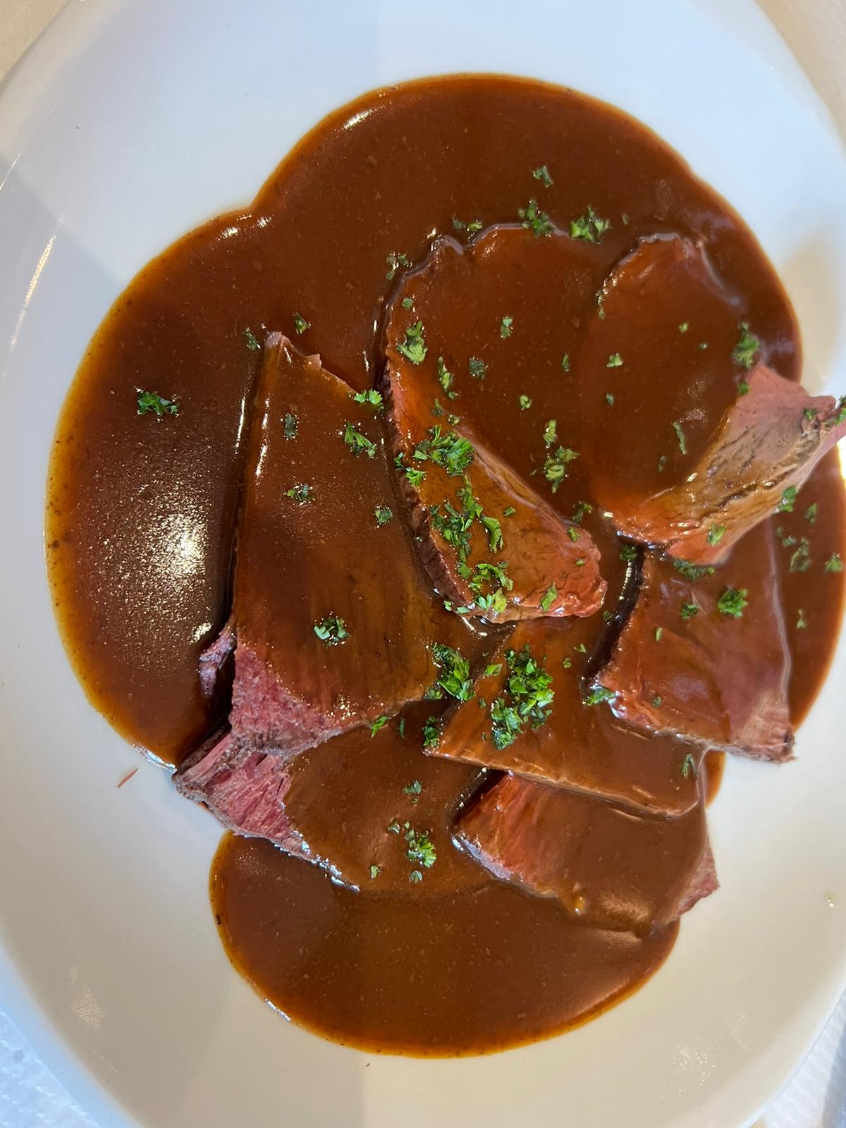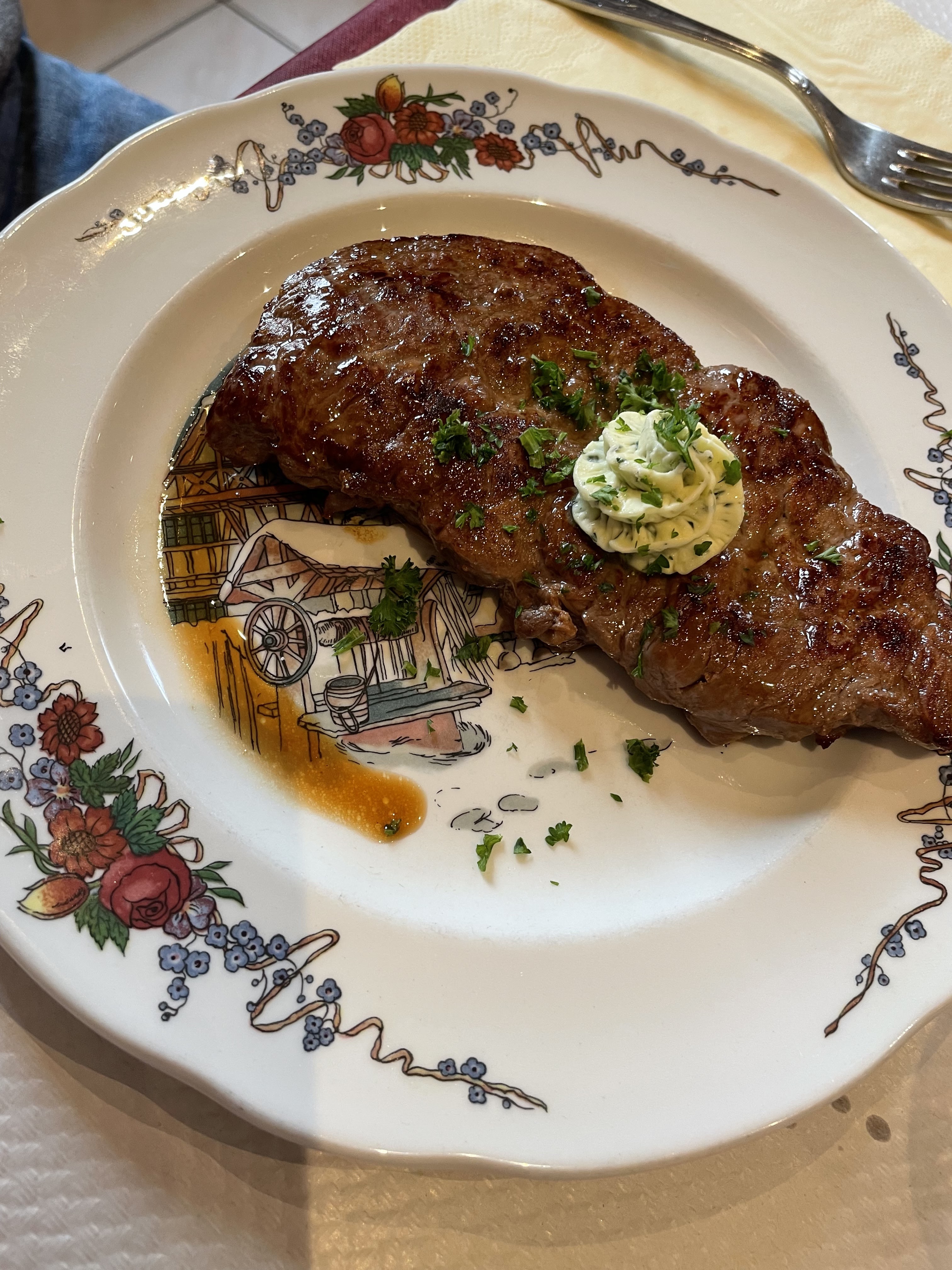 Une attente interminable....long...long..long.... dans un decor vieillot, 45 mn pour une petite entrecote et une mince portion de frites pour 18€ mmm (mais 2 feuilles de salades !...ca sert à quoi?) ... la relation client ? Loupé aussi, tres desagreable nous rendant mal à l aise, on avait l impression de deranger... une ambiance d une epoque d entre 2 guerres.... Si il s agit d une institution de drushenheim, il serait necessaire de la depoussierer. Je ne recommande pas