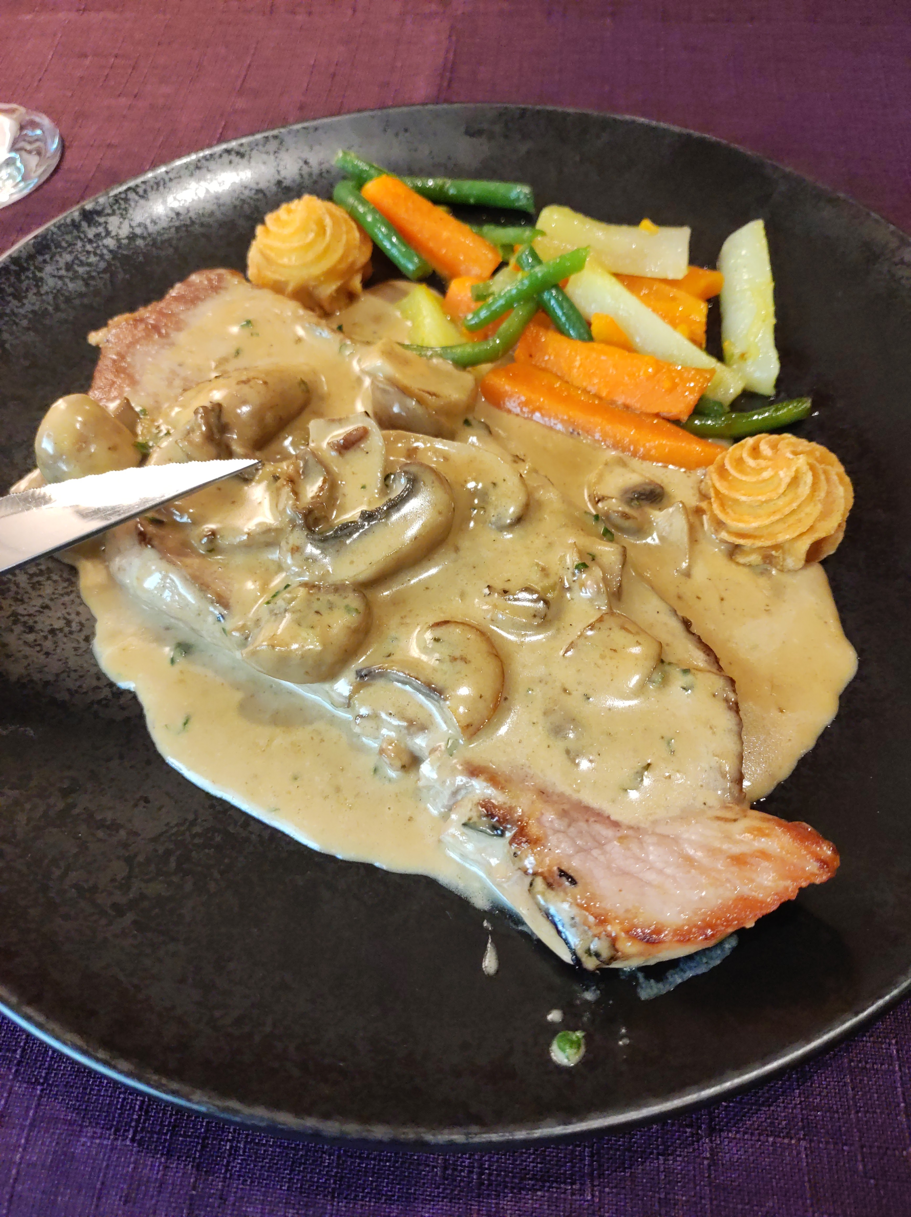 Menu pas bon escalope crème.pas crème tro liquide et aucun goût