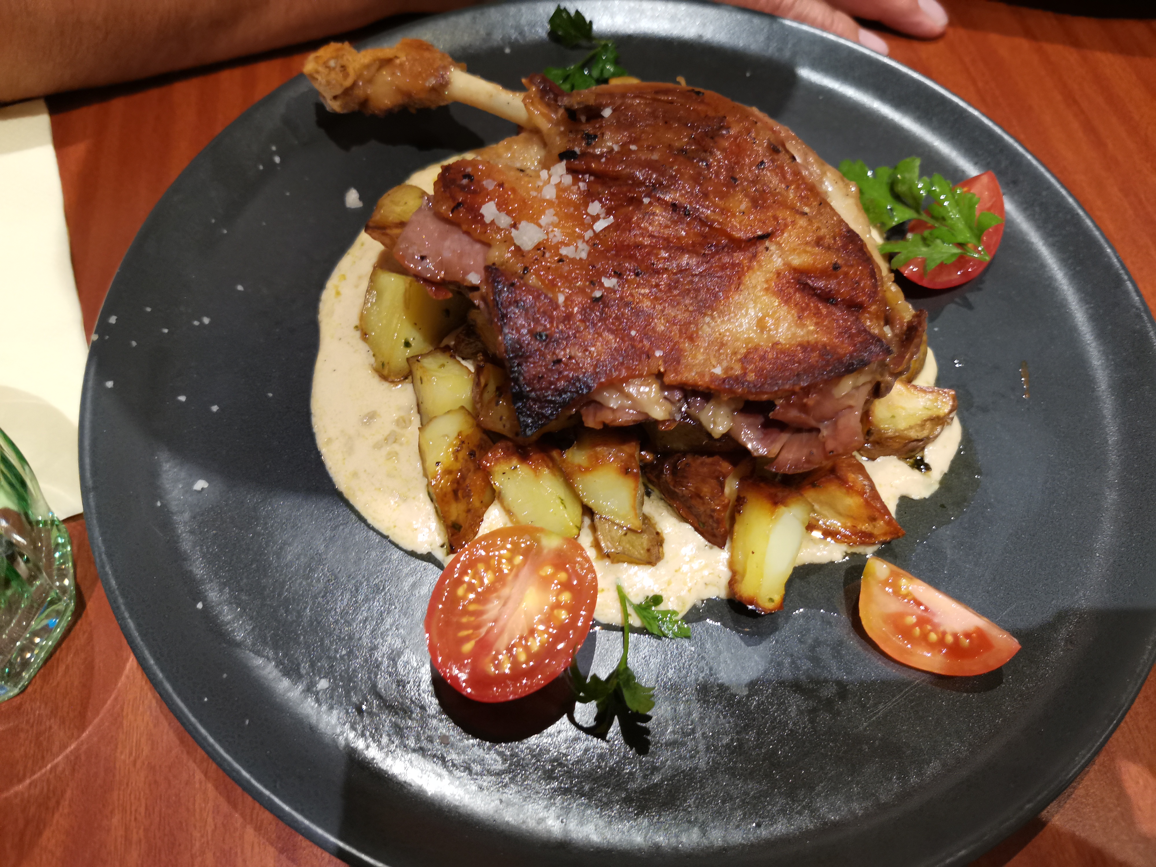 Nous avions l’habitude de nous arrêter ici 3 à 4 fois par an sur notre route mais déçues du changement. Le canard confit loin de se qu’on a l’habitude d’avoir tant en proportion (petite cuisse) qu’en goût. Quant à l’accompagnement il s’agissait d’une galette de pommes de terres assez grasse et de salade verte un peu cuite dans sa sauce avec quelques champignons en sauce, Pour le dessert nous avions opté pour un café gourmand décevant... la mousse au chocolat café annoncée s’est transformée en verrine de fruits rouges (décongelés ?) On a en eu des meilleurs pour pas plus cher. Je vais chercher ailleurs pour notre prochain passage le rapport qualité / prix n’étant pas à hauteur de mon attente.